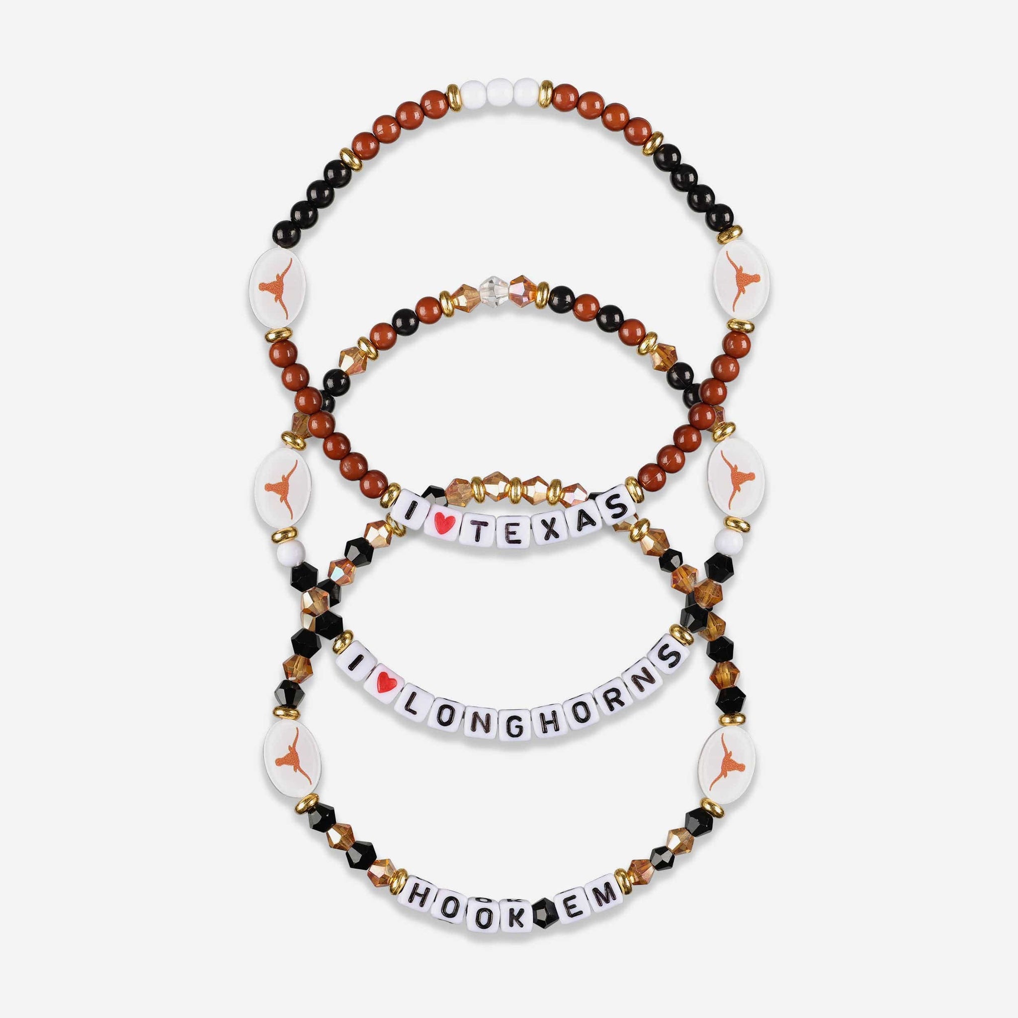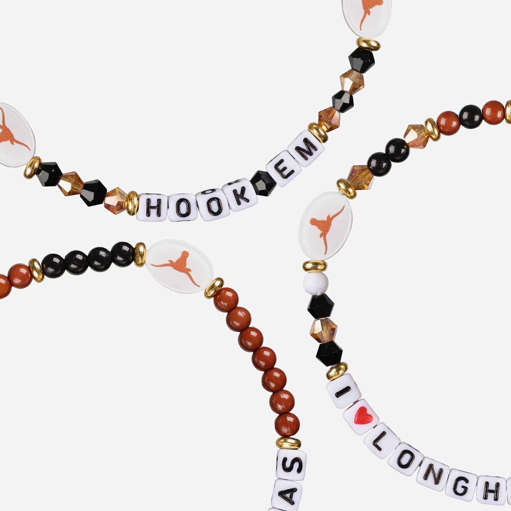 Accessorize and maximize your fandom while impressing your fellow fans with this Texas Longhorns 3 Pack Friendship Bracelet. These matching friendship bracelets have an all-over team-colored design and team logo displays, which makes them the perfect way to show your support for the Texas Longhorns and get in on the latest accessory craze.