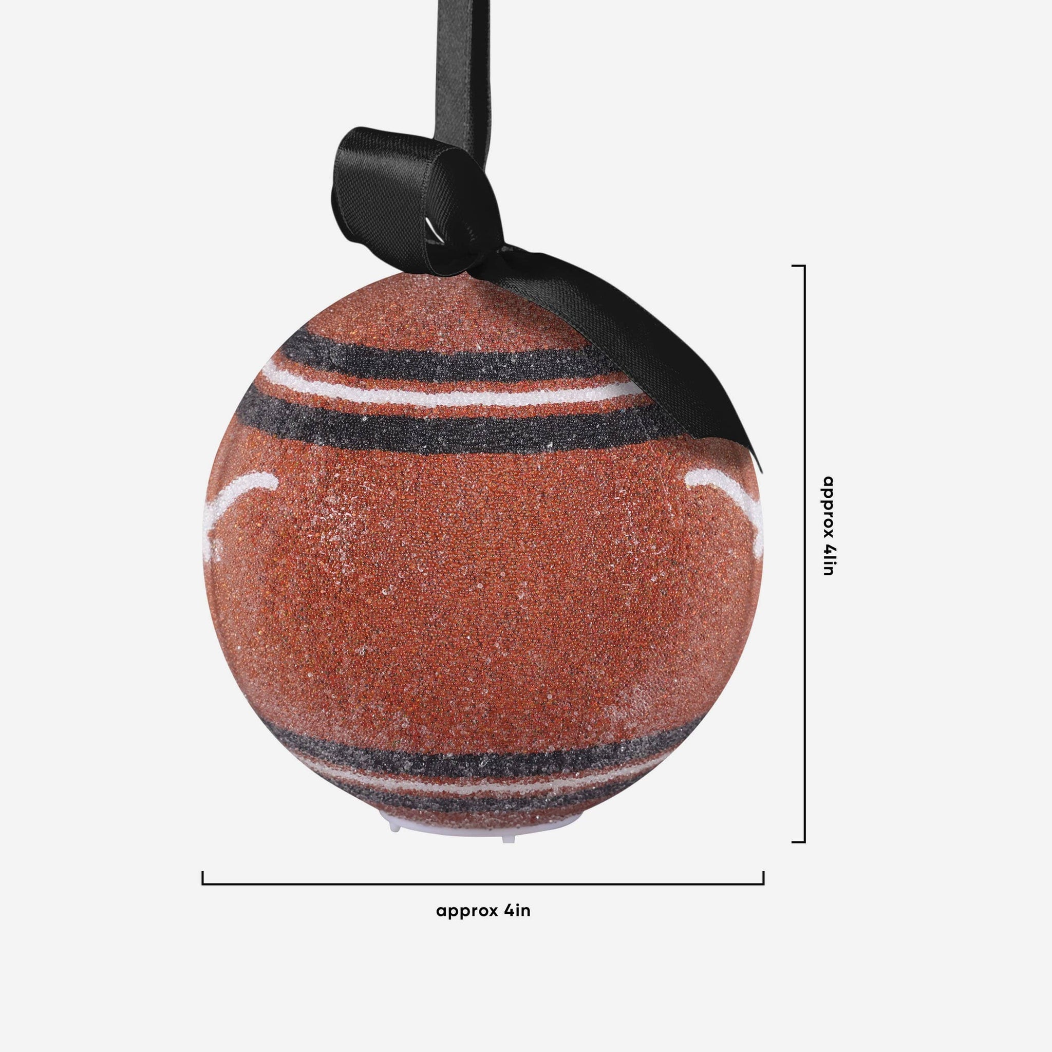 • Team-colored stripe accents on top and bottom of ornament to make your tree look extra awesome