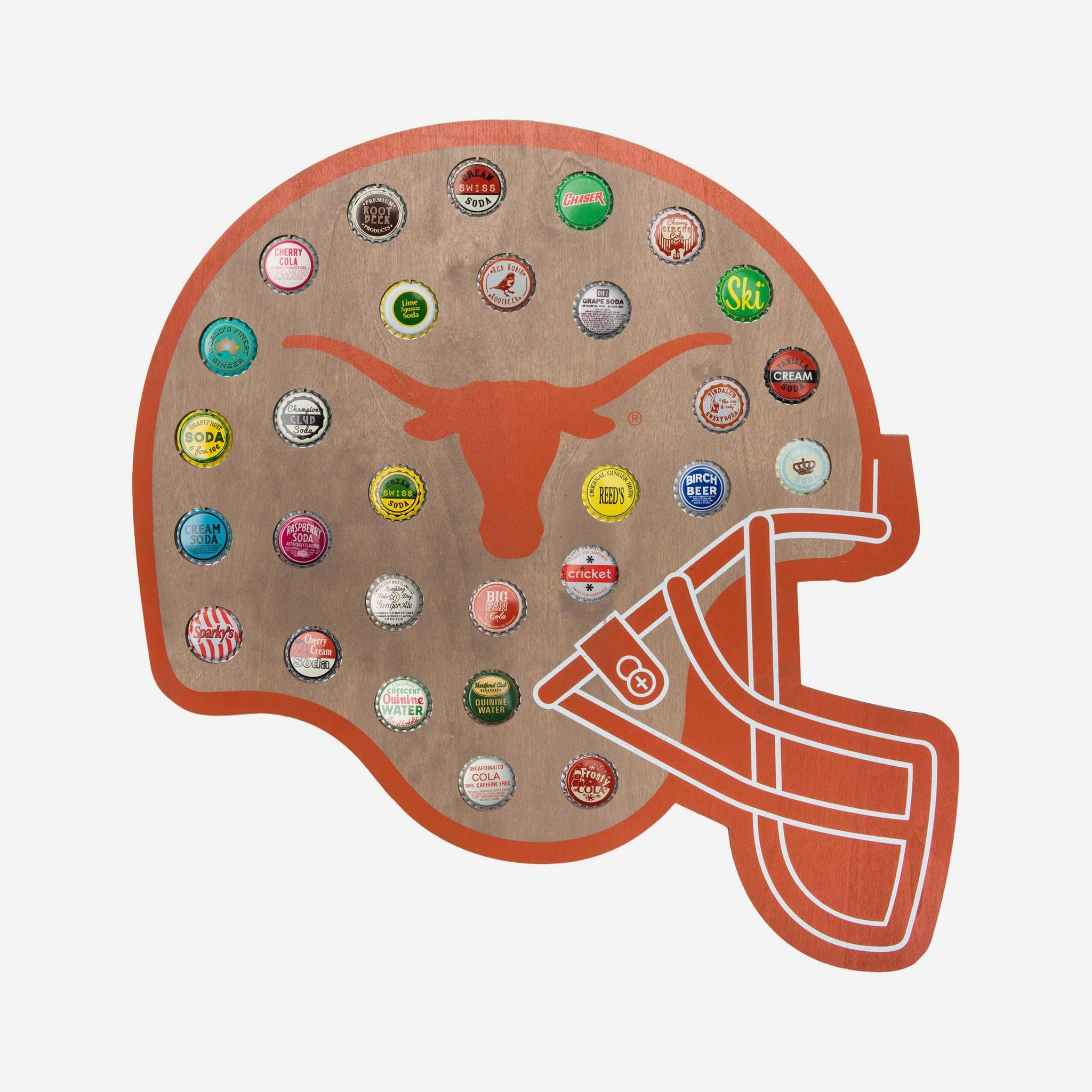 Cap off your fancave decorating and keep track of every cold one you crack while watching the game with this Texas Longhorns Push Bottle Cap Wall Sign.