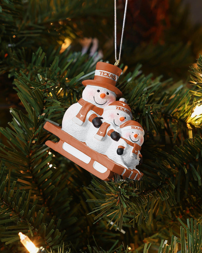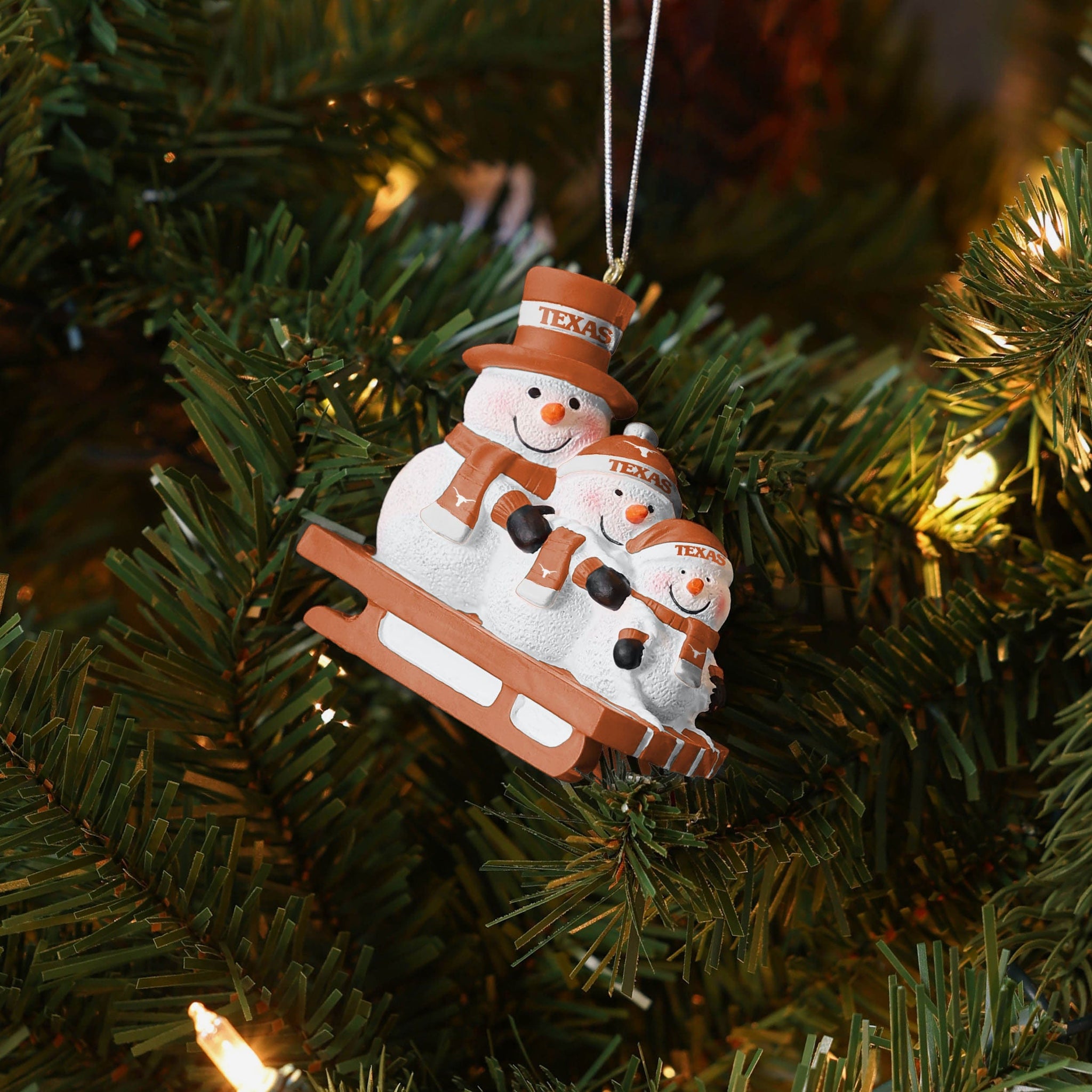 Meet three snowman friends that won't melt when you bring them inside! Introducing the Texas Longhorns Sledding Snowmen Ornament!