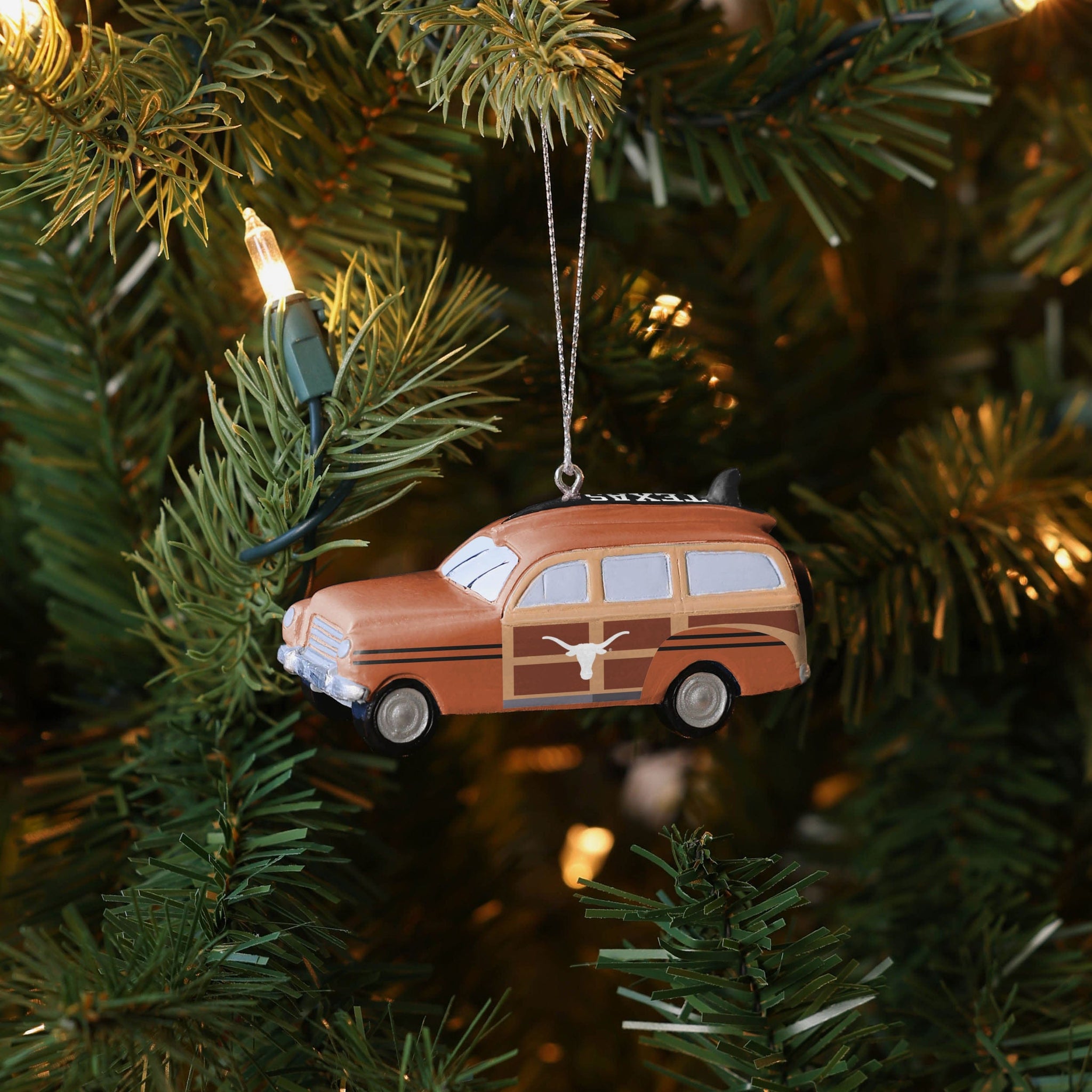 WARNING! Laying eyes on this Texas Longhorns Station Wagon Ornament on your tree may result in an uncontrollable desire to embark on a road trip down the coast.