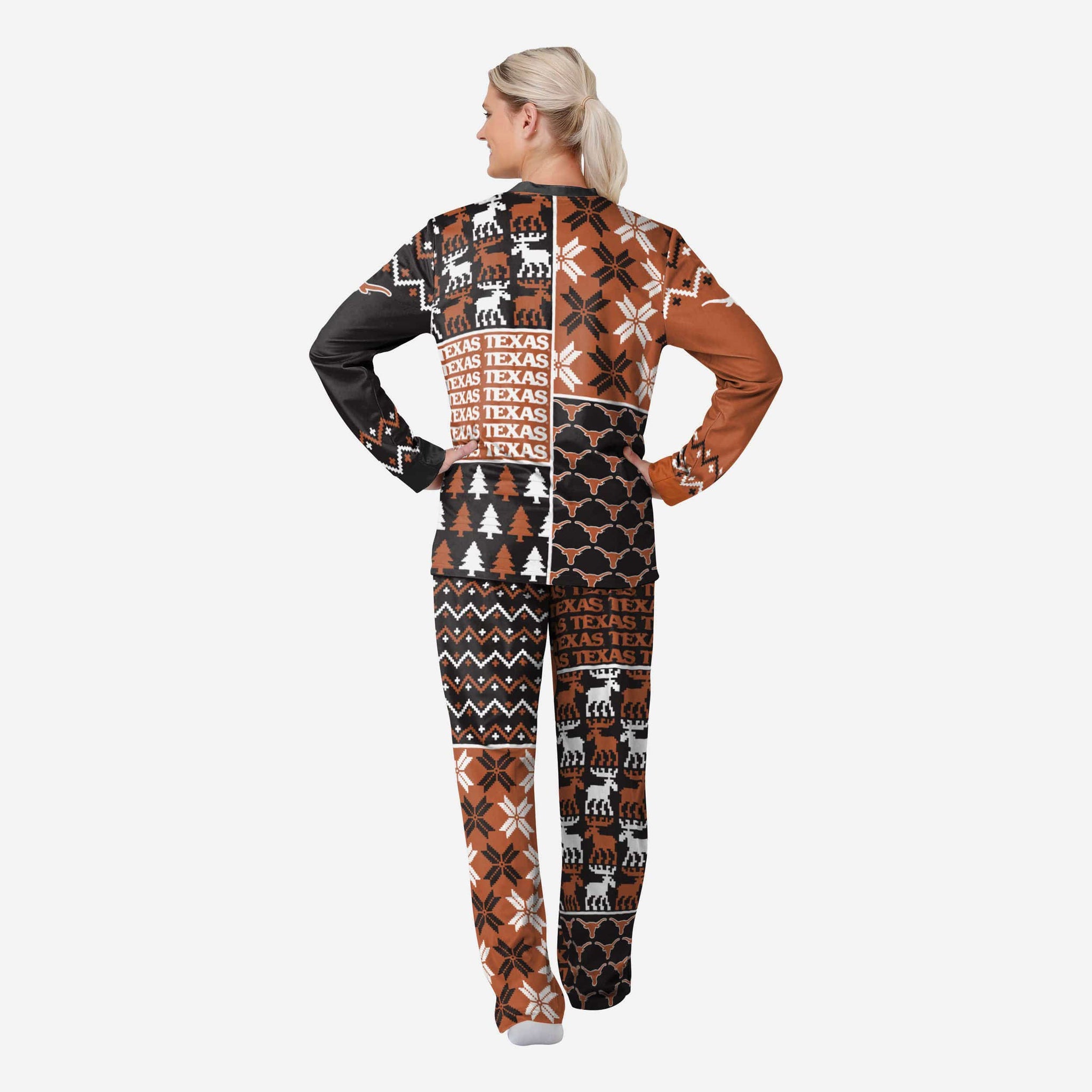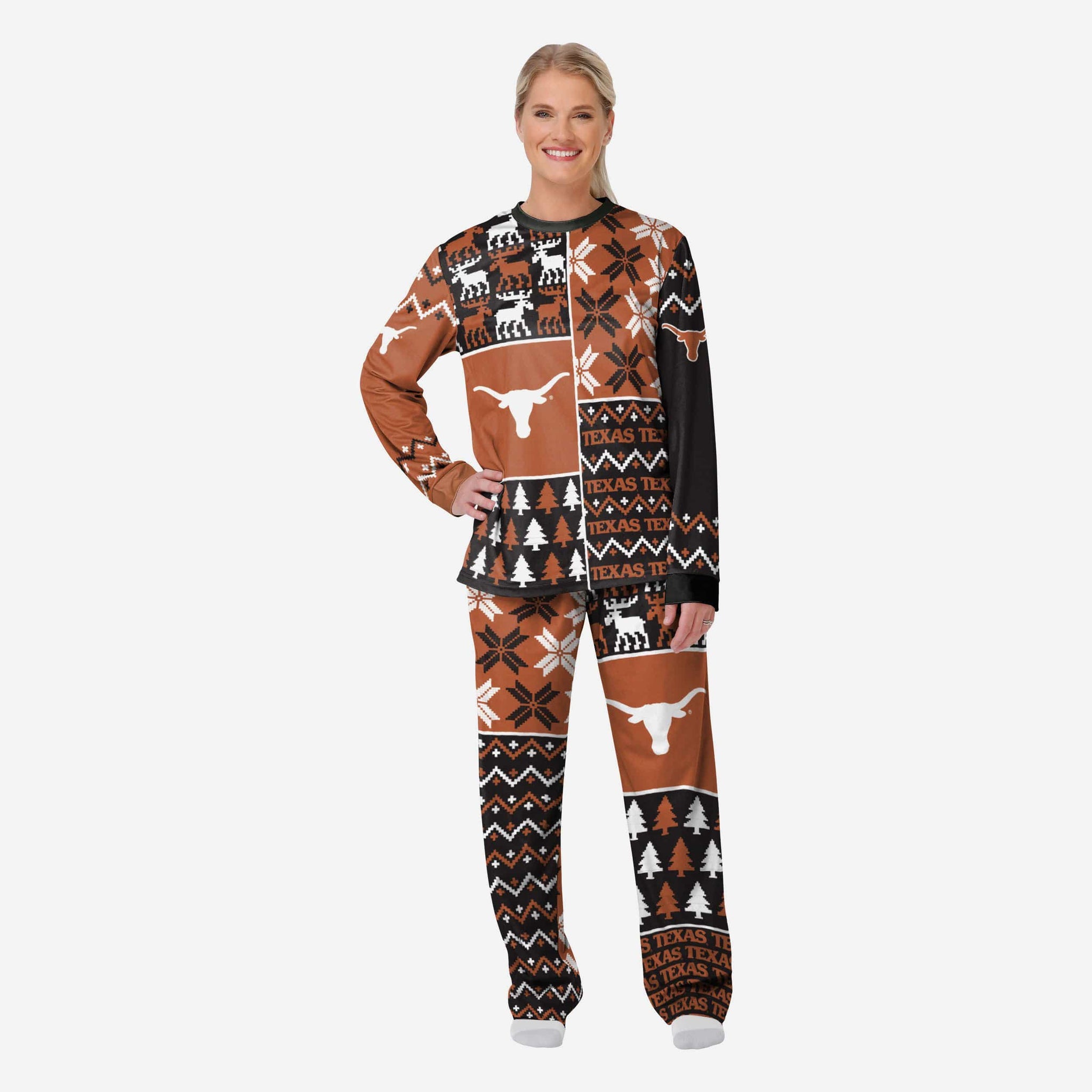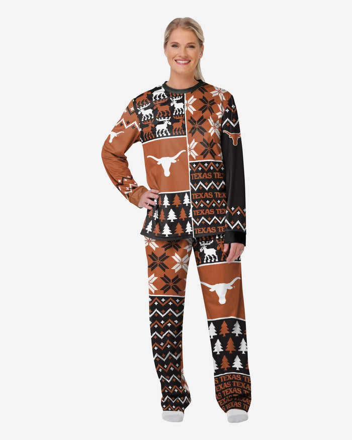 Get some matching family pajamas and dress to impress this holiday season! You won't want to miss these women's team pajamas! These women's PJ's are comfortable and show off your team spirit in the form of some sweet women's jammies. Introducing the Texas Longhorns Women's Busy Block Family Holiday Pajamas! Don't forget to take your holiday photo with the whole family wearing matching Christmas pajamas!