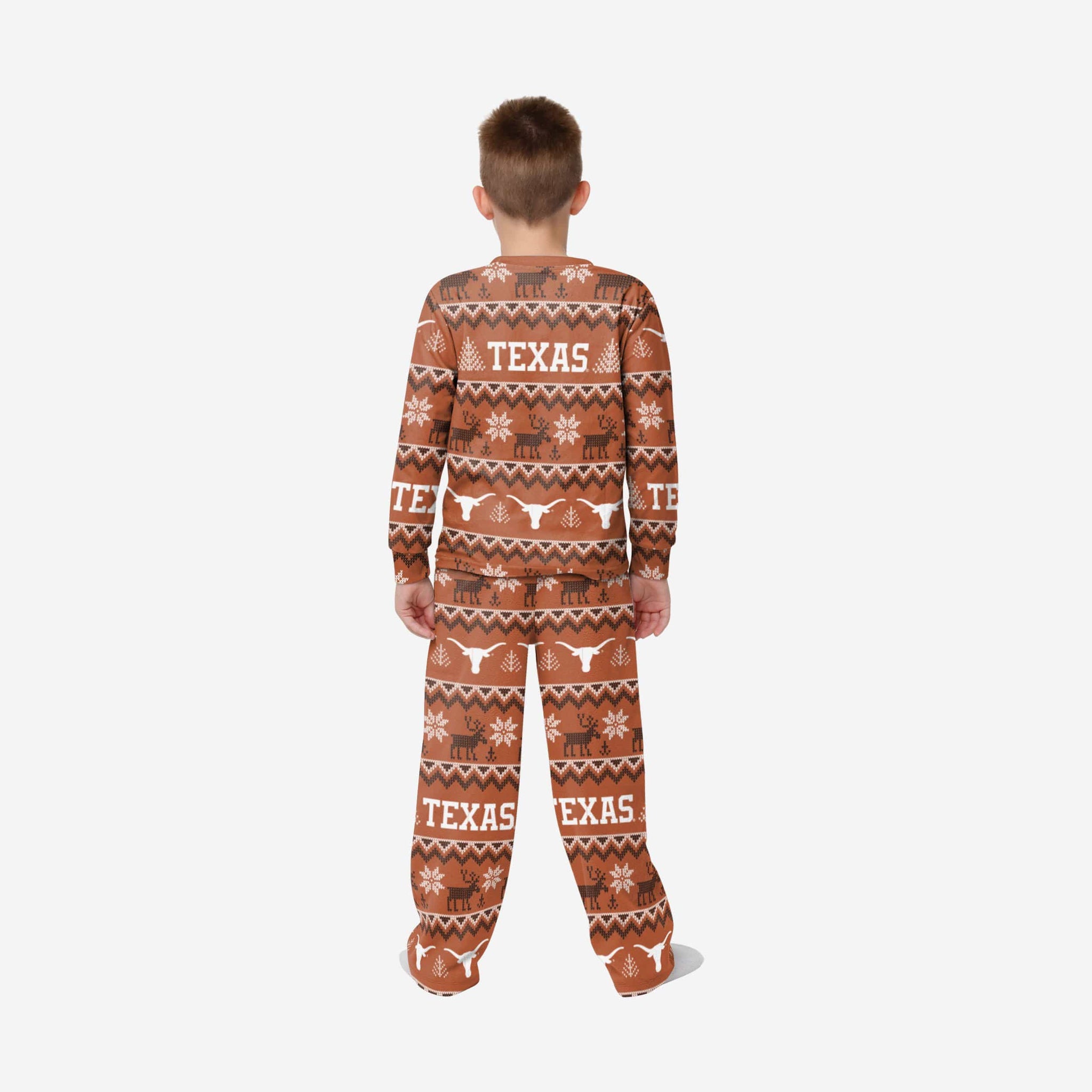 Get some matching family pajamas and dress to impress this holiday season! You won't want to miss these kids' team pajamas! These youth PJ's are comfortable and show off your team spirit in the form of some sweet youth jammies. Introducing the Texas Longhorns Youth Ugly Pattern Family Holiday Pajamas! Don't forget to take your holiday photo with the whole family wearing matching Christmas pajamas!