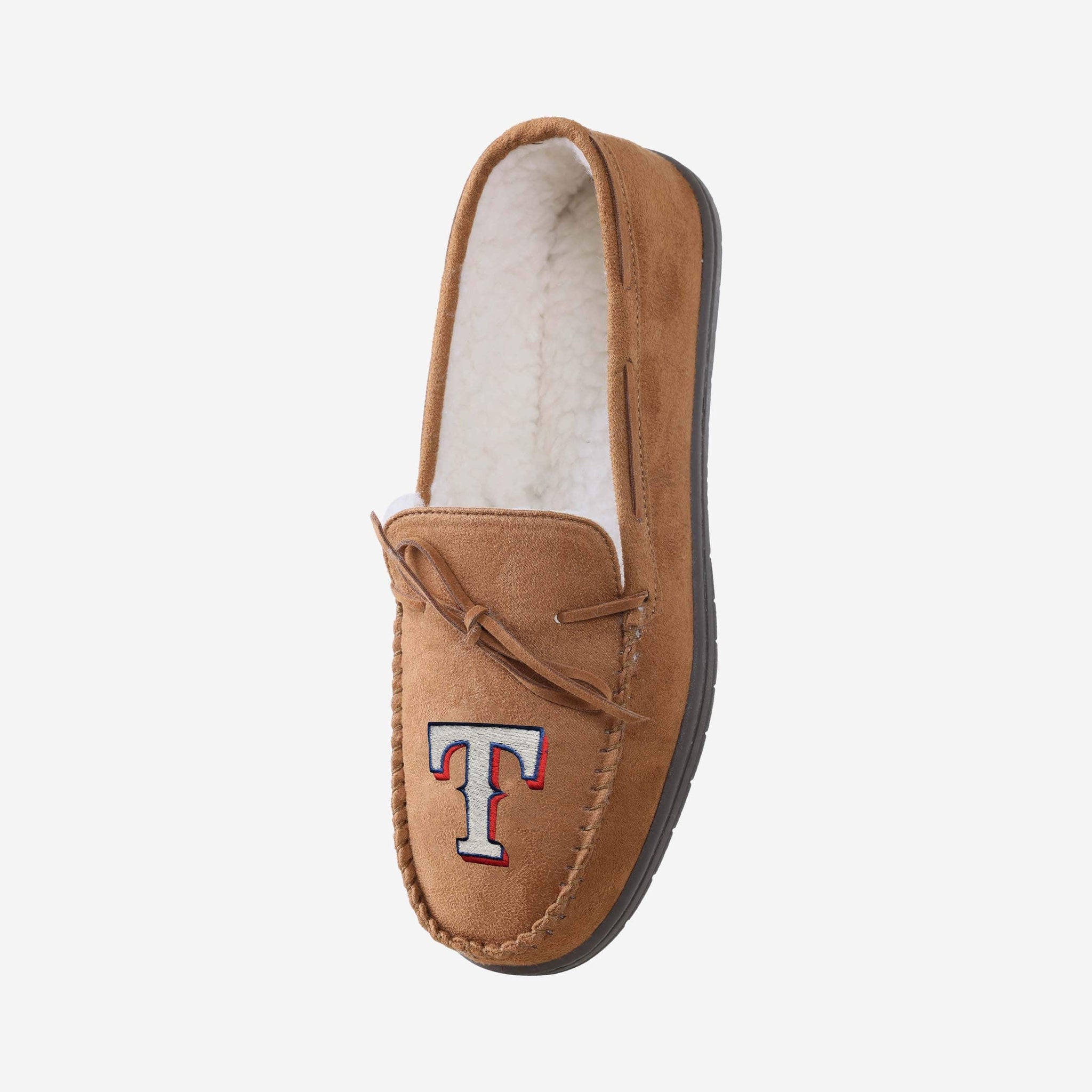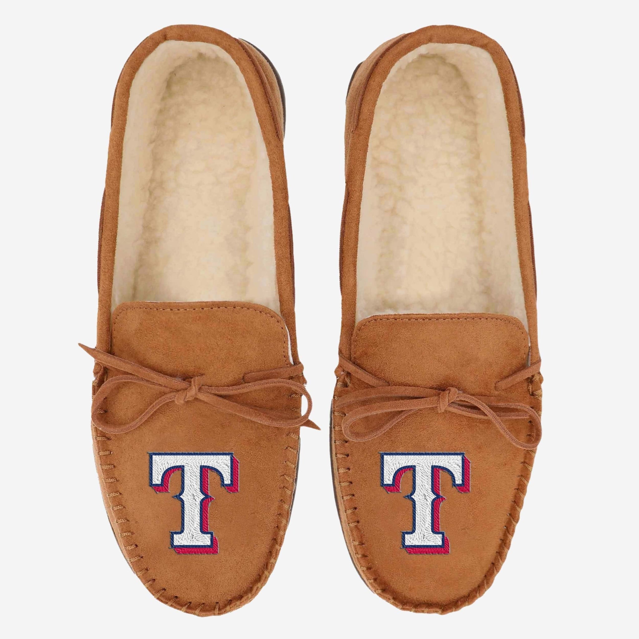 Moccasins? Cool. Comfy slippers? Also cool. Texas Rangers Moccasin Slippers? Mind = blown. The future is now, friend.