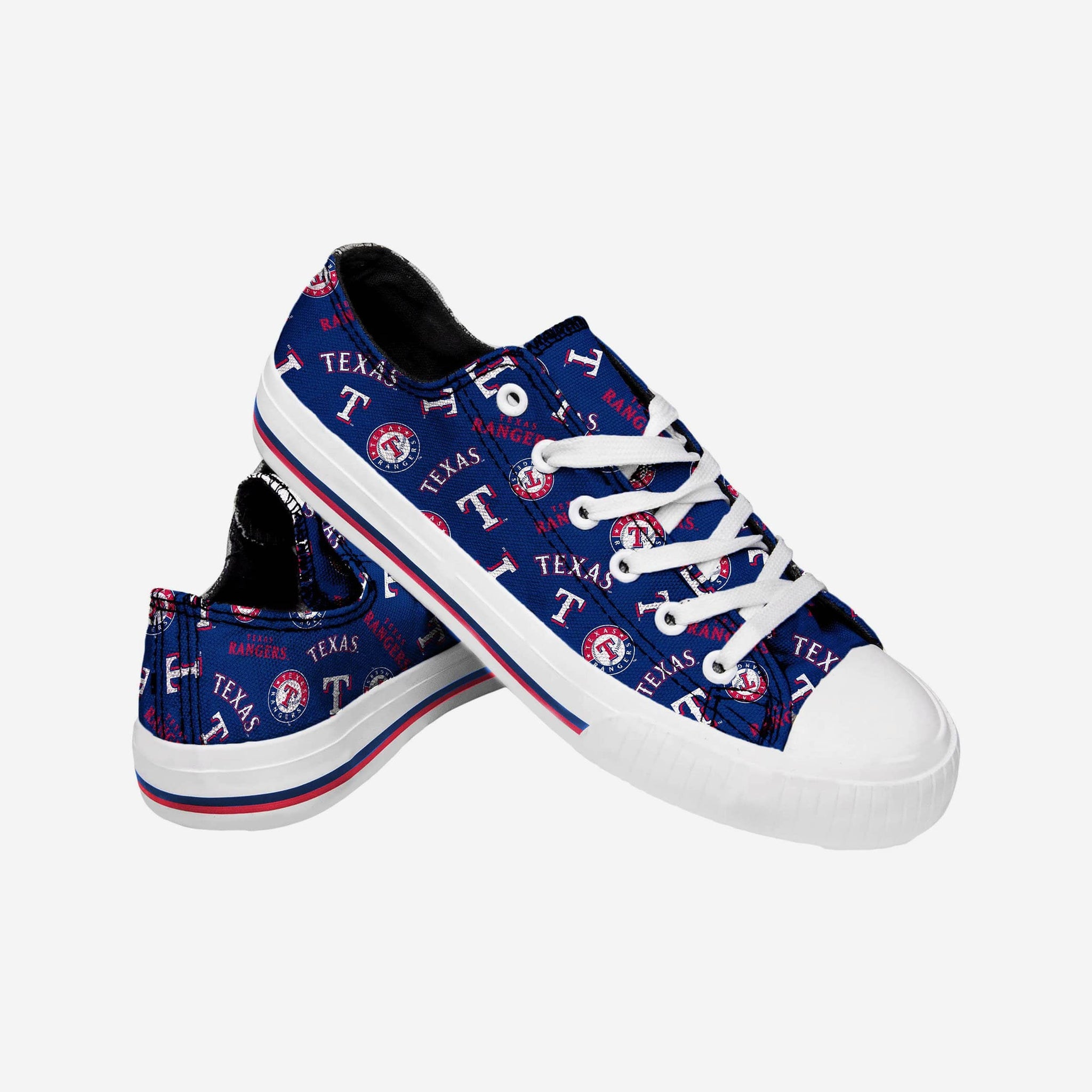The only thing better than kicking your feet up and relaxing is kicking your feet up and relaxing while your feet are wearing these Texas Rangers Women's Low Top Repeat Print Canvas Shoes. That way, you can relax AND let everyone know who the realest fan in the room is.