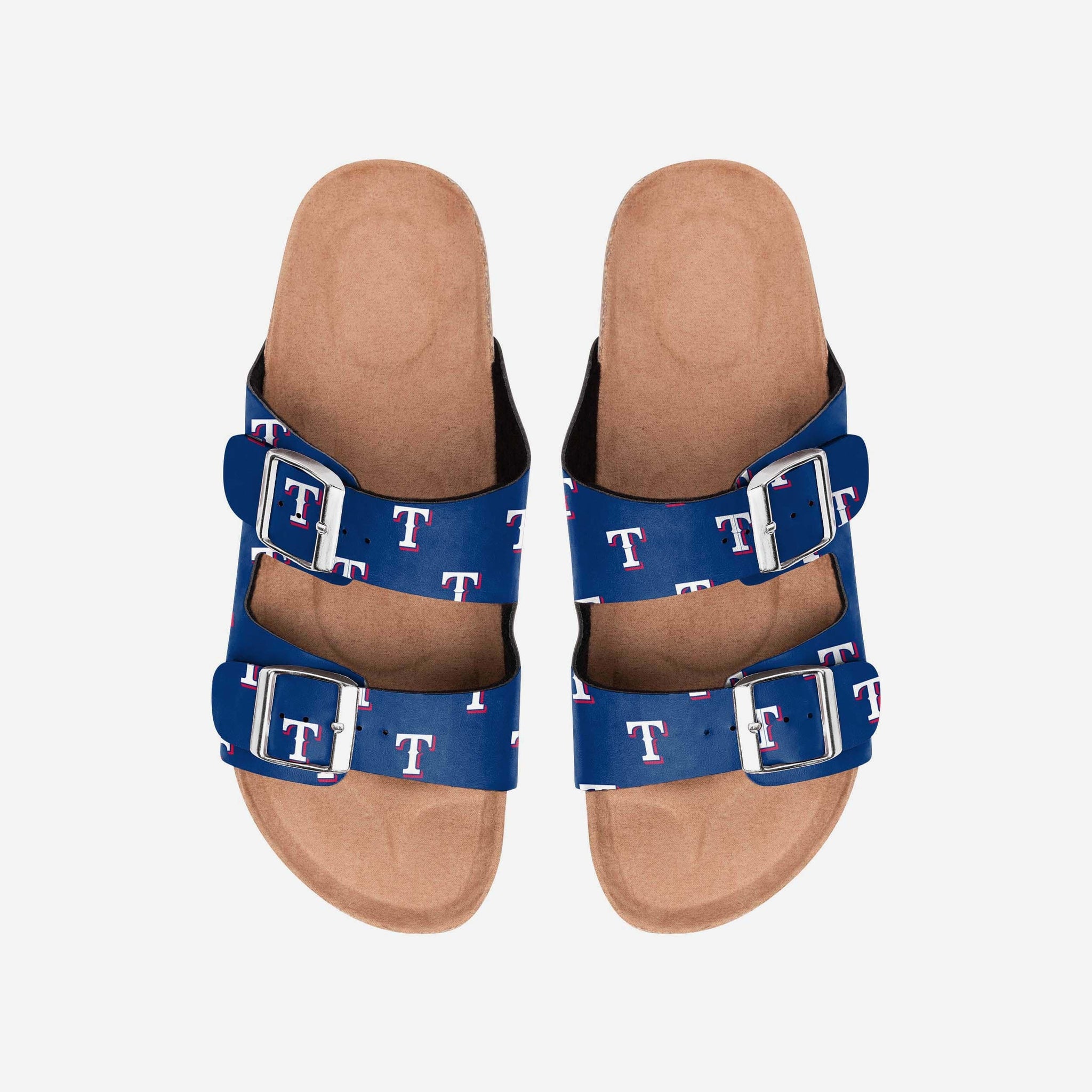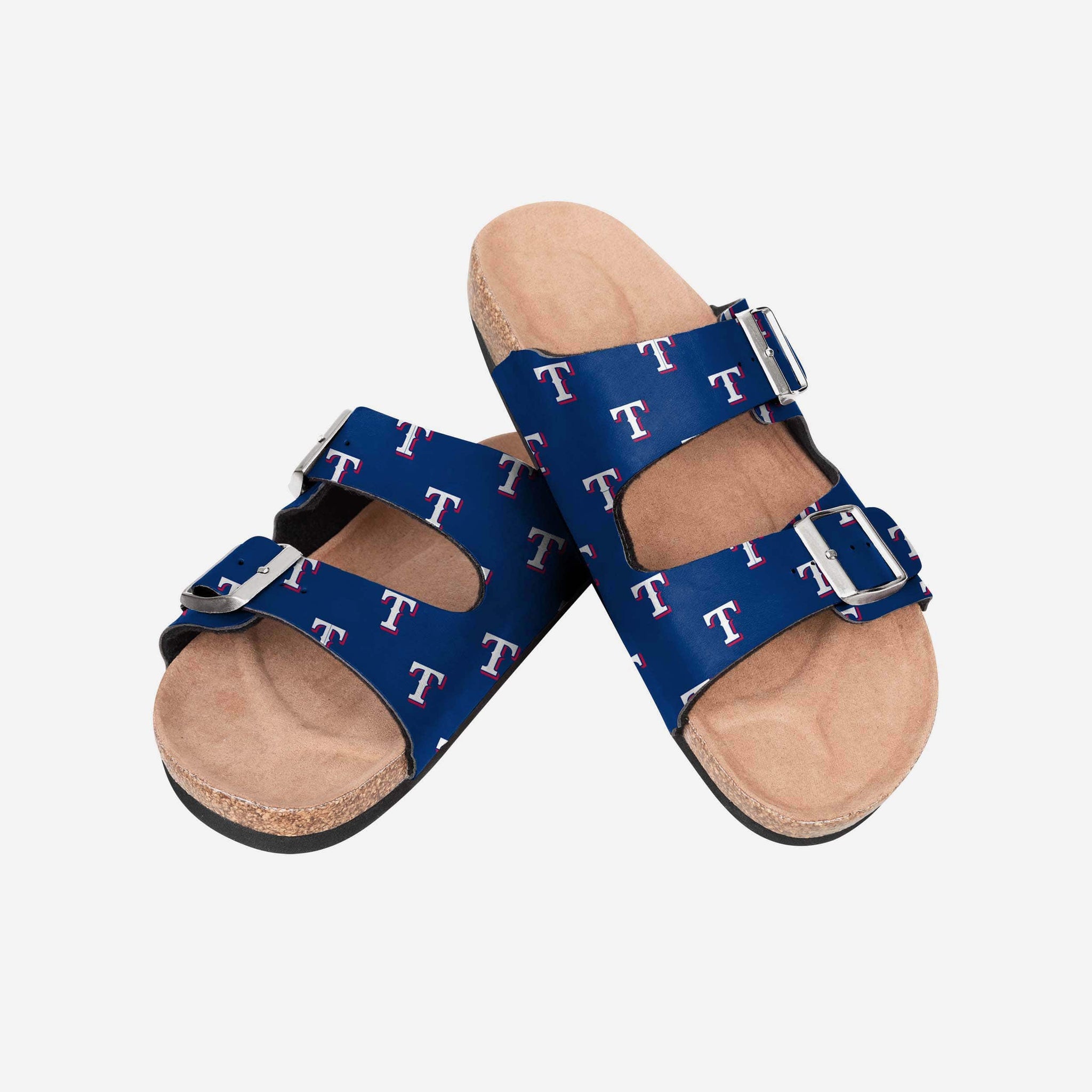 Double down on your fan fashion with these Texas Rangers Women's Team Logo Double Buckle Sandals. Get your fan on AND get your tan on in the backyard, at the beach, at the pool, or wherever your fan feet take you.