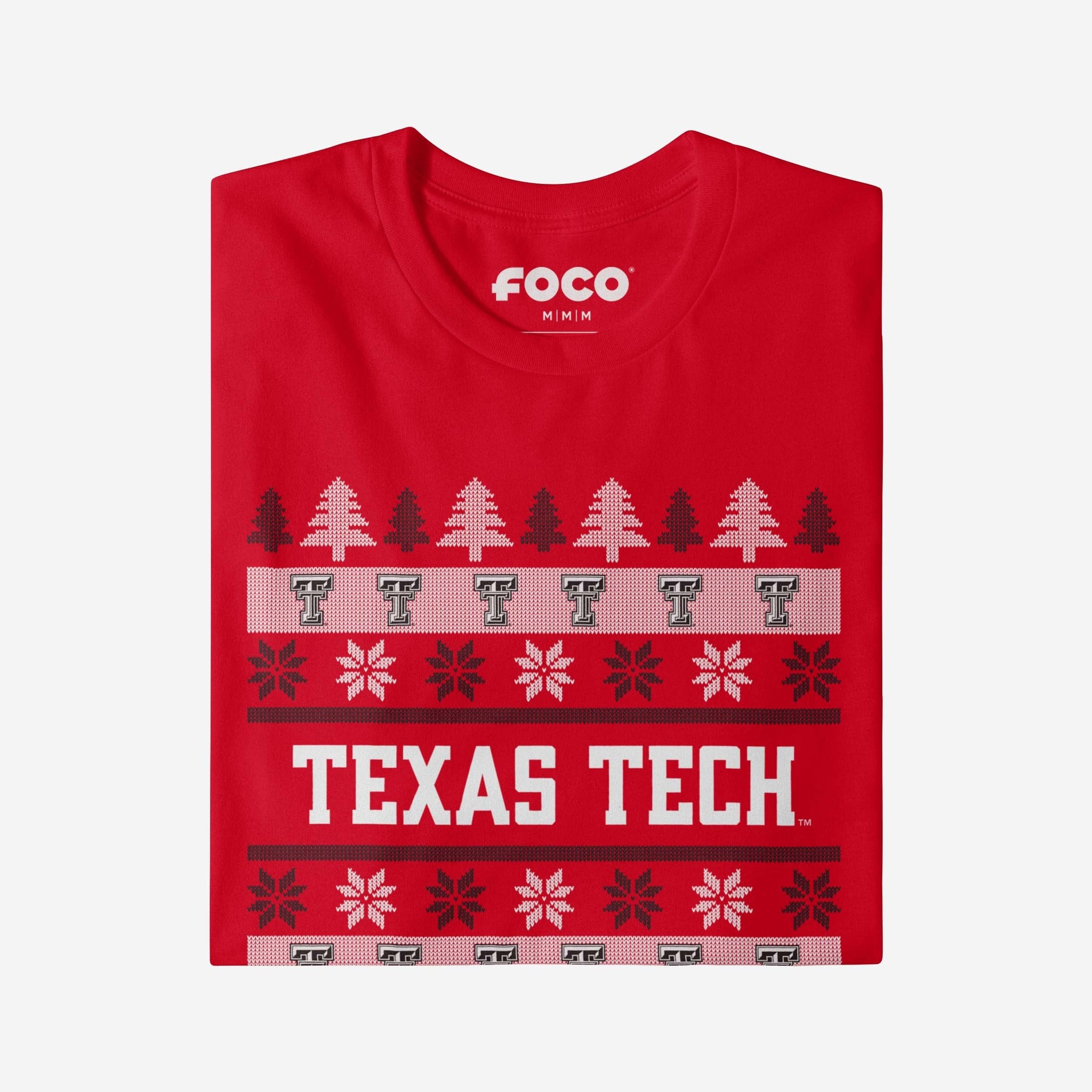 - Festive, team-colored design: This traditional t-shirt shows off the official Texas Tech Red Raiders colors in an all-over team-colored design with winter tree and snowflake accents, so you can show your team spirit with pride.