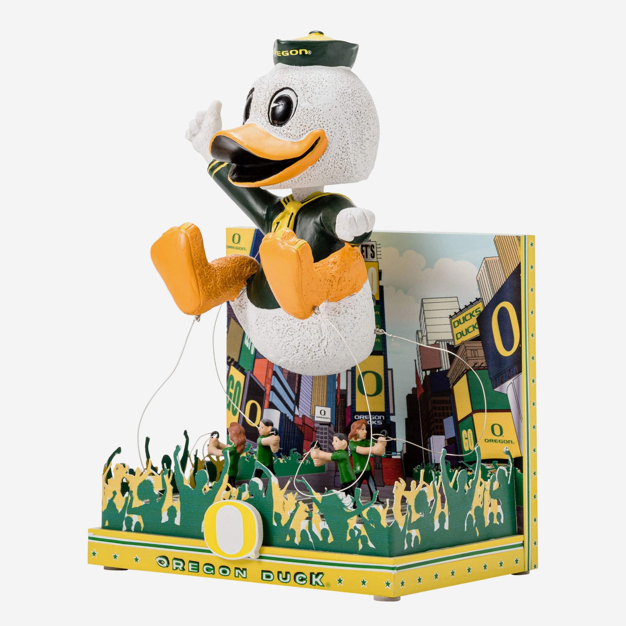 Gobble gobble? Bobble bobble. No need to plan a trip - The parade route is making a stop in your fancave. Feast on some fandom and be the grand marshal of your celebration with this The Duck Oregon Ducks Parade Float Mascot Bobblehead!