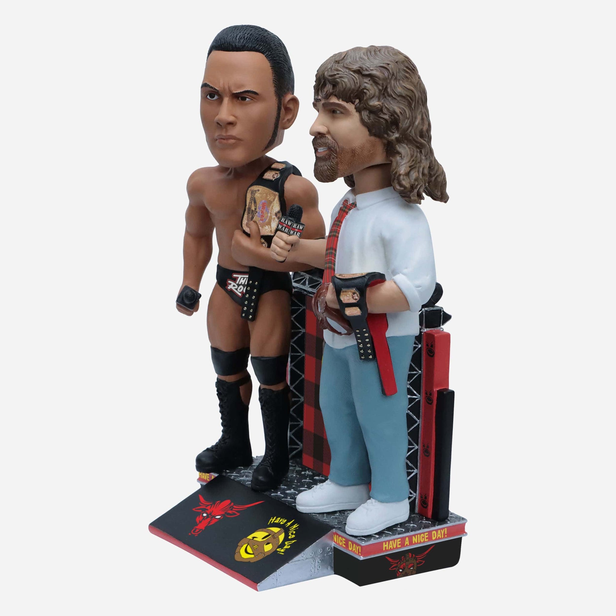 Opposites attract, and this unlikely duo is proof. The Rock and Mankind are joining forces, and you can re-live this unforgettable tandem by bringing The Rock 'n' Sock Connection WWE Tag Team Bobblehead to your collection. Mr. Socko would approve.
