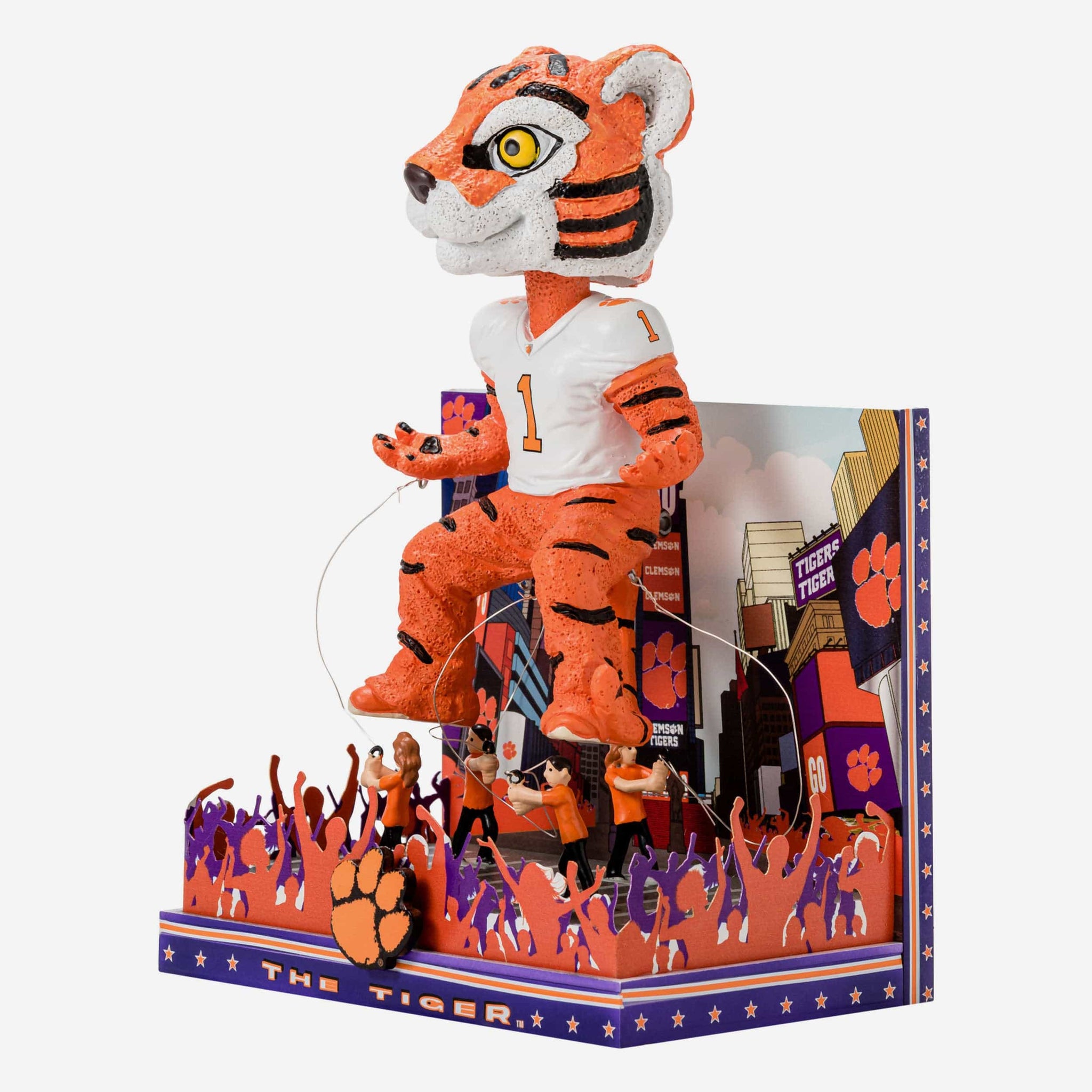 Gobble gobble? Bobble bobble. No need to plan a trip - The parade route is making a stop in your fancave. Feast on some fandom and be the grand marshal of your celebration with this The Tiger Clemson Tigers Parade Float Mascot Bobblehead!