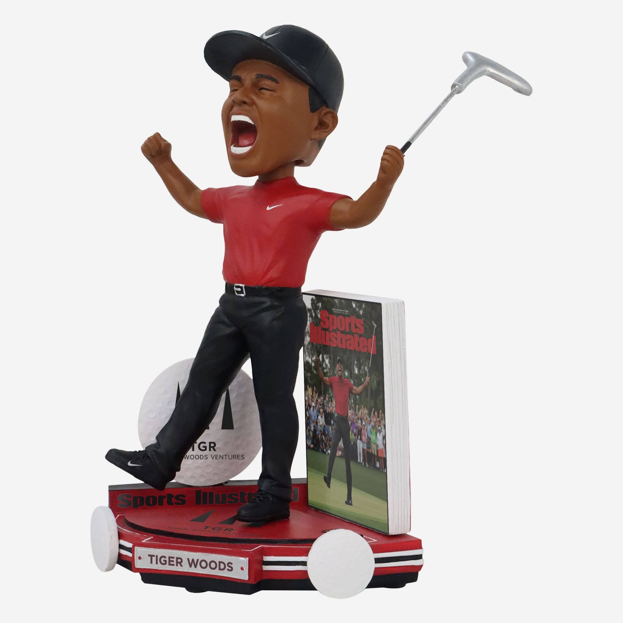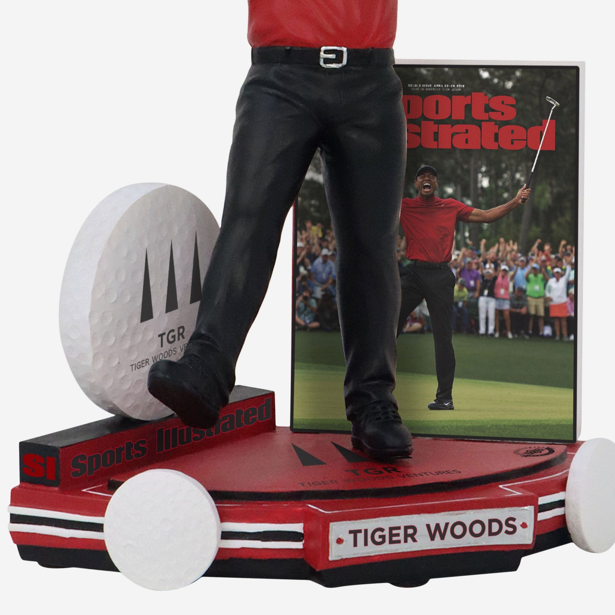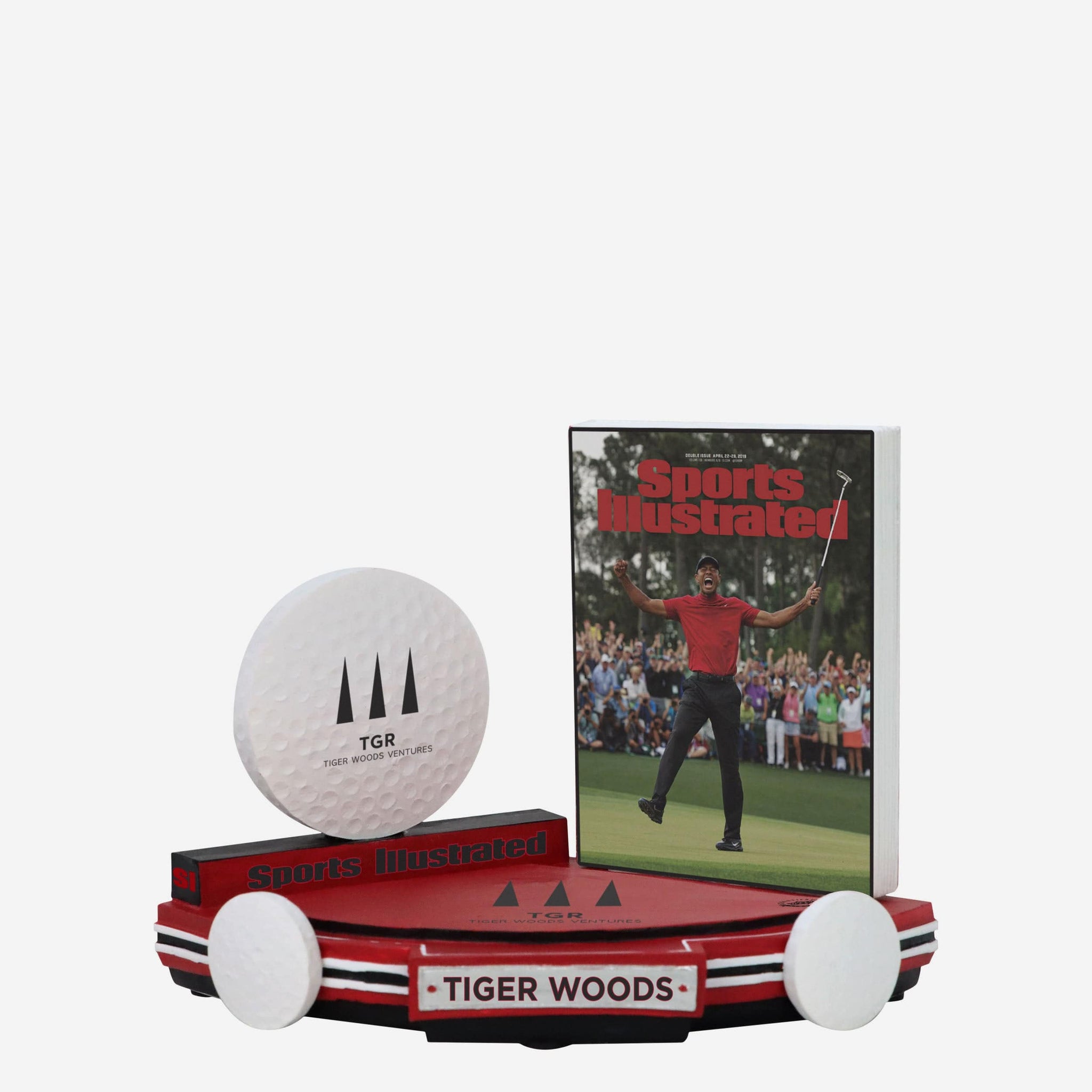 April 2019: Tiger Woods graces the cover of Sports Illustrated as a champion. Relive his historic victory with the Tiger Woods 2019 Championship Moment Sports Illustrated Cover Bobblehead.
