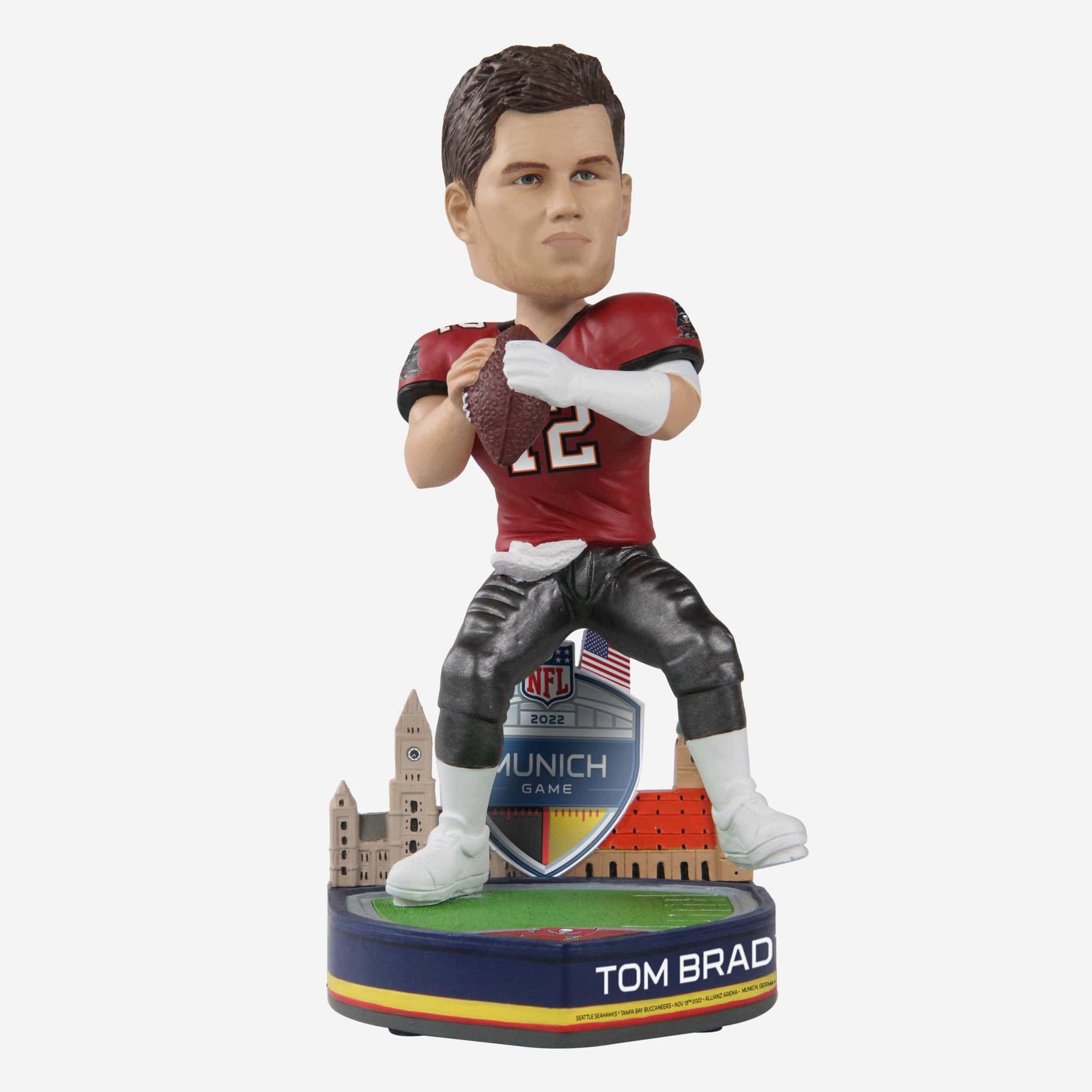 The captain of this ship is setting sail to Munich. Chart a course for the first-ever regular season game in Germany with the Tom Brady Tampa Bay Buccaneers 2022 International Game Bobblehead.