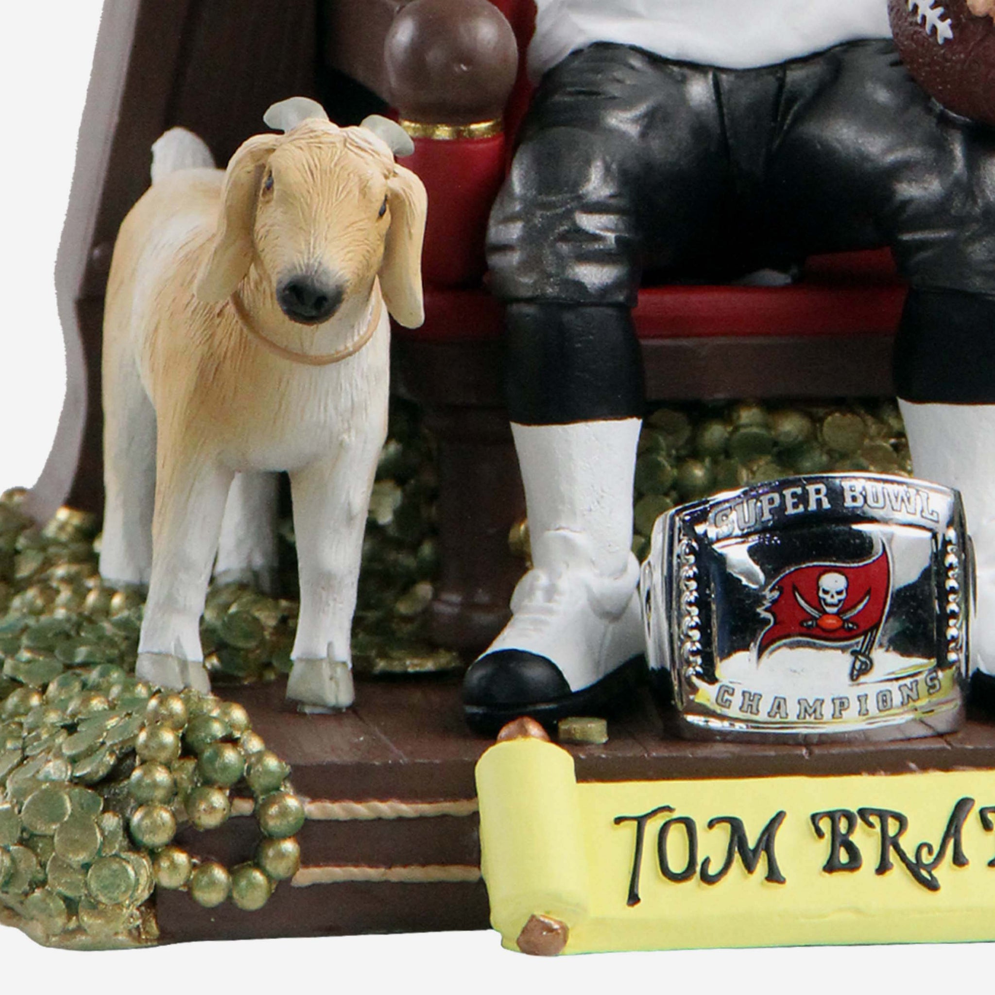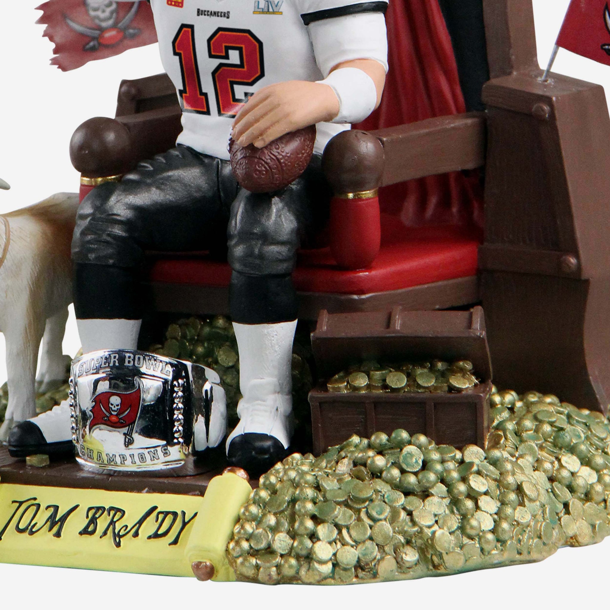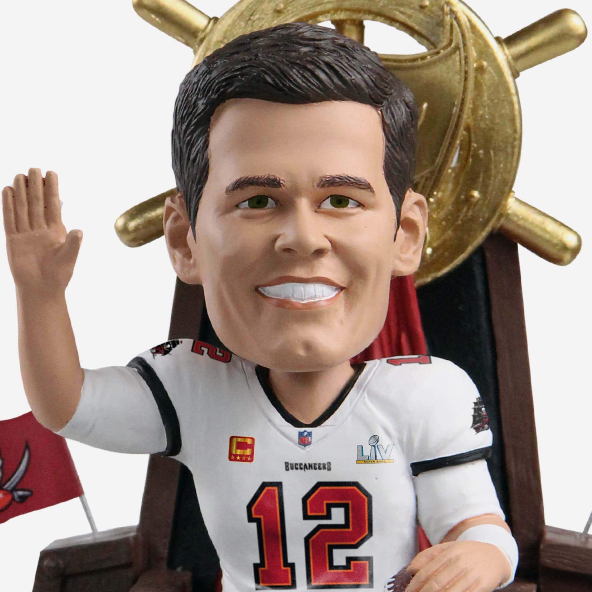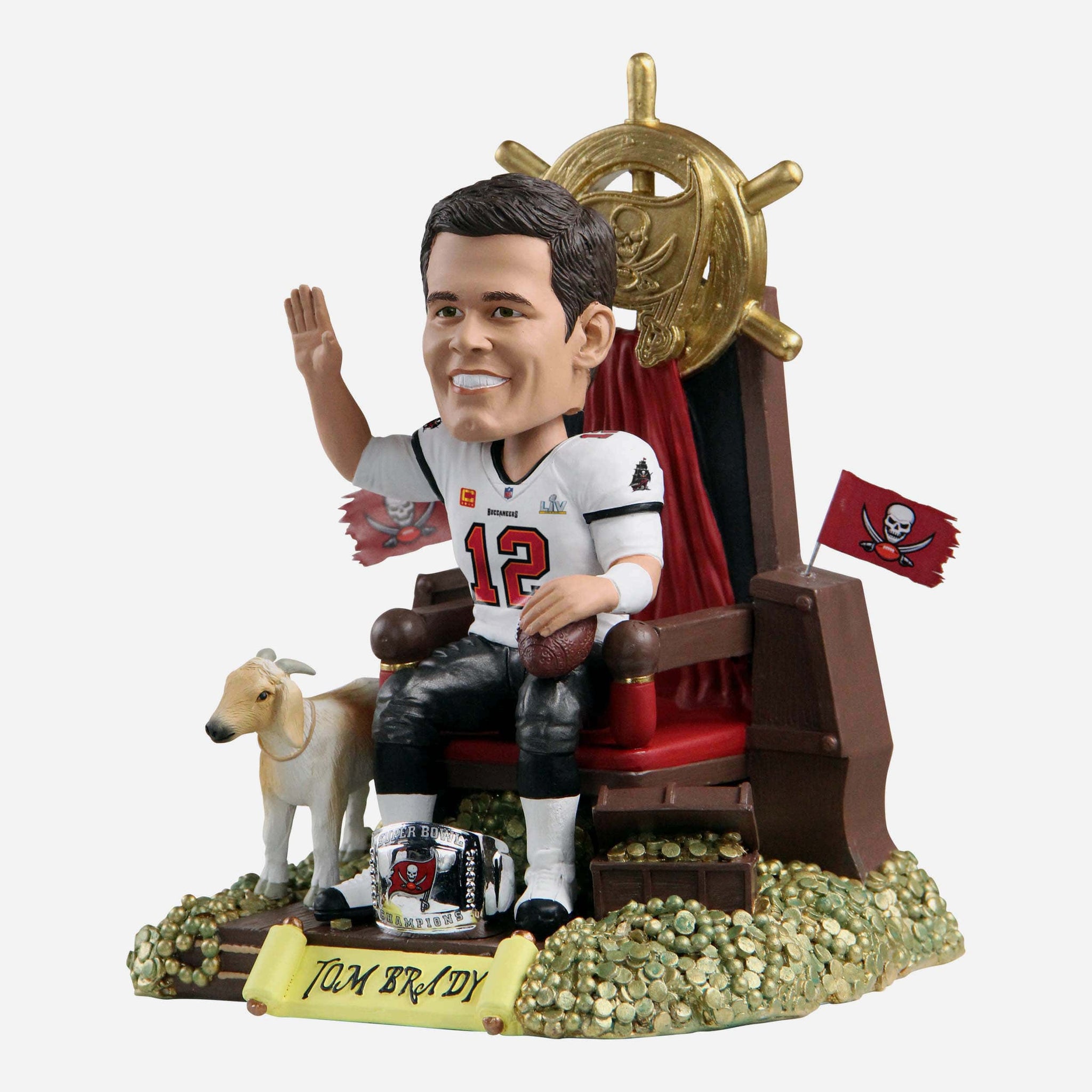 - Portrays Brady in his gameday uniform sitting on a team-colored, pirate-themed throne, because he's a king of the gridiron
