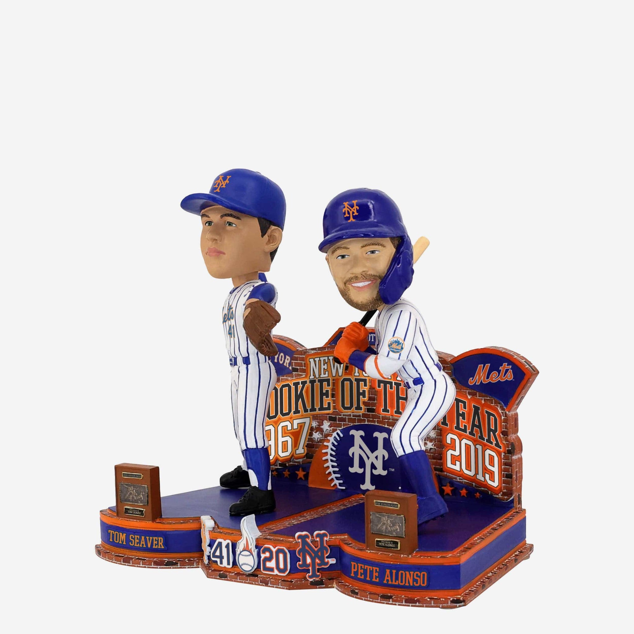 Two star Mets rookies. One legendary bobble! Bridge the decades in the Big Apple with the Tom Seaver & Pete Alonso New York Mets 1967 & 2019 Rookie Of The Year Then And Now Bobblehead.