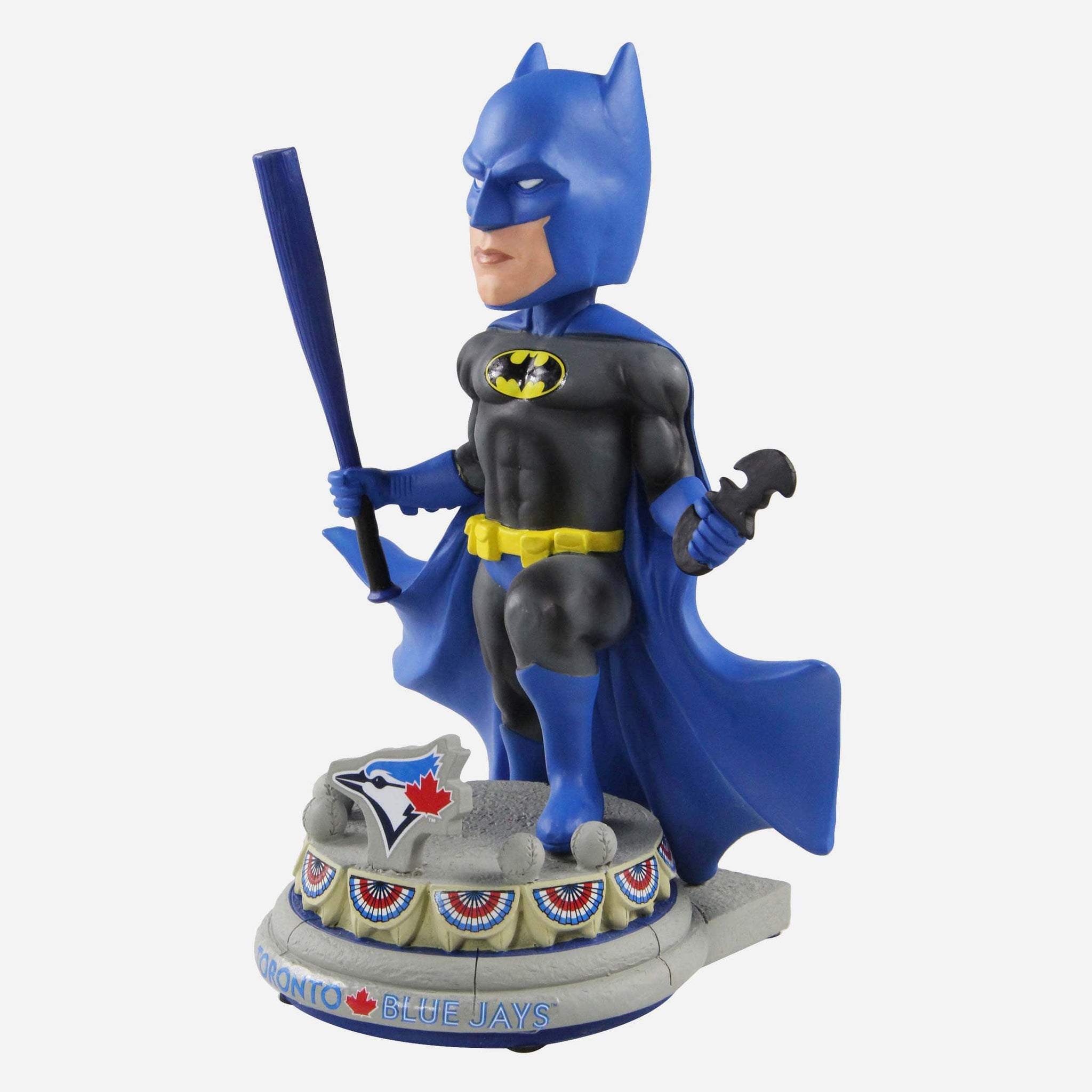 Batman? Holding a baseball bat? That's, like, bat-ception. Step up to the plate and hit a grand slam straight out of Gotham with this Toronto Blue Jays Batman DC Bobblehead.