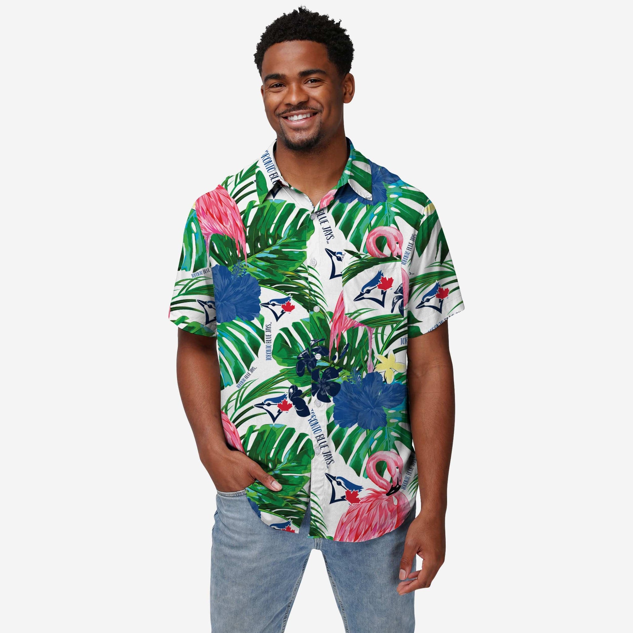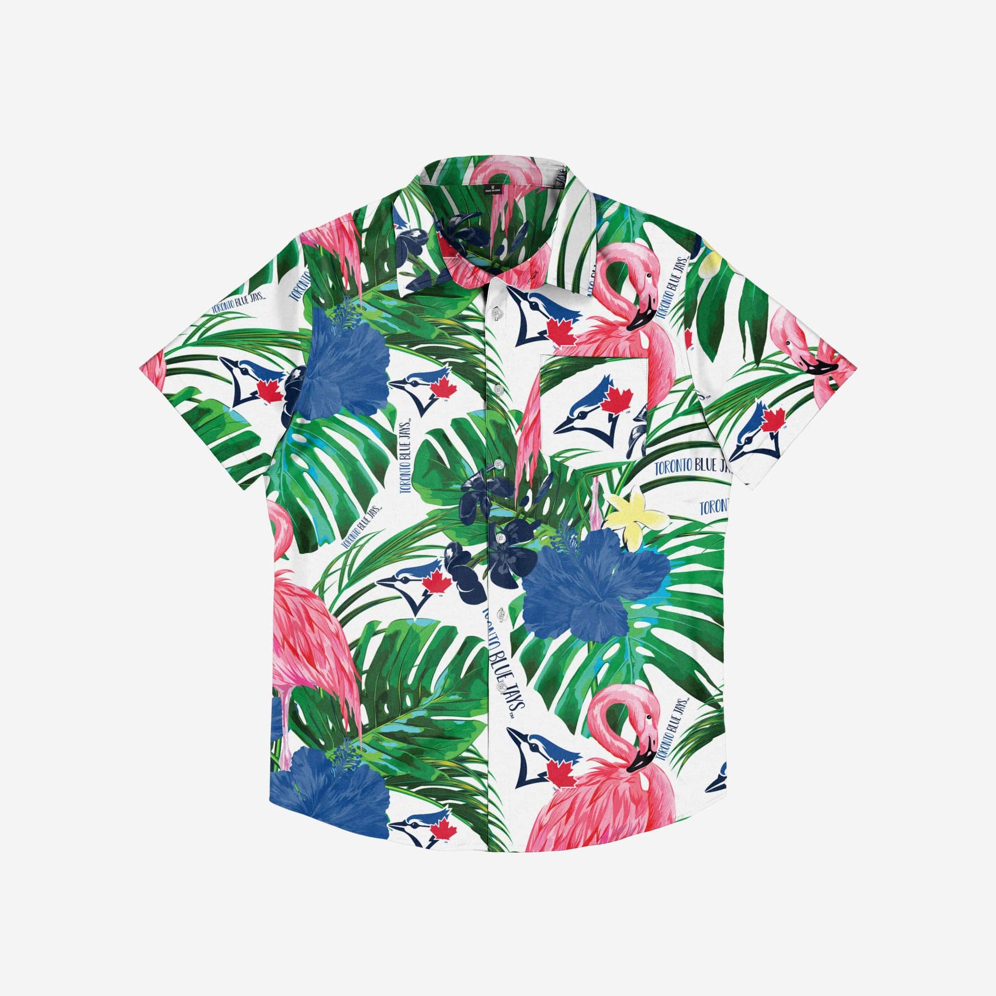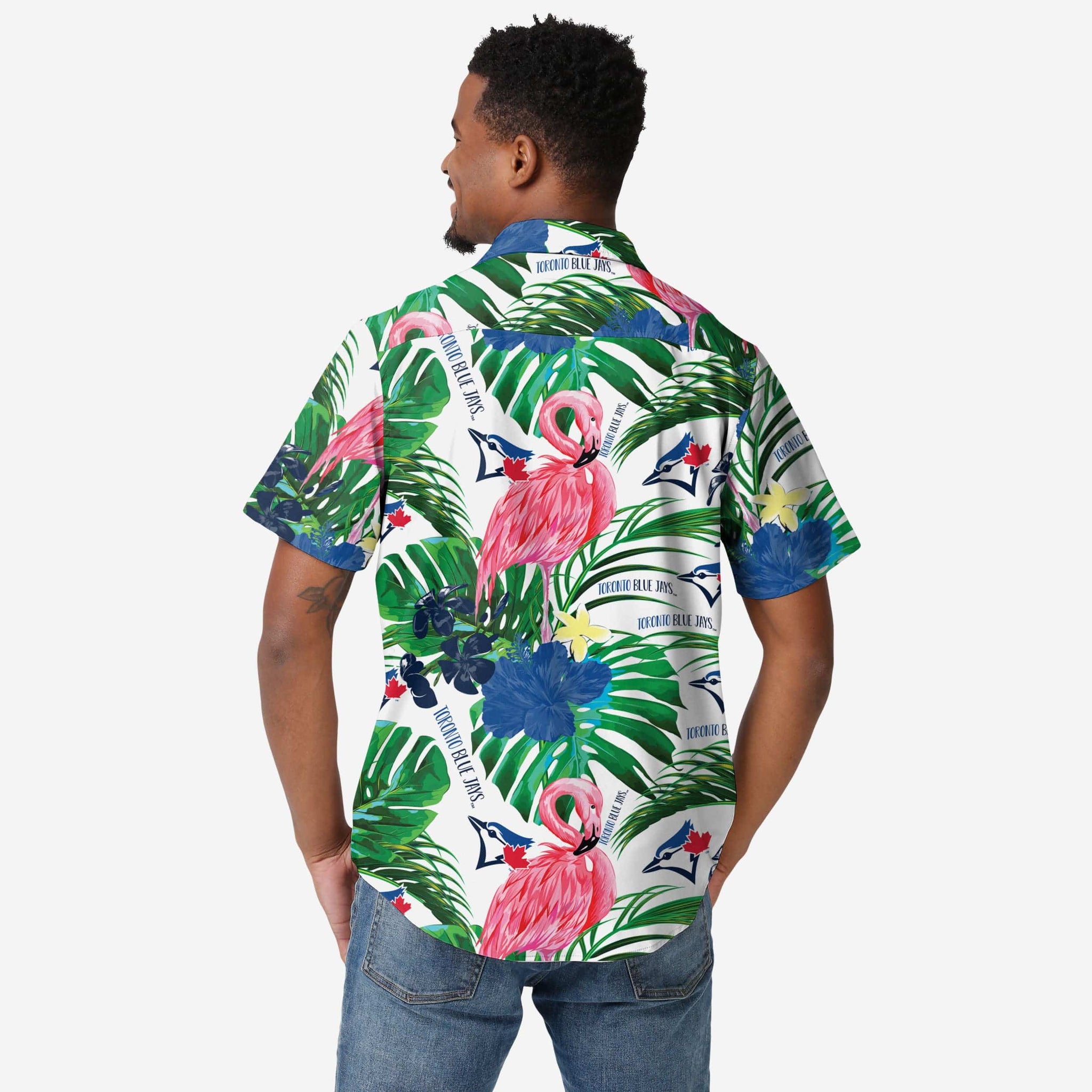 Aloha, party people! No need to set your watch - You're always on island time when you're rocking this Toronto Blue Jays Flamingo Button Up Shirt.