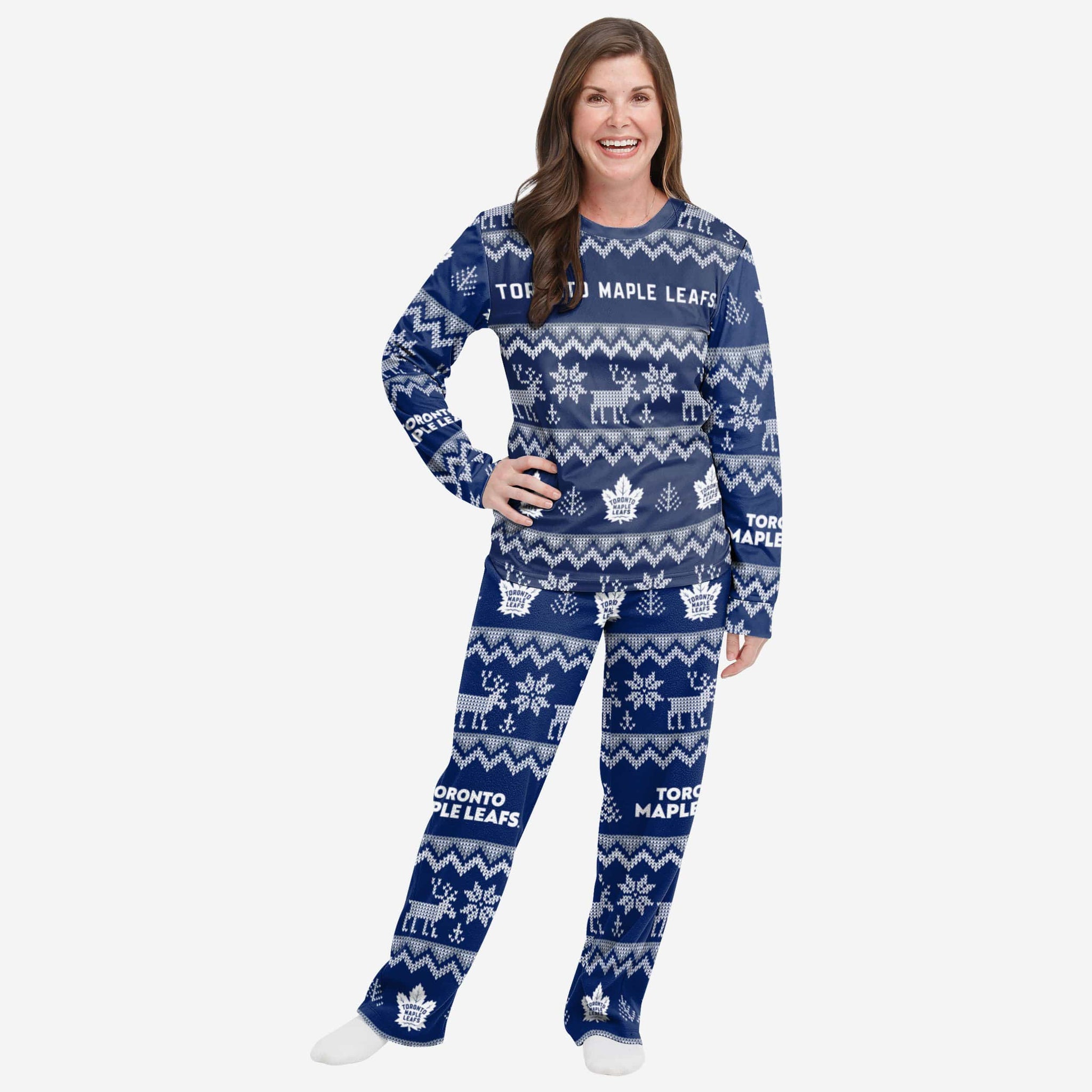 Toronto Maple Leafs Womens Ugly Pattern Family Holiday Pajamas FOCO - FOCO.com