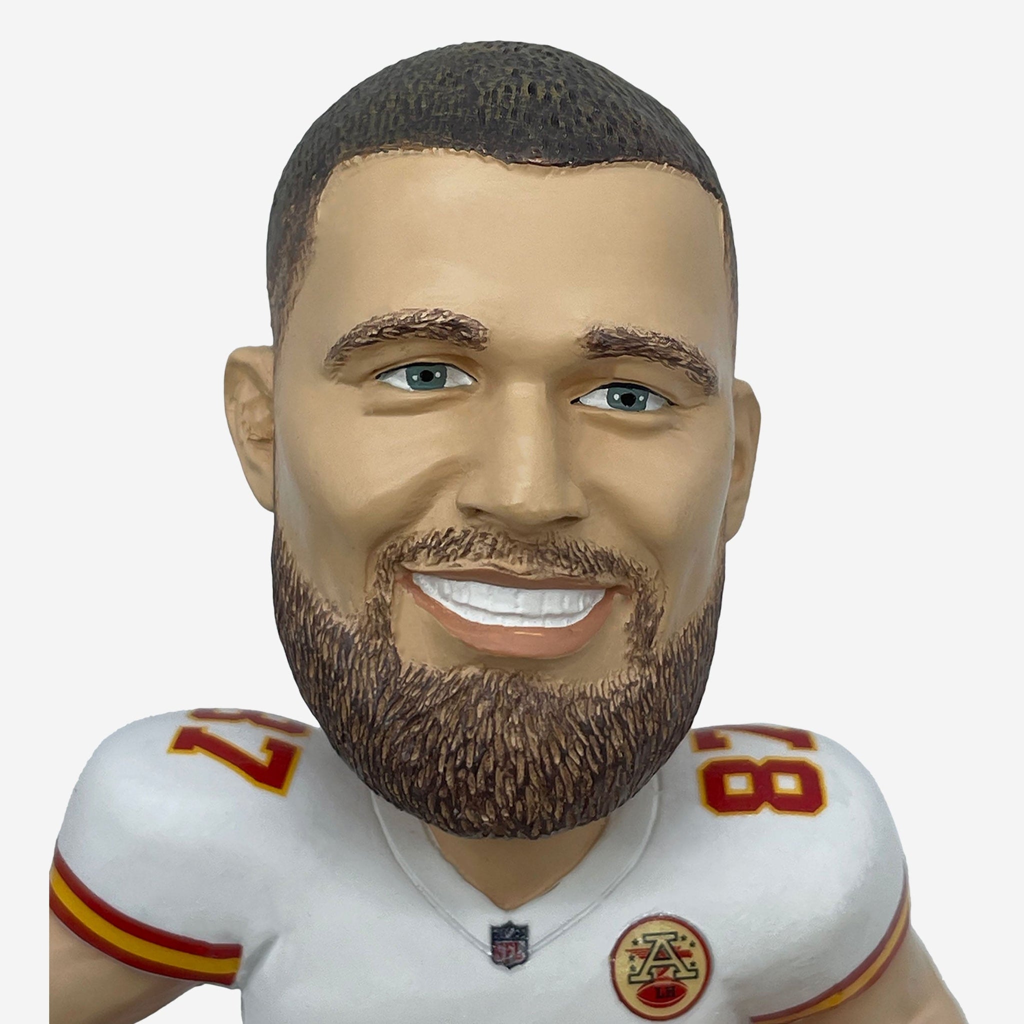 - Portrays Kelce wearing his white gameday uniform in an action pose, ready to add to that reception total