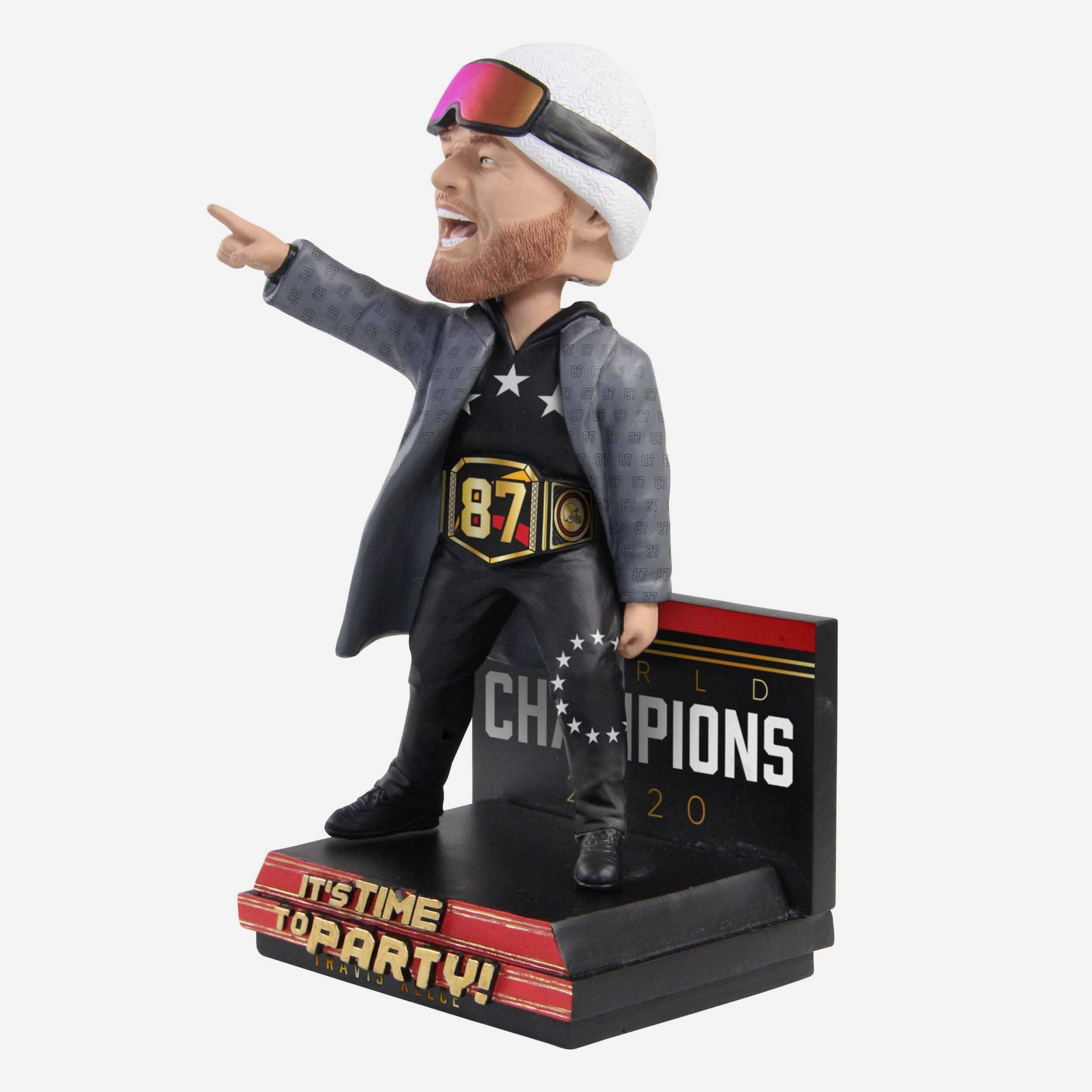 Travis Kelce is always ready for game time AND party time. He's a man of many talents. Fight for your right to fan like a champ by adding the Travis Kelce Championship Belt Bobblehead to your collection.