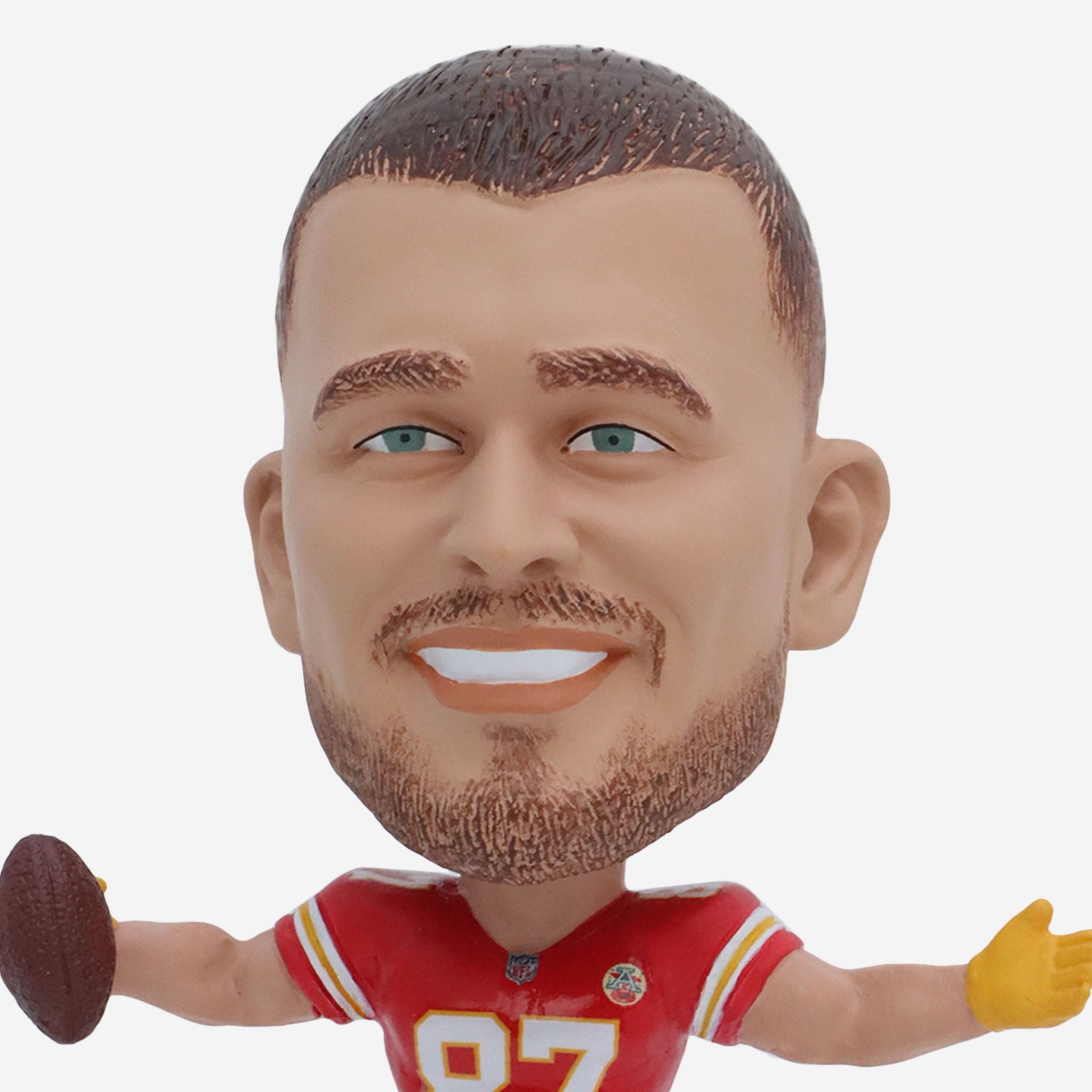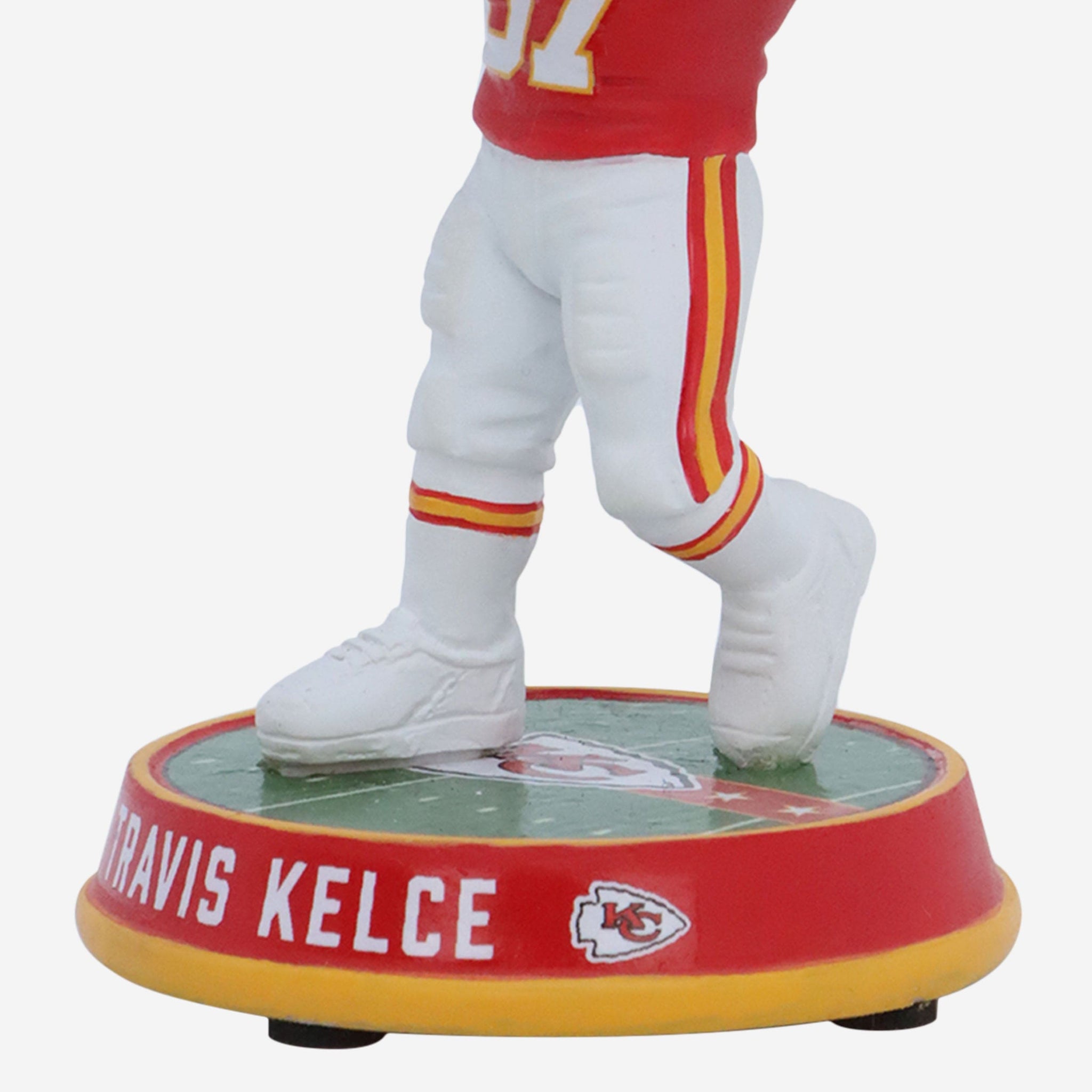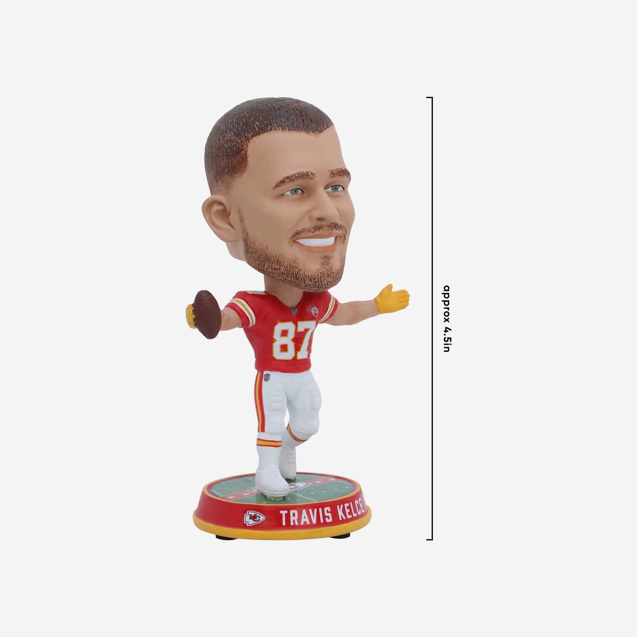 He may make big plays on the gridiron, but in your collection, he's small and compact. Size down and fan on with the Travis Kelce Kansas City Chiefs Field Stripe Mini Bighead Bobblehead.