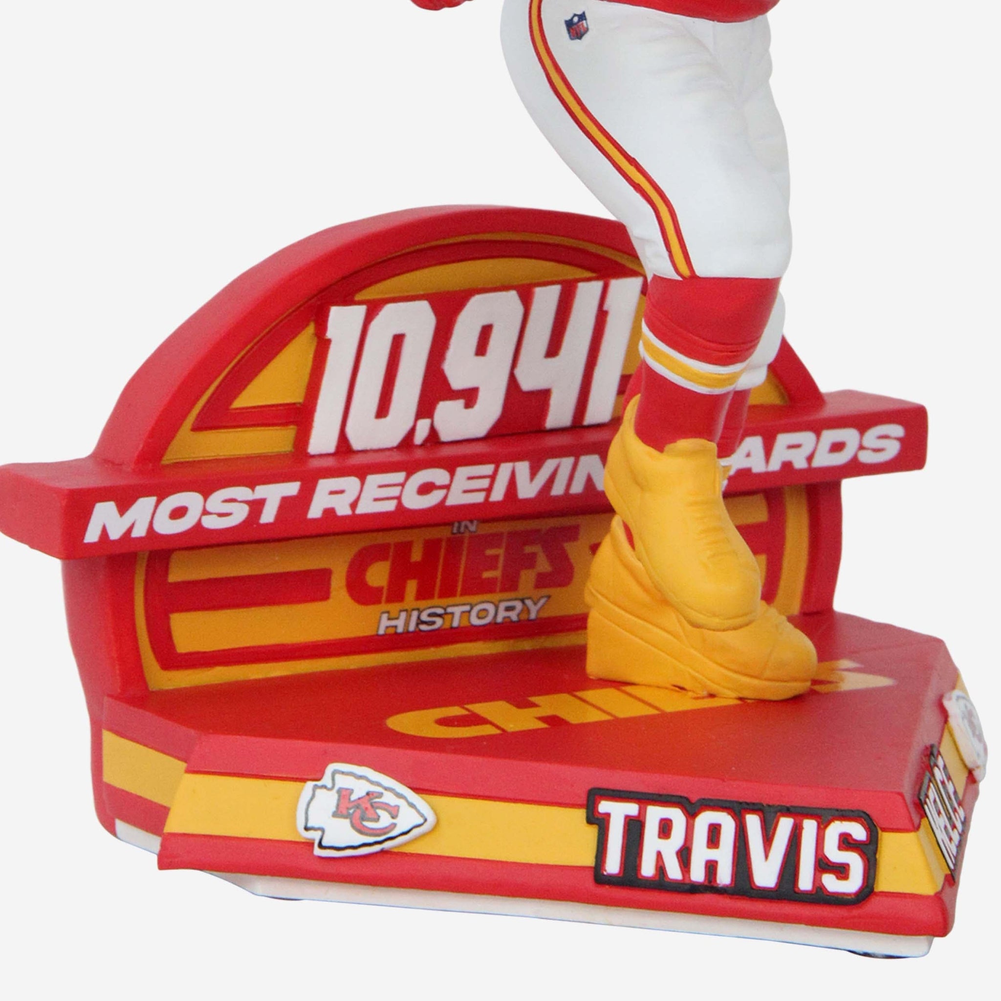 There's a new franchise leader in KC. Keep tallying up the yardage through the air with the Travis Kelce Kansas City Chiefs Franchise Receiving Yards Record Bobblehead.