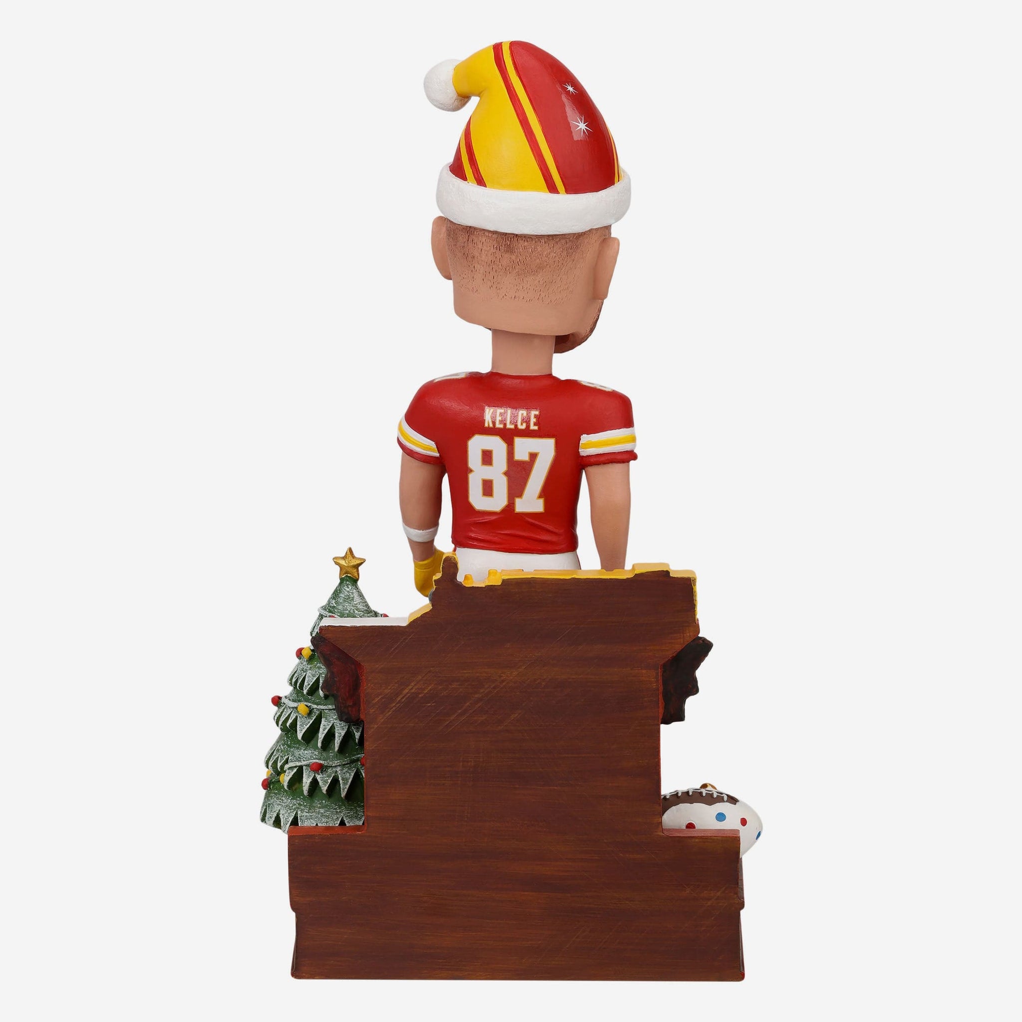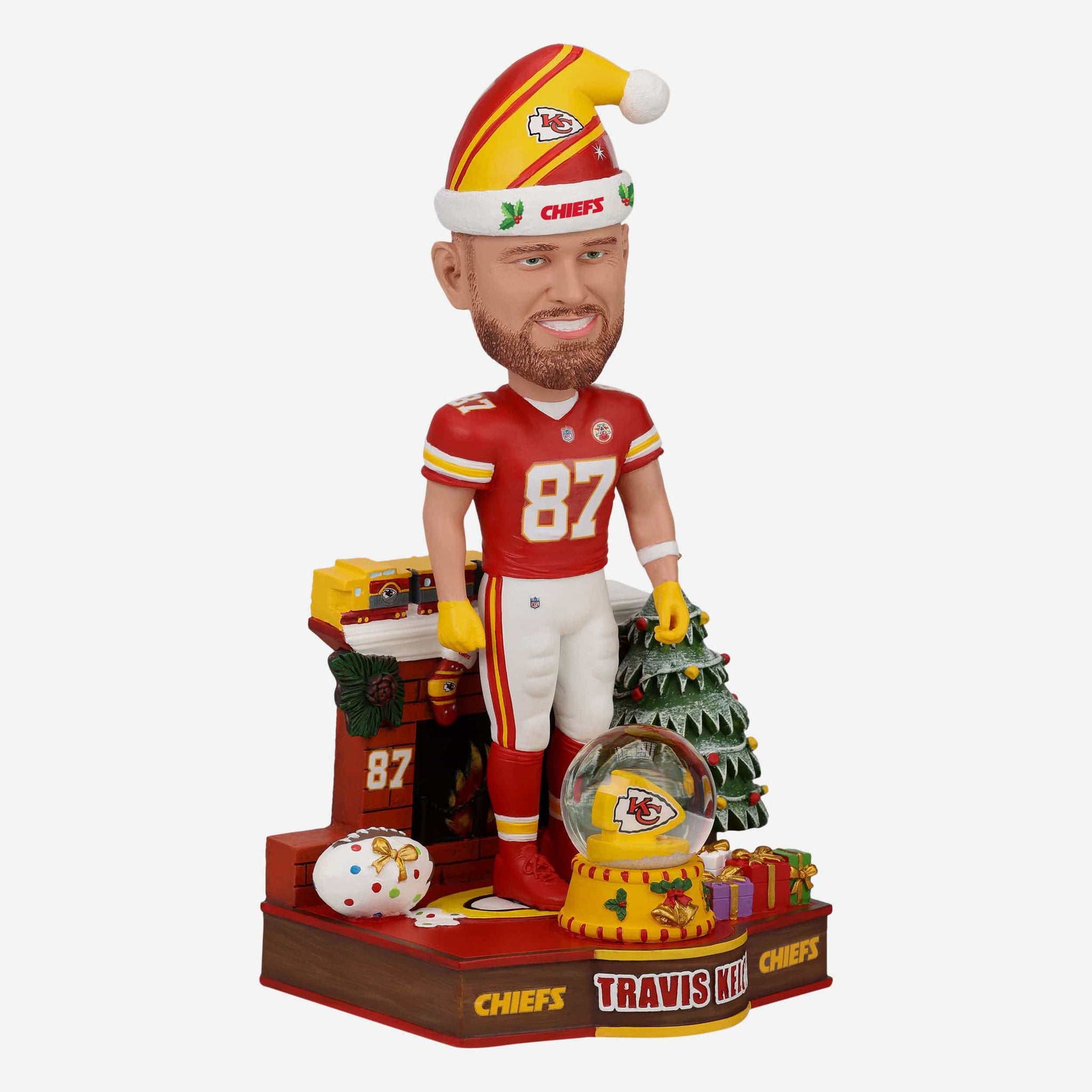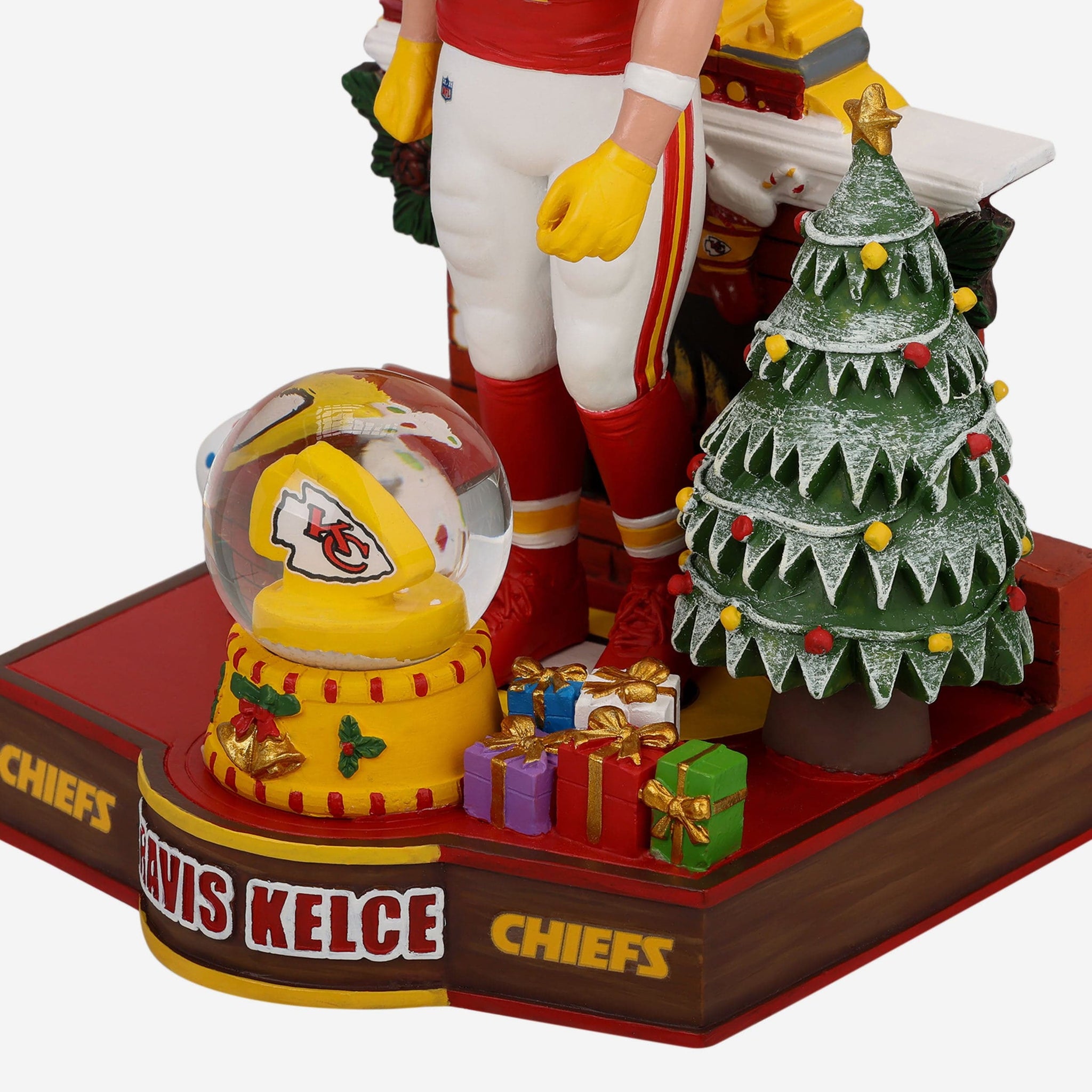 Holiday cheer, from the gridiron to your fancave! Make things festive with the Travis Kelce Kansas City Chiefs Holiday Snowglobe Bobblehead.
