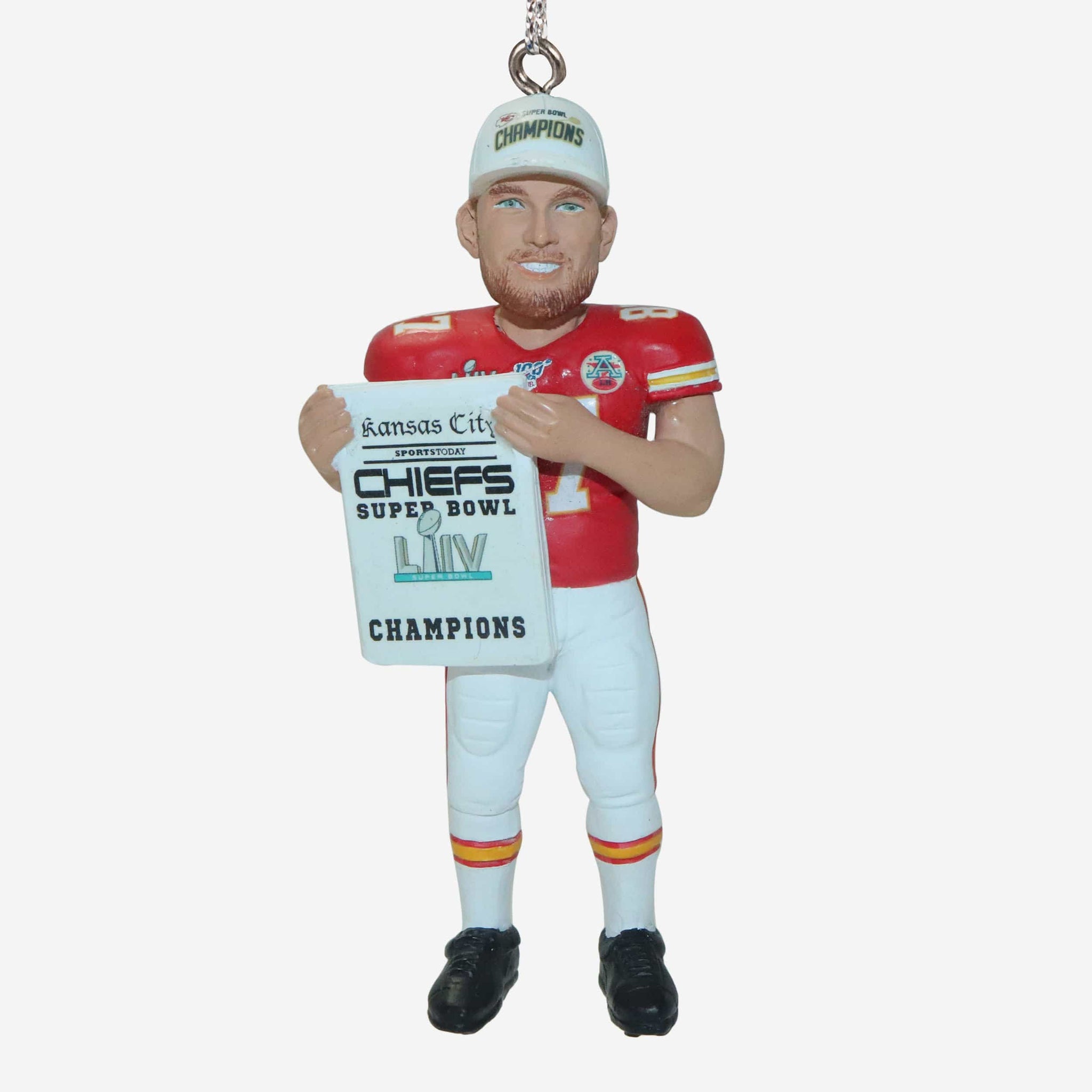 Winning a Super Bowl championship? That's the gift that keeps on giving. Celebrate a legendary championship season every holiday season by hanging up this Travis Kelce Kansas City Chiefs Super Bowl LIV Champions Ornament.