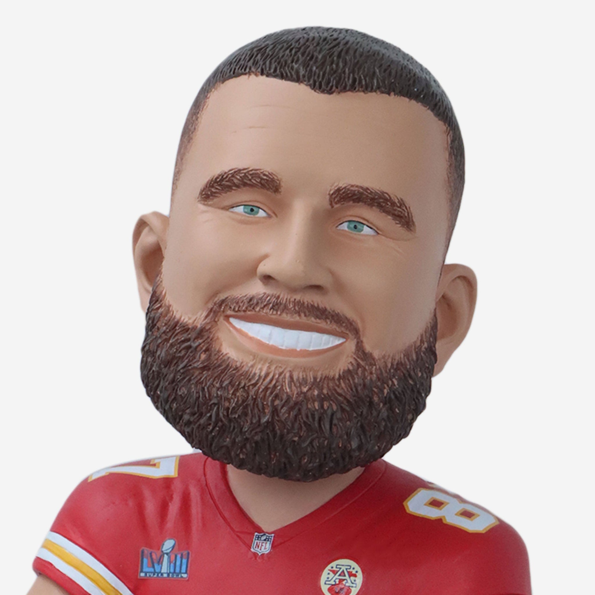 Just because you didn't get to go on the field after the game to celebrate with the team doesn't mean you can't party with your favorite superstar. All you need is this Travis Kelce Kansas City Chiefs Super Bowl LVIII Champions 18 in Bobblehead!