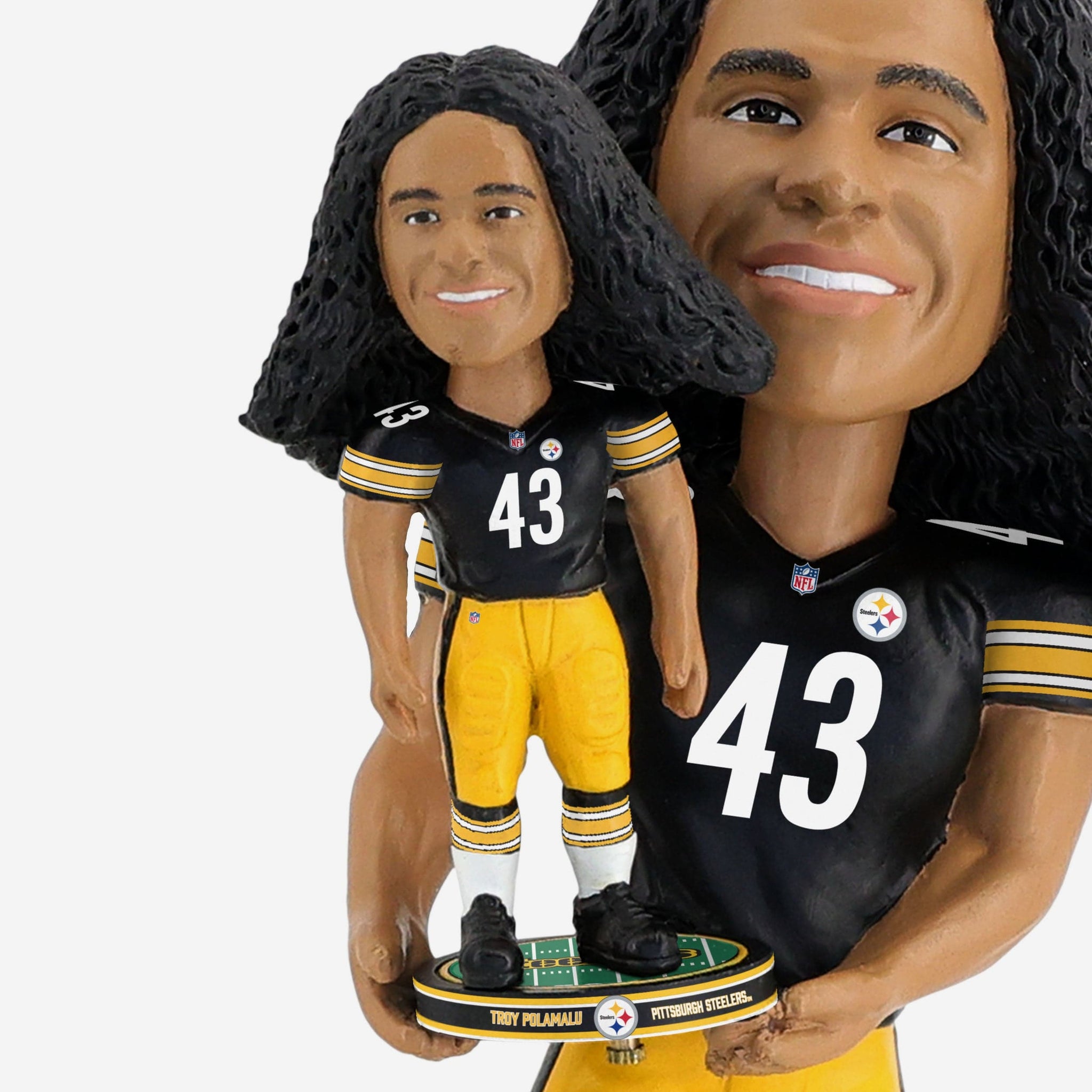 A double dose of your favorite player! Become twice the fan with this Troy Polamalu Pittsburgh Steelers Bobble Dubblz Bobblehead.