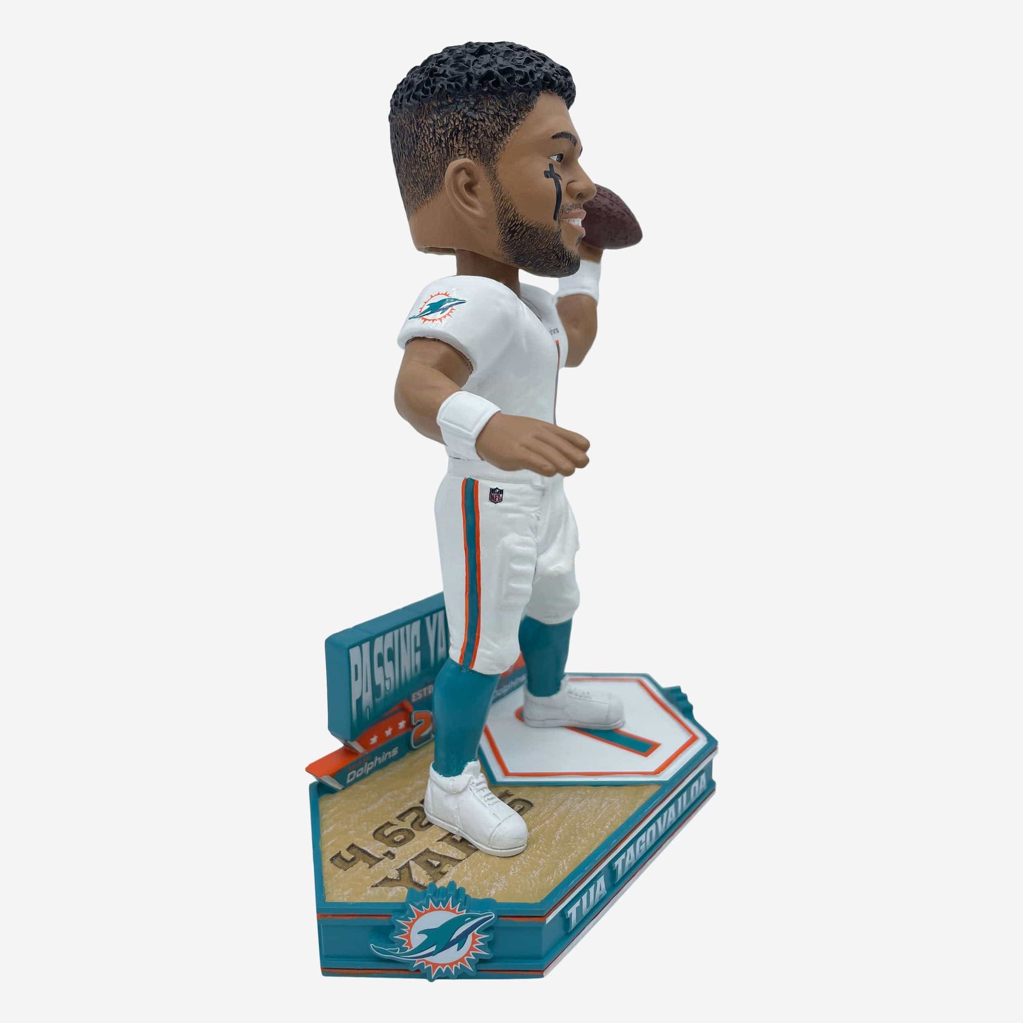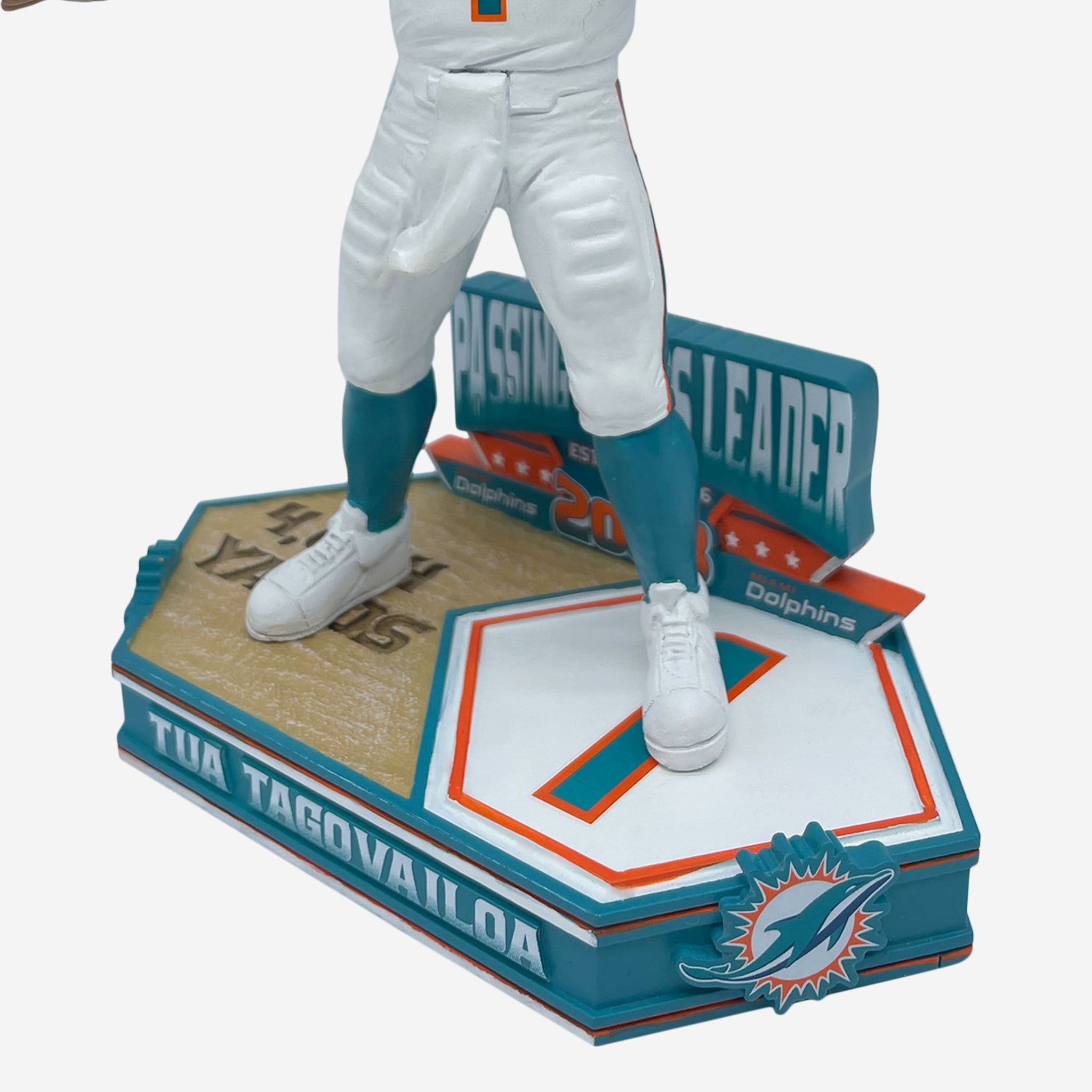 The most passing yards in the NFL for 2023! Rack up the air mileage with the Tua Tagovailoa Miami Dolphins 2023 Passing Yards Leader Bobblehead!