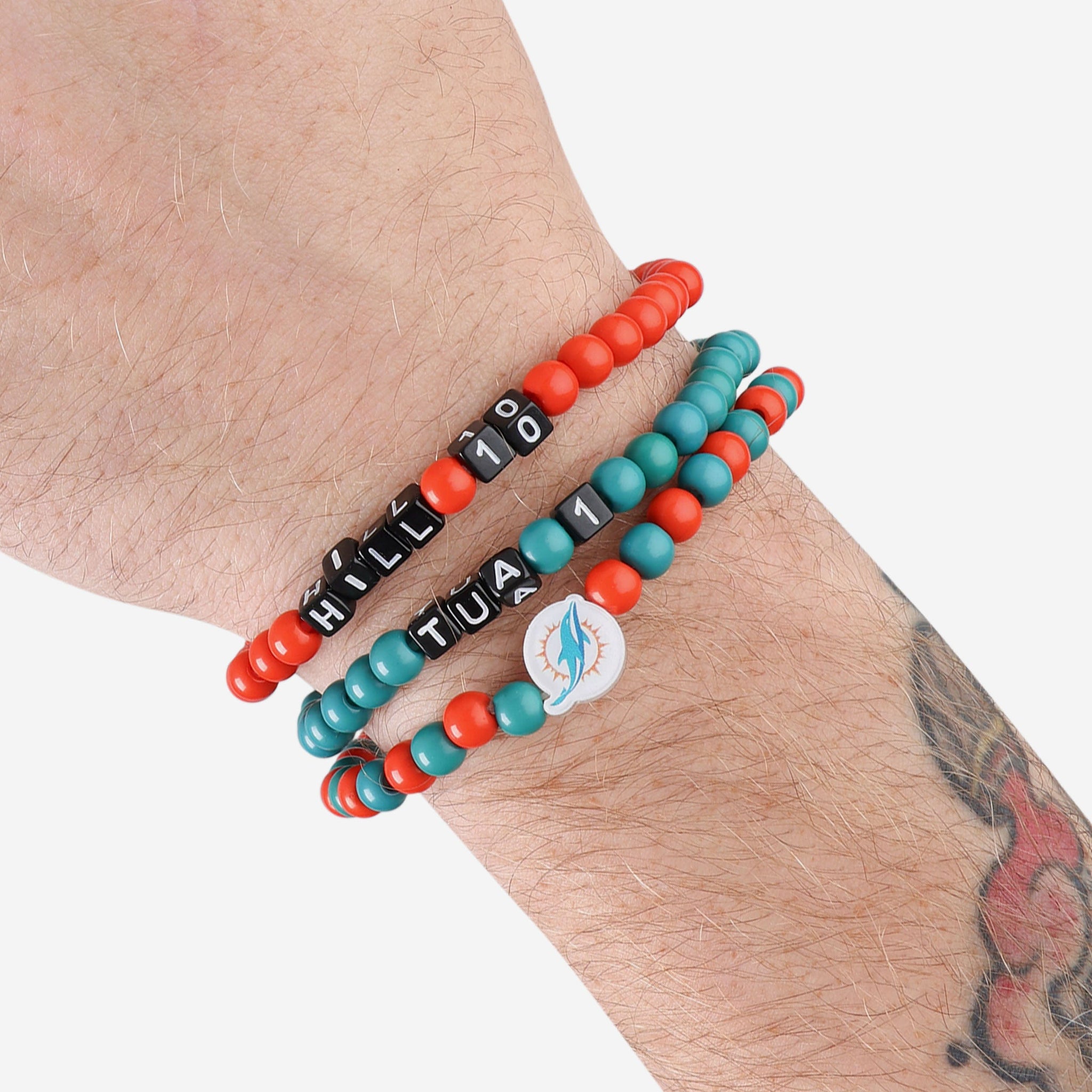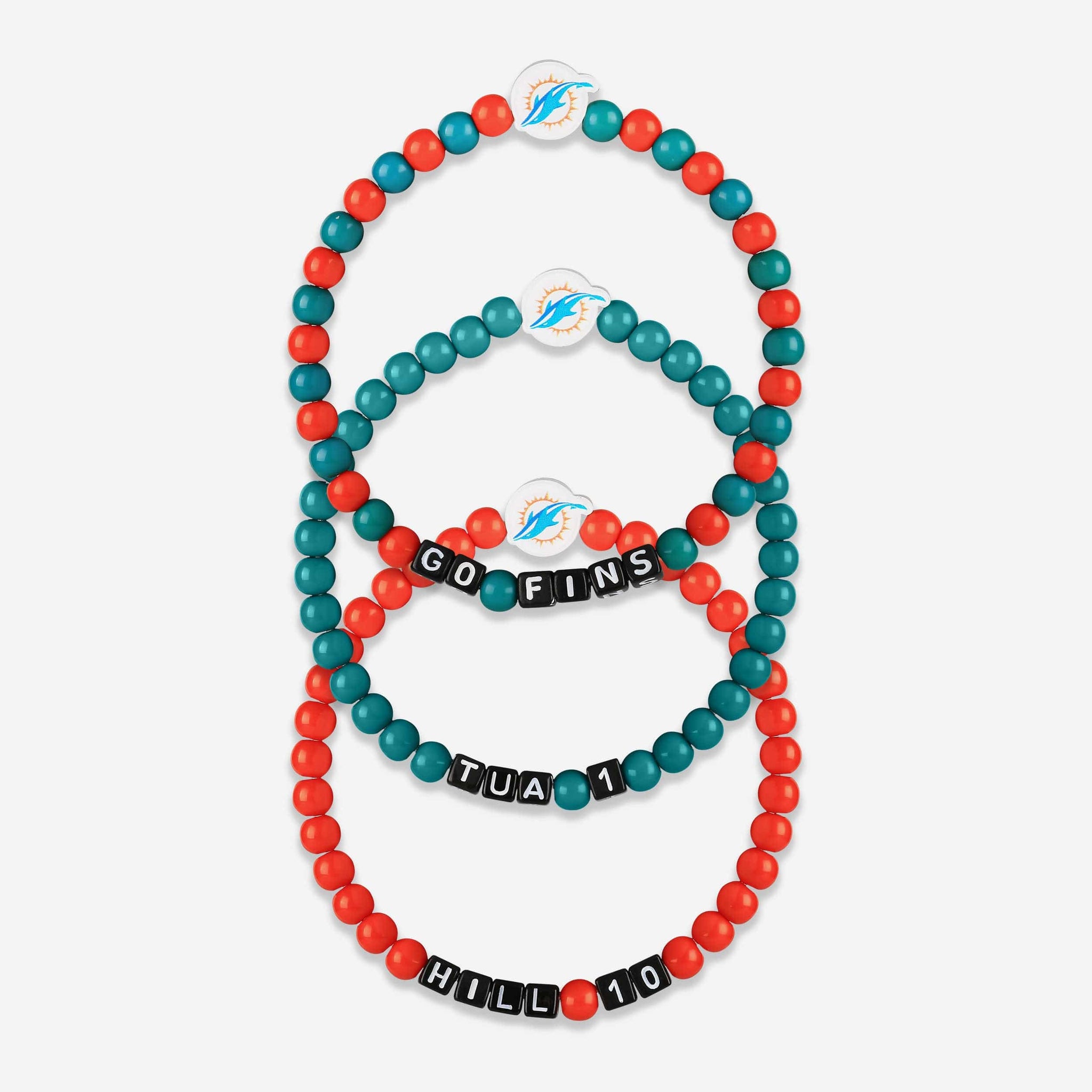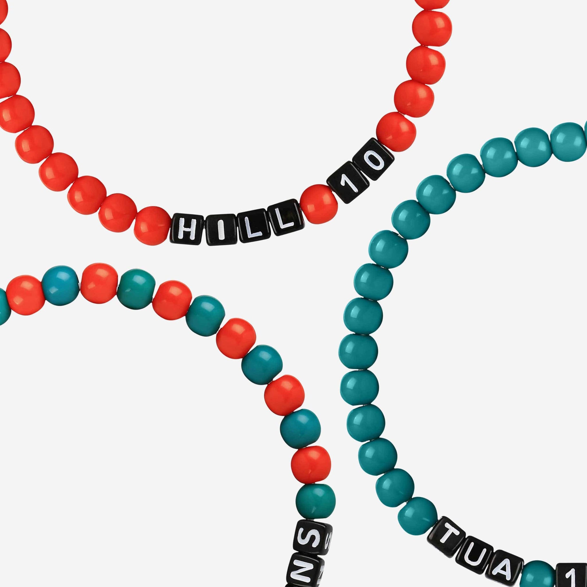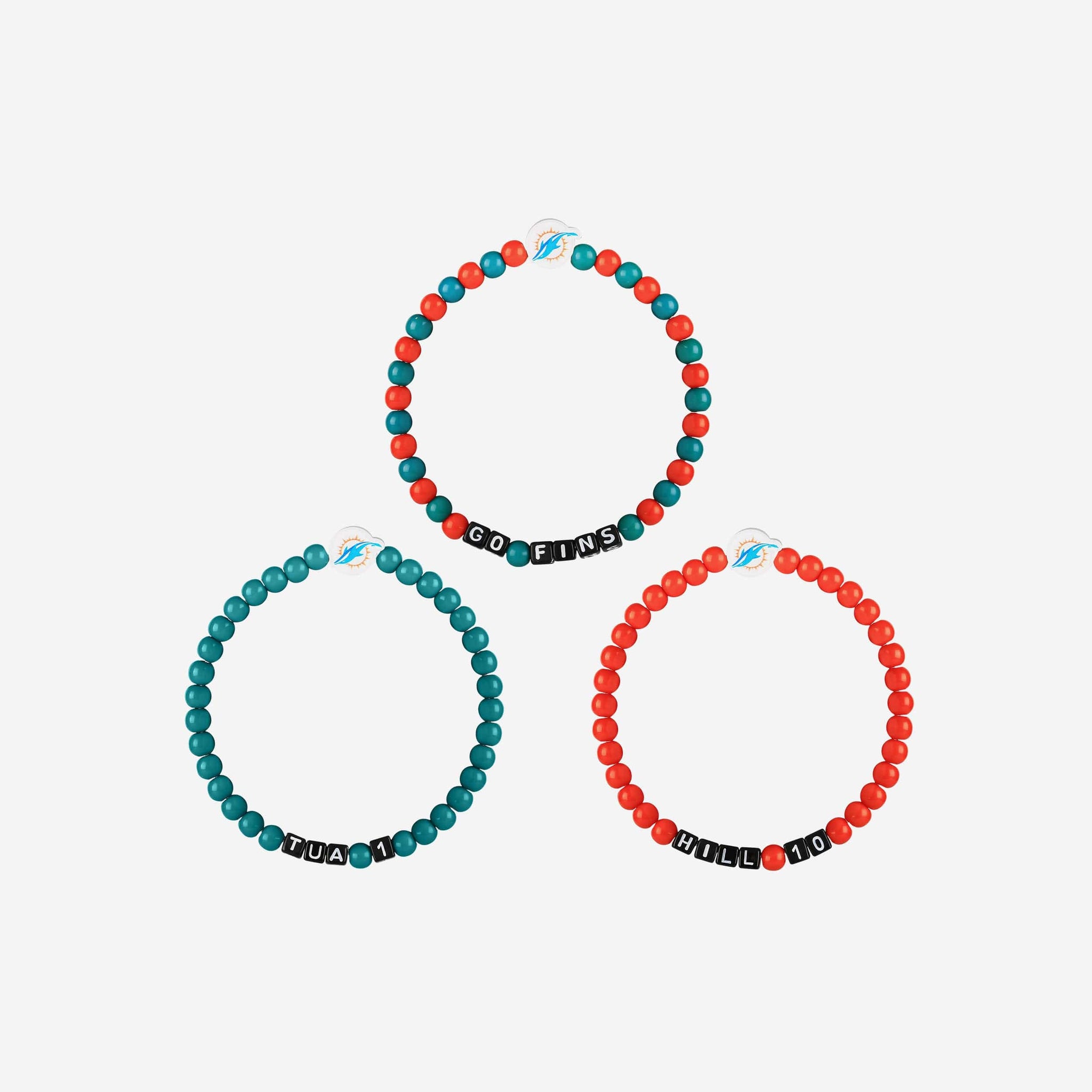 A whole new way to rep the team in style is here. Step up your fan fashion sense with this Tua Tagovailoa & Tyreek Hill Miami Dolphins 3 Pack Player Beaded Friendship Bracelet. These matching friendship bracelets have an all-over team-colored design and team logo displays, which makes them the perfect way to show your support for the Miami Dolphins on gamedays and every day in between.