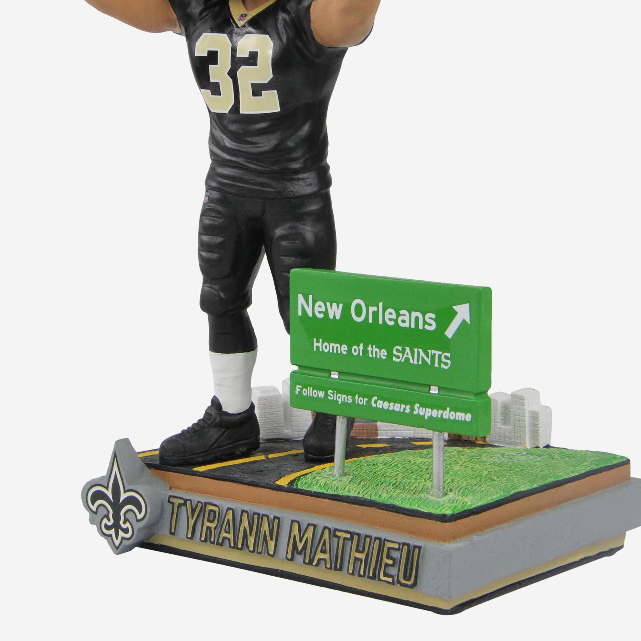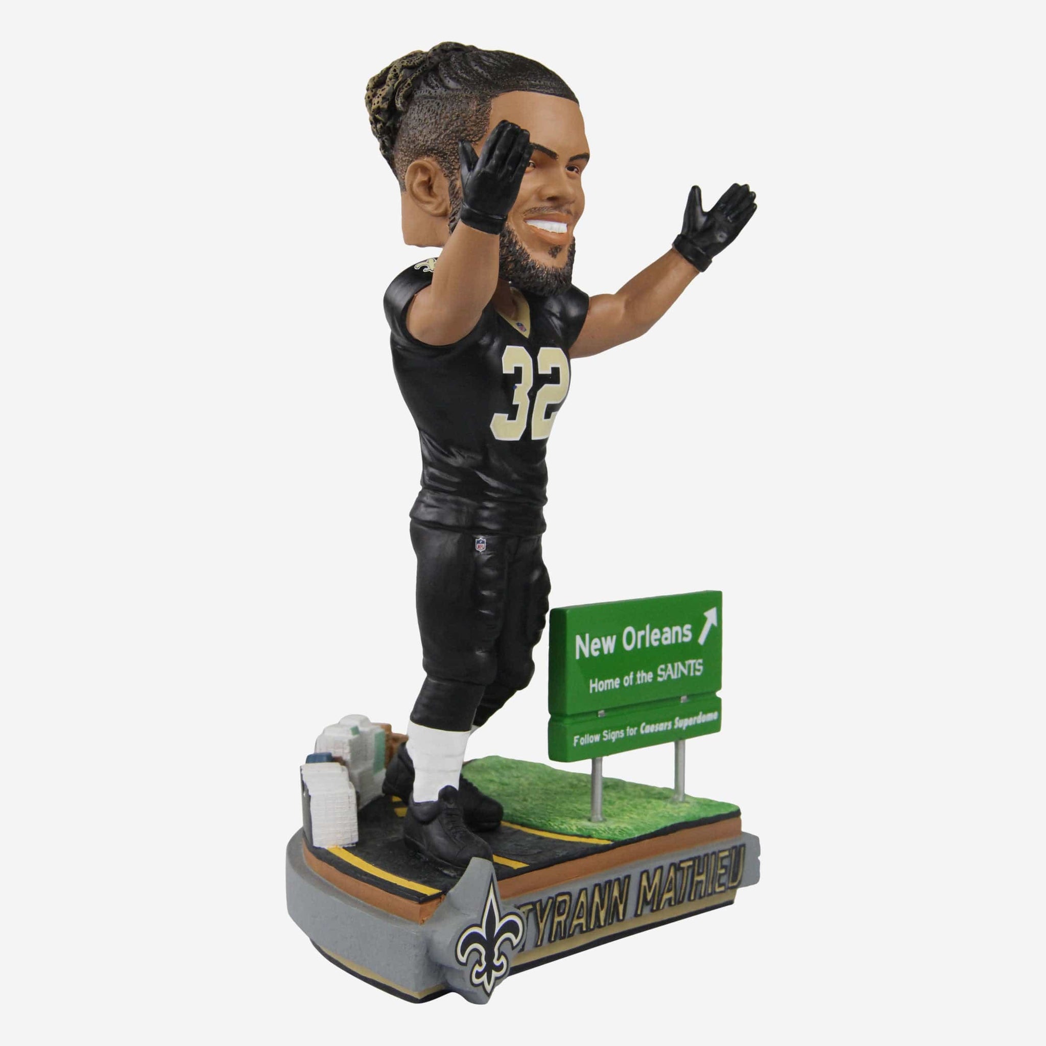 Who Dat!? The Honey Badger, dat's who. Welcome NOLA's newest superstar to your collection with this Tyrann Mathieu New Orleans Saints Next Stop Bobblehead.