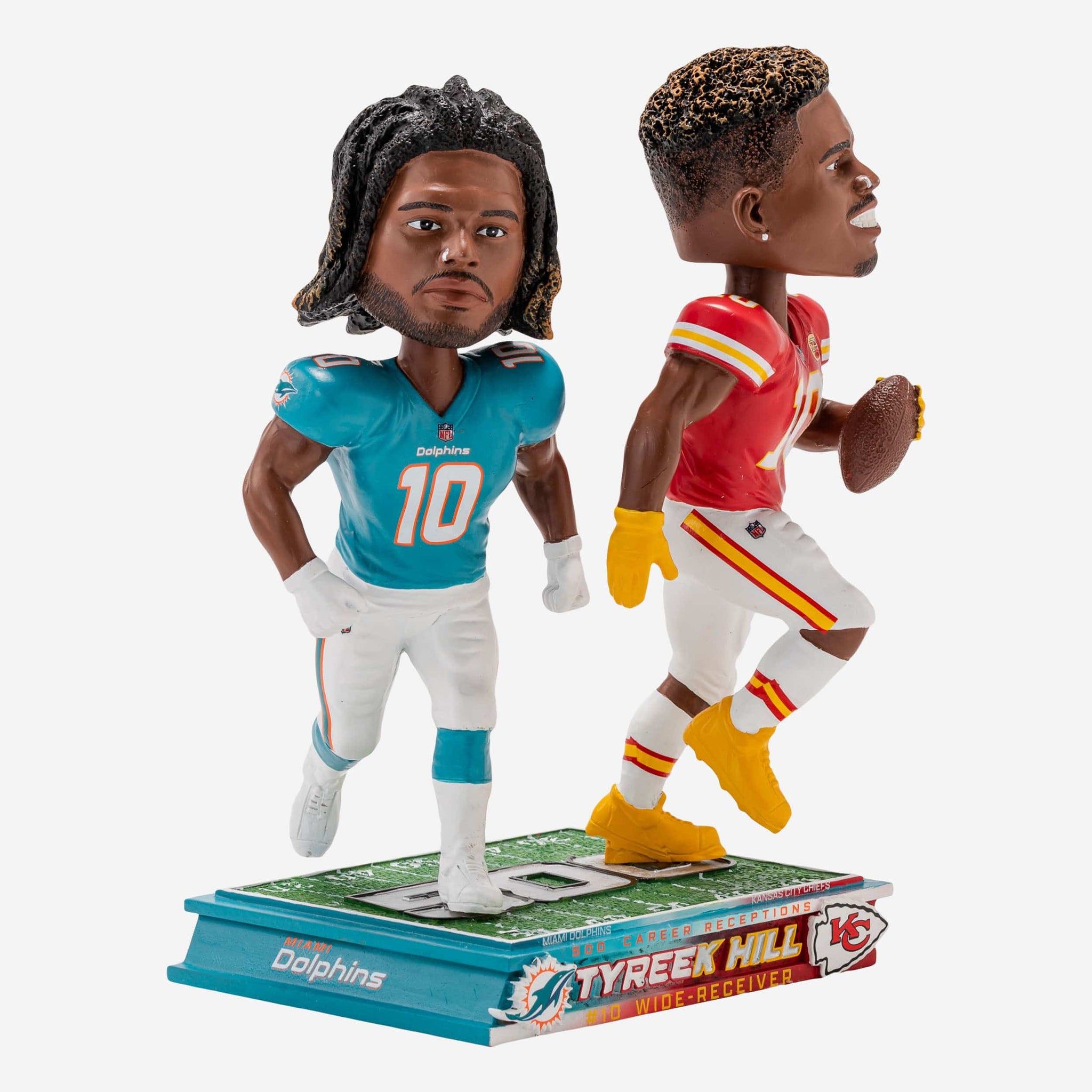 From KC to MIA, Tyreek just keeps on catching. It's a 500 fiesta in the 305, and you can bring Cheetah's celebration to your fancave with this Tyreek Hill Miami Dolphins 500 Receptions Dual Bobblehead.