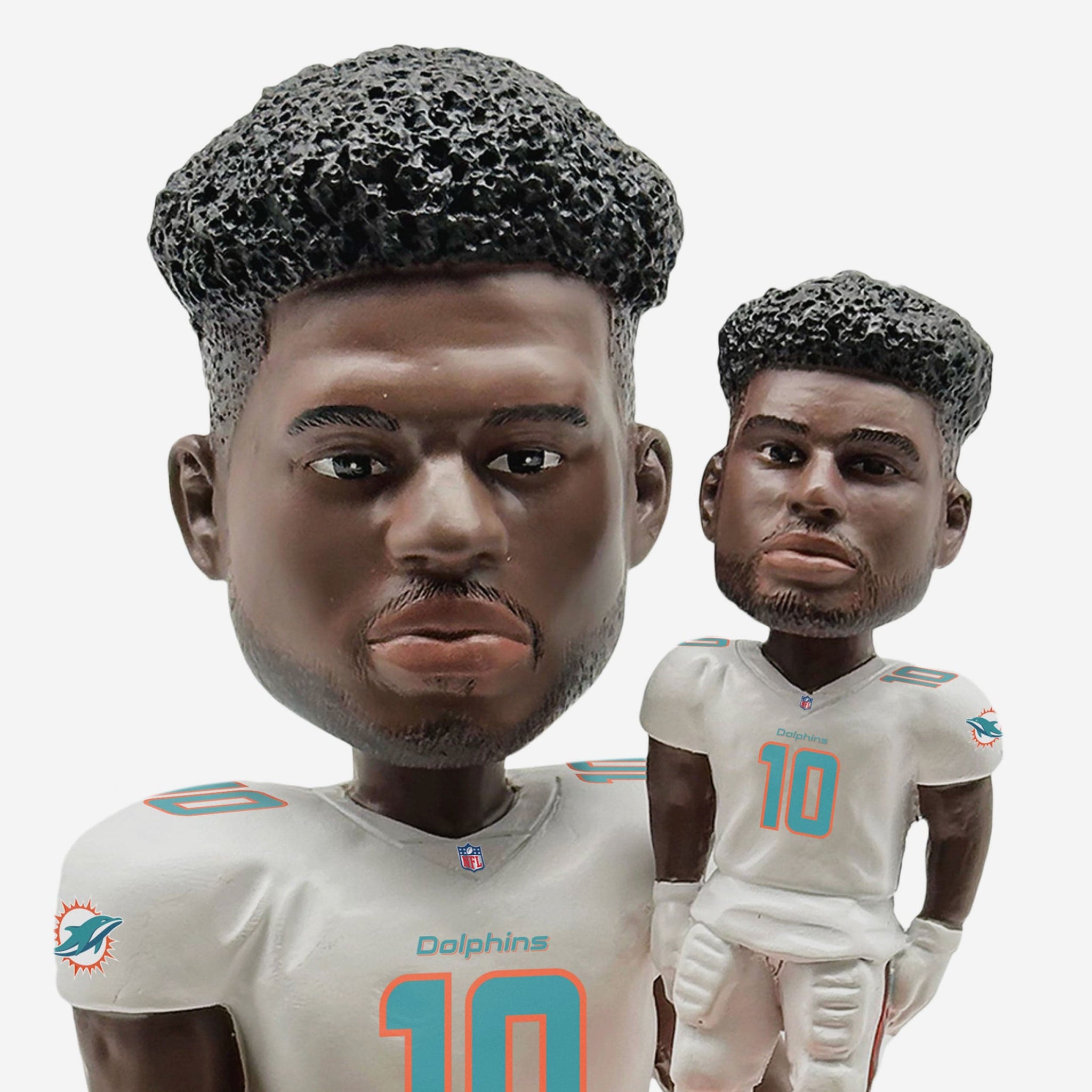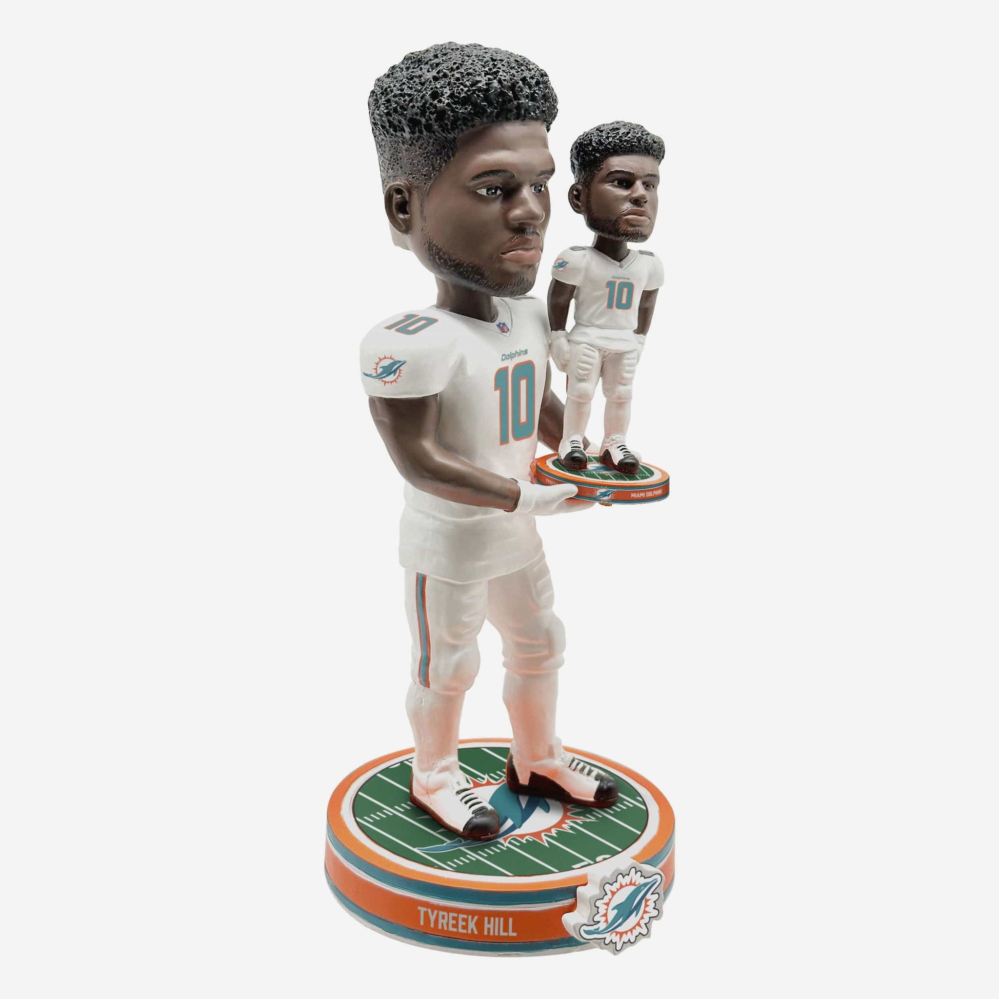 Your favorite star is in good hands - their own! Get ready to double down in your collection with this Tyreek Hill Miami Dolphins Bobble Dubblz Bobblehead.