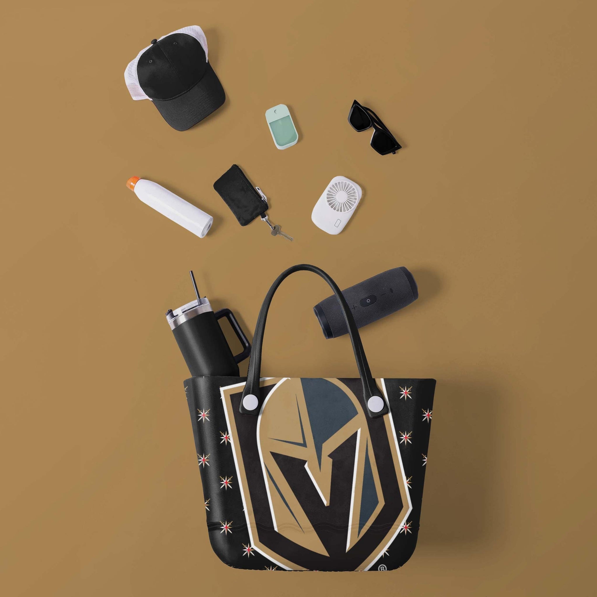 Looking for a bag as durable and dependable as your team spirit? You've found it. Whether you're running the tailgate, hitting the beach, or going on any adventure, pack up your fandom and take it on the go with this Vegas Golden Knights Big Logo Mini Print Tailgate Tote Bag.