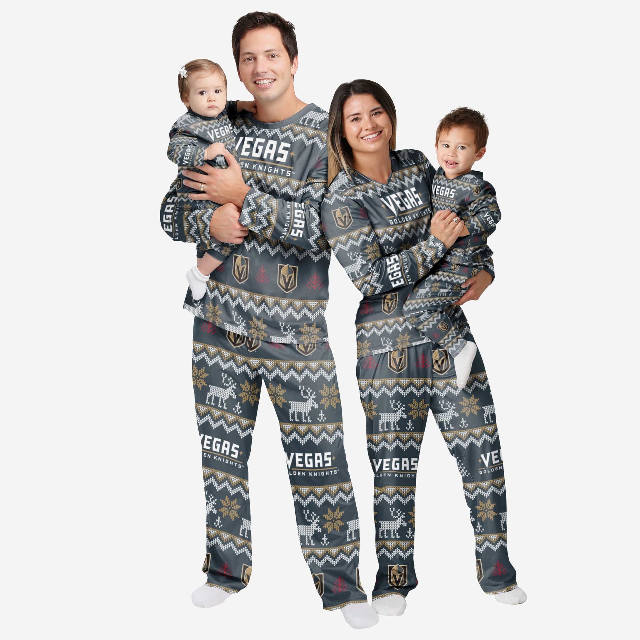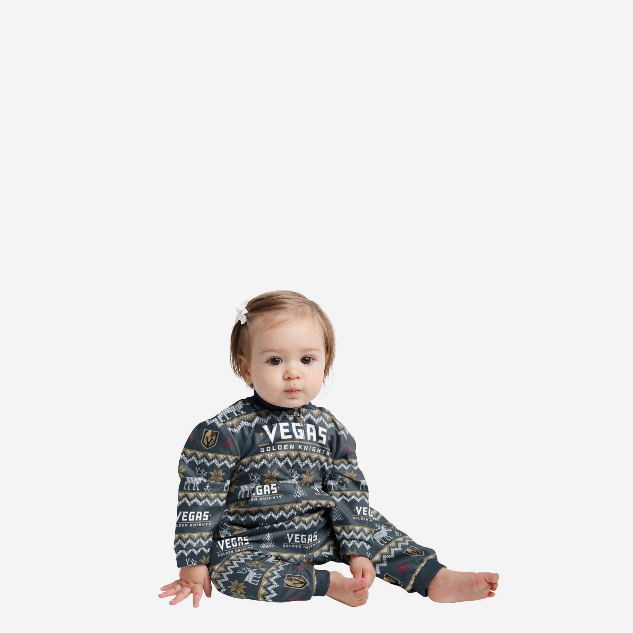 Get your young fan started early this holiday season in these Vegas Golden Knights Infant Ugly Pattern Family Holiday Pajamas! Your baby will absolutely love these matching Christmas pajamas! Make sure your infant enjoys sweet dreams filled with holiday joy by having them sleep in infant pajamas. Don’t forget to take your holiday photo with the whole family wearing matching Christmas pajamas!
