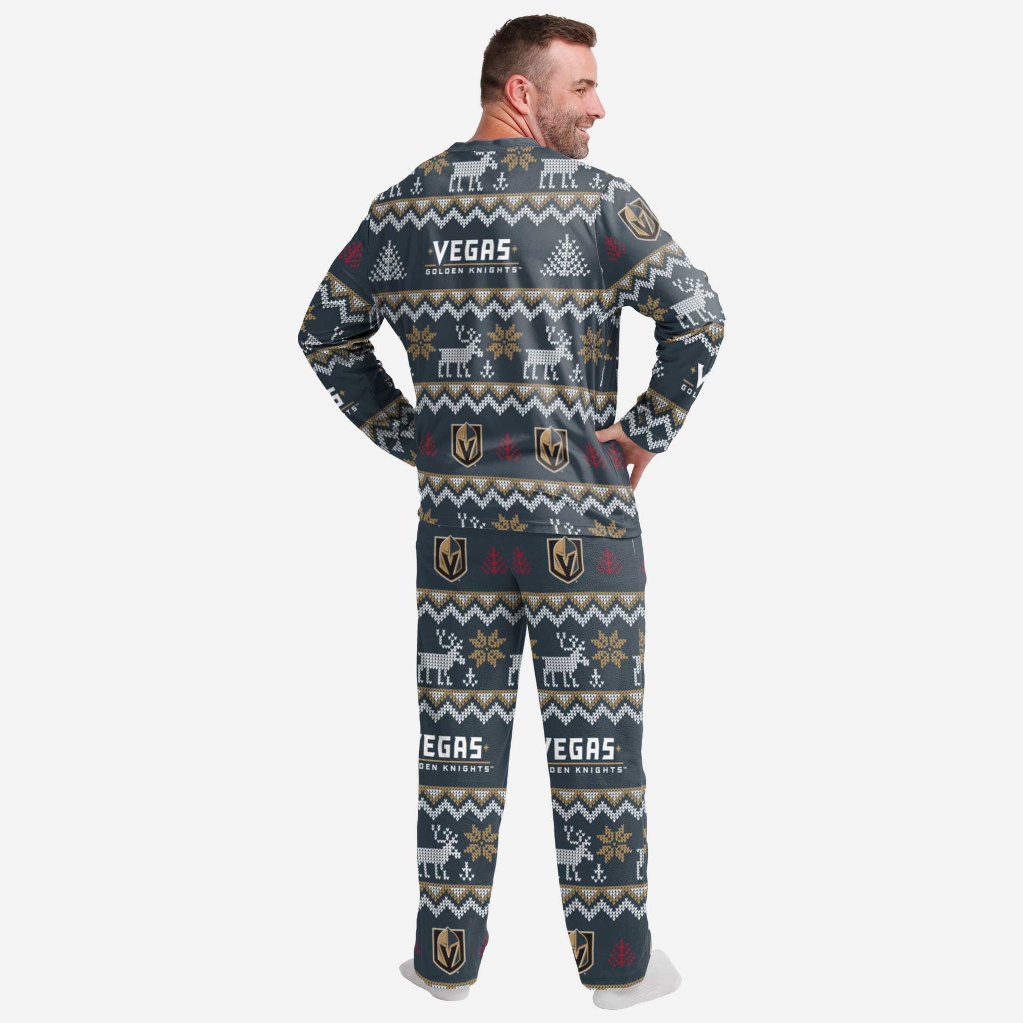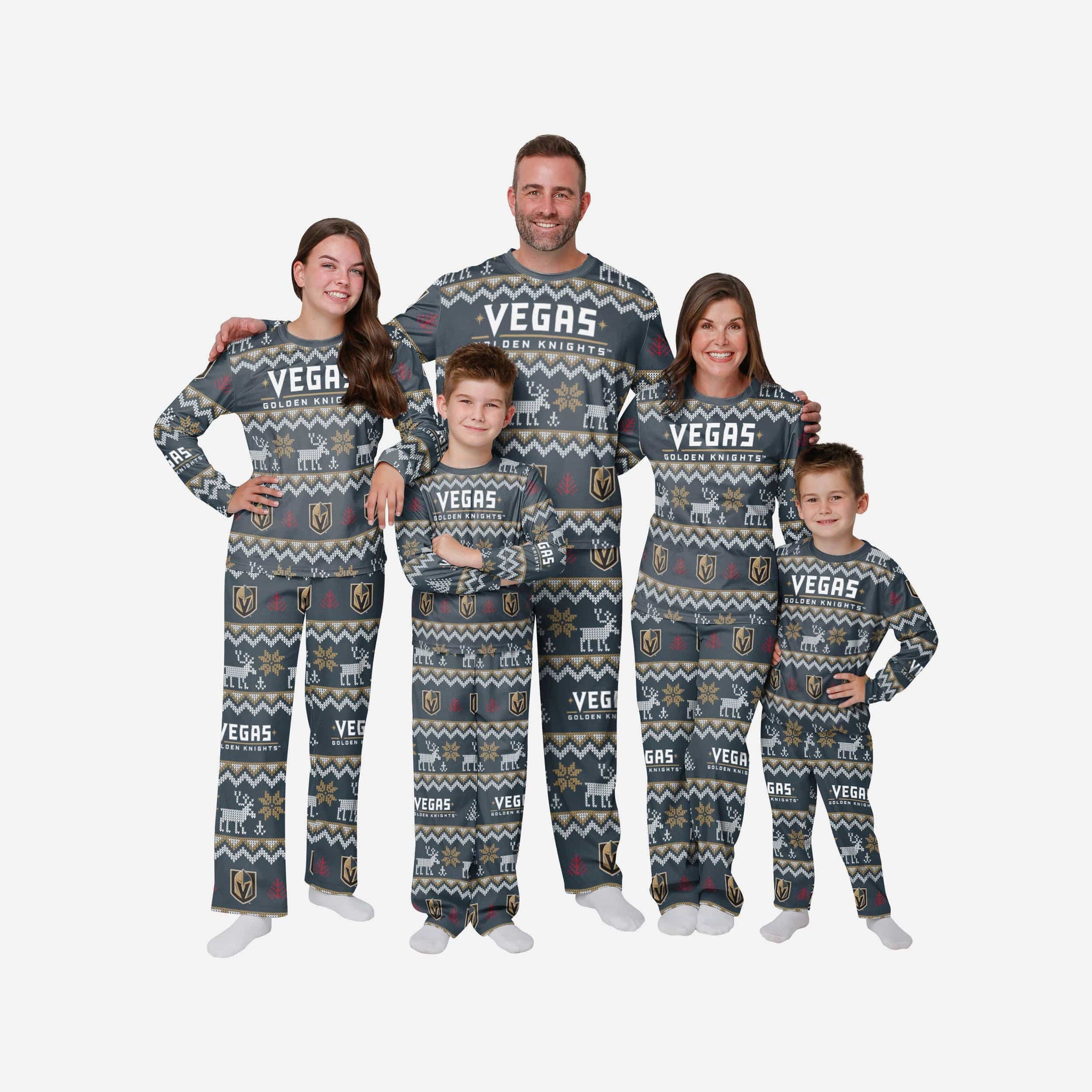 Get some matching family pajamas and dress to impress this holiday season! You won't want to miss these men's team pajamas! These men's PJ's are comfortable and show off your team spirit in the form of some sweet men's jammies. Introducing the Vegas Golden Knights Ugly Pattern Family Holiday Pajamas! Don't forget to take your holiday photo with the whole family wearing matching Christmas pajamas!
