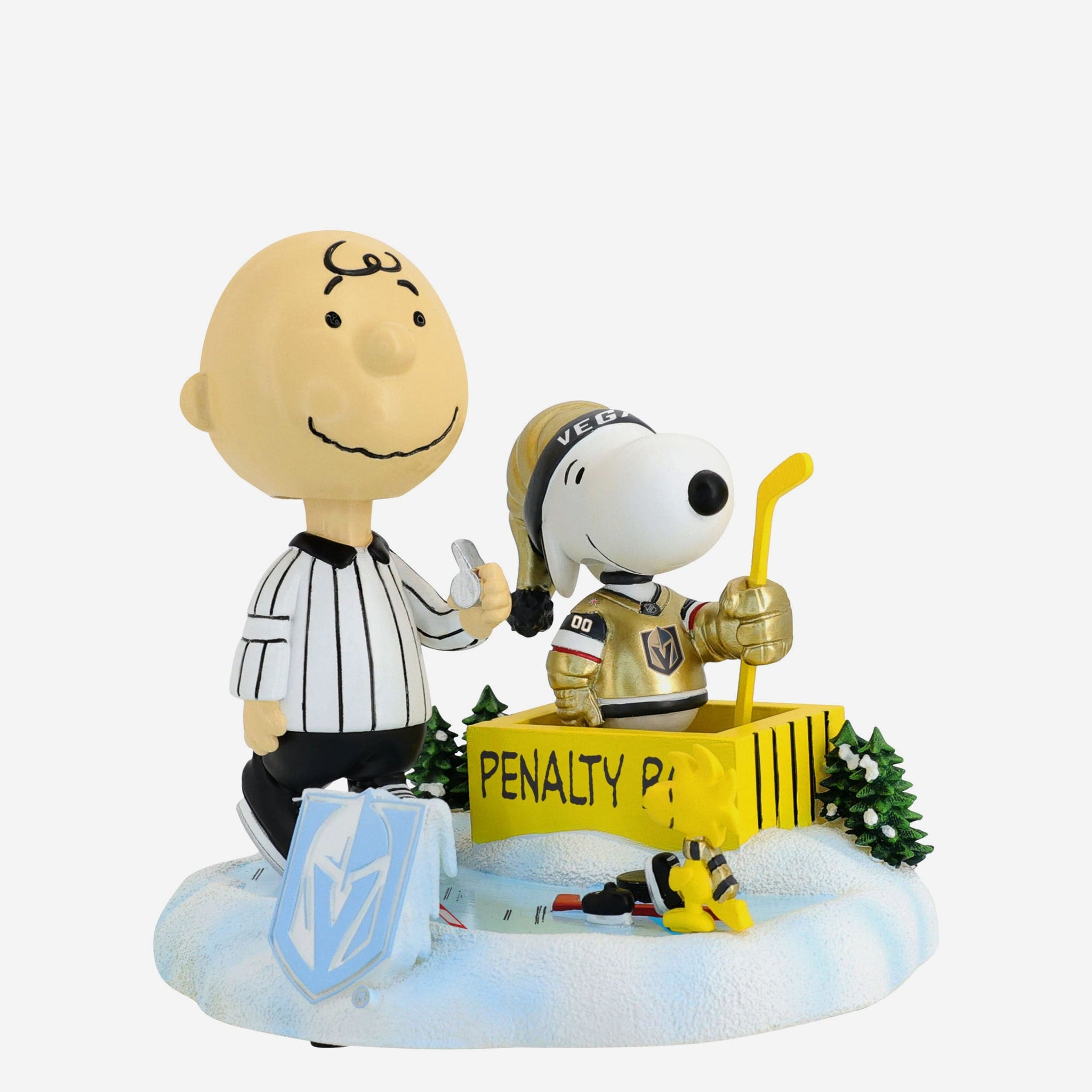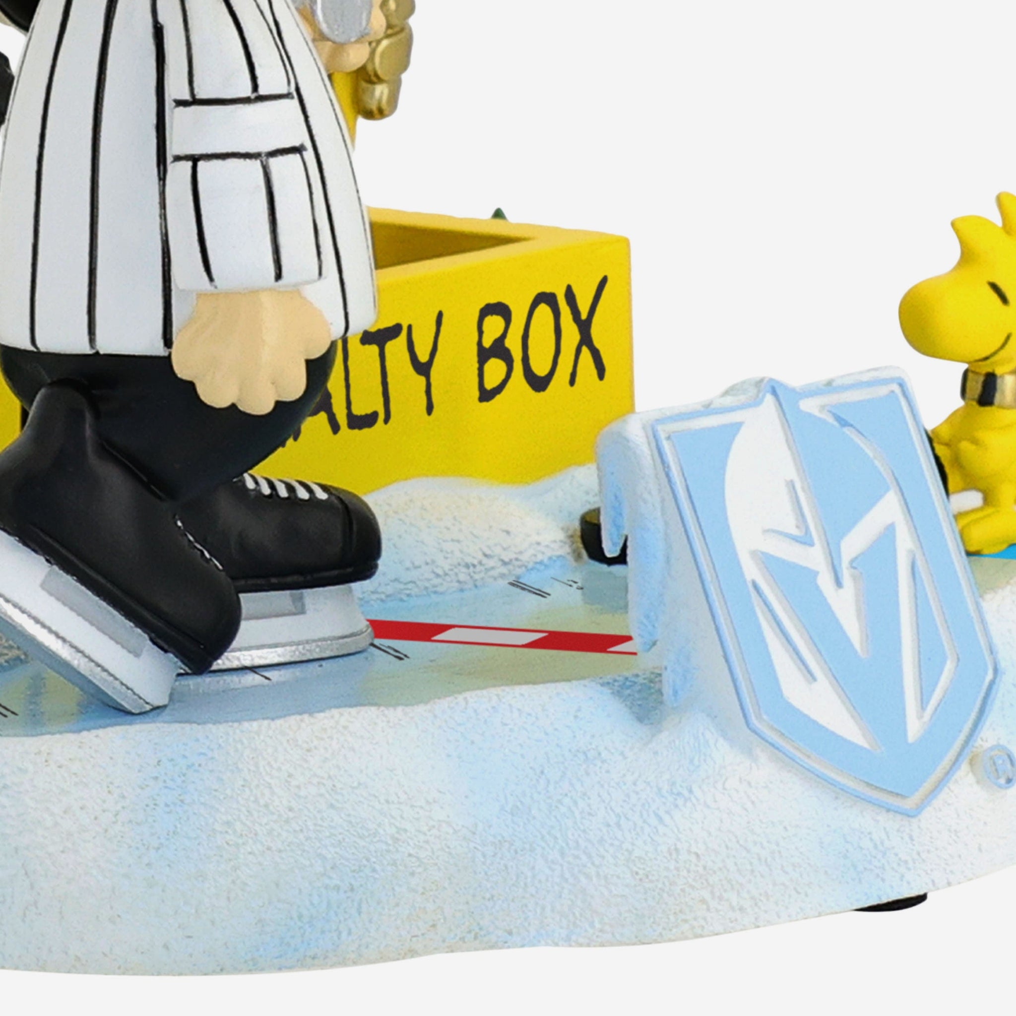 This beagle has two minutes for "ruffing." go fetch a seat in the penalty box with this Vegas Golden Knights Peanuts Penalty Box Mini Bobblehead Scene.