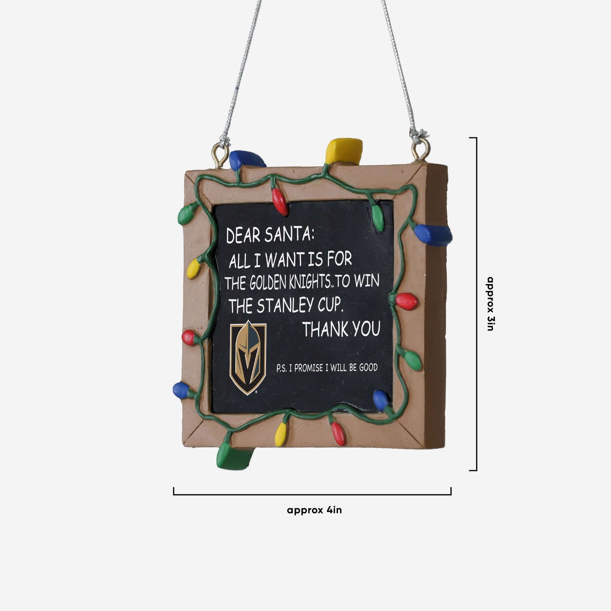 So, you made your list and sent it to jolly ol' Fanta Claus, asking him for a championship. But sometimes letters can get lost in the mail. Just in case, put this Vegas Golden Knights Resin Chalkboard Sign Ornament on your tree to let him know how good you've been this year, and that all you want for the holidays is a trophy.