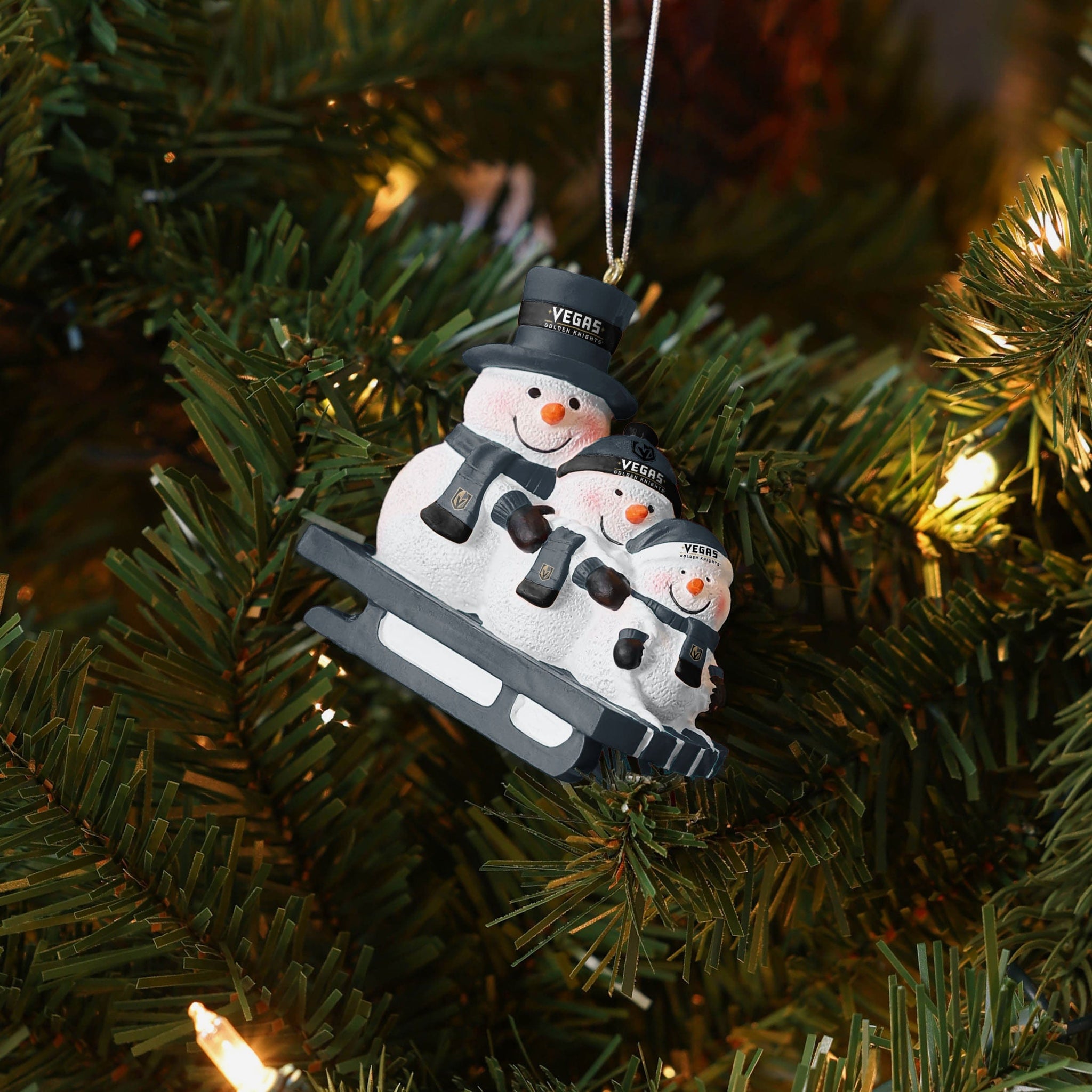 Meet three snowman friends that won't melt when you bring them inside! Introducing the Vegas Golden Knights Sledding Snowmen Ornament!
