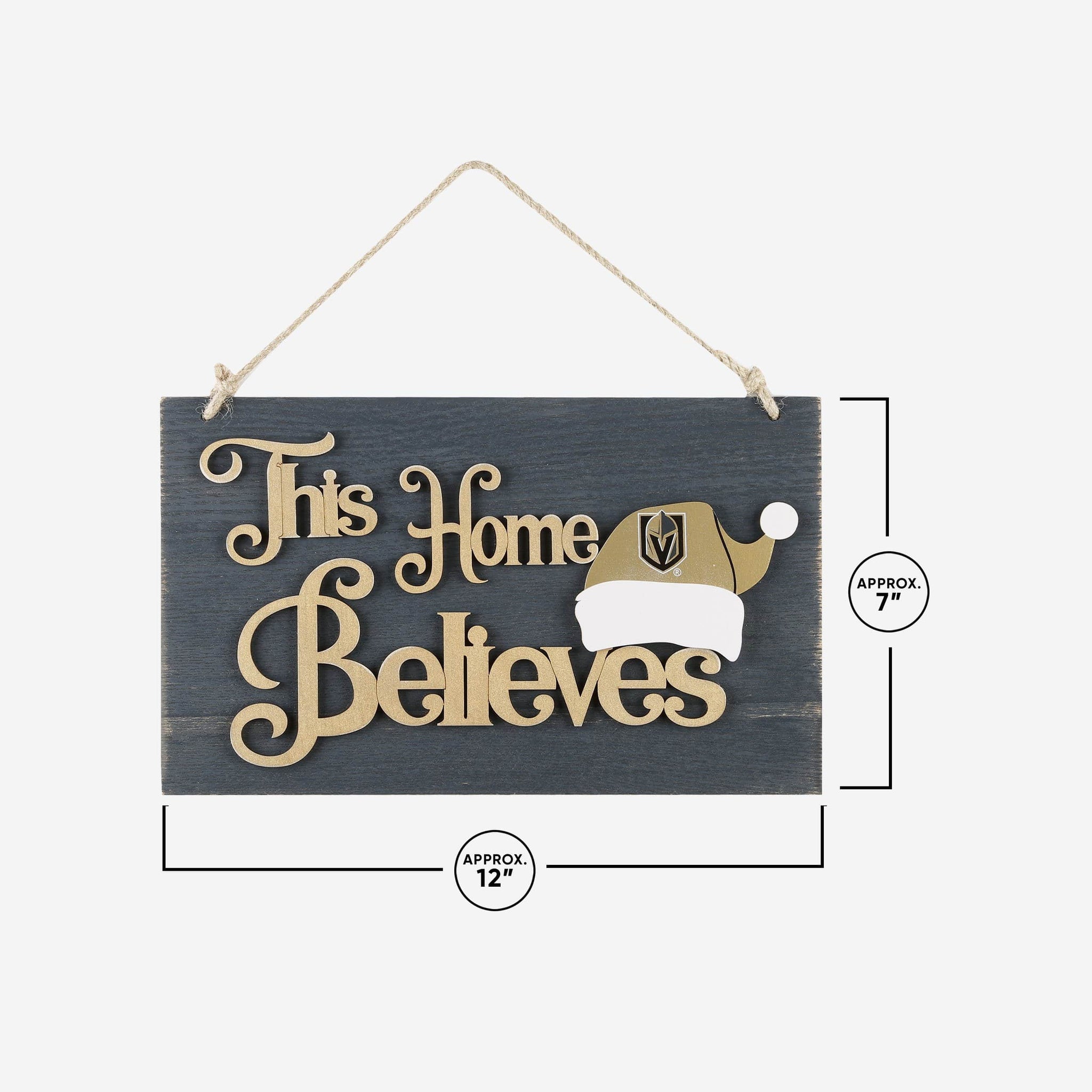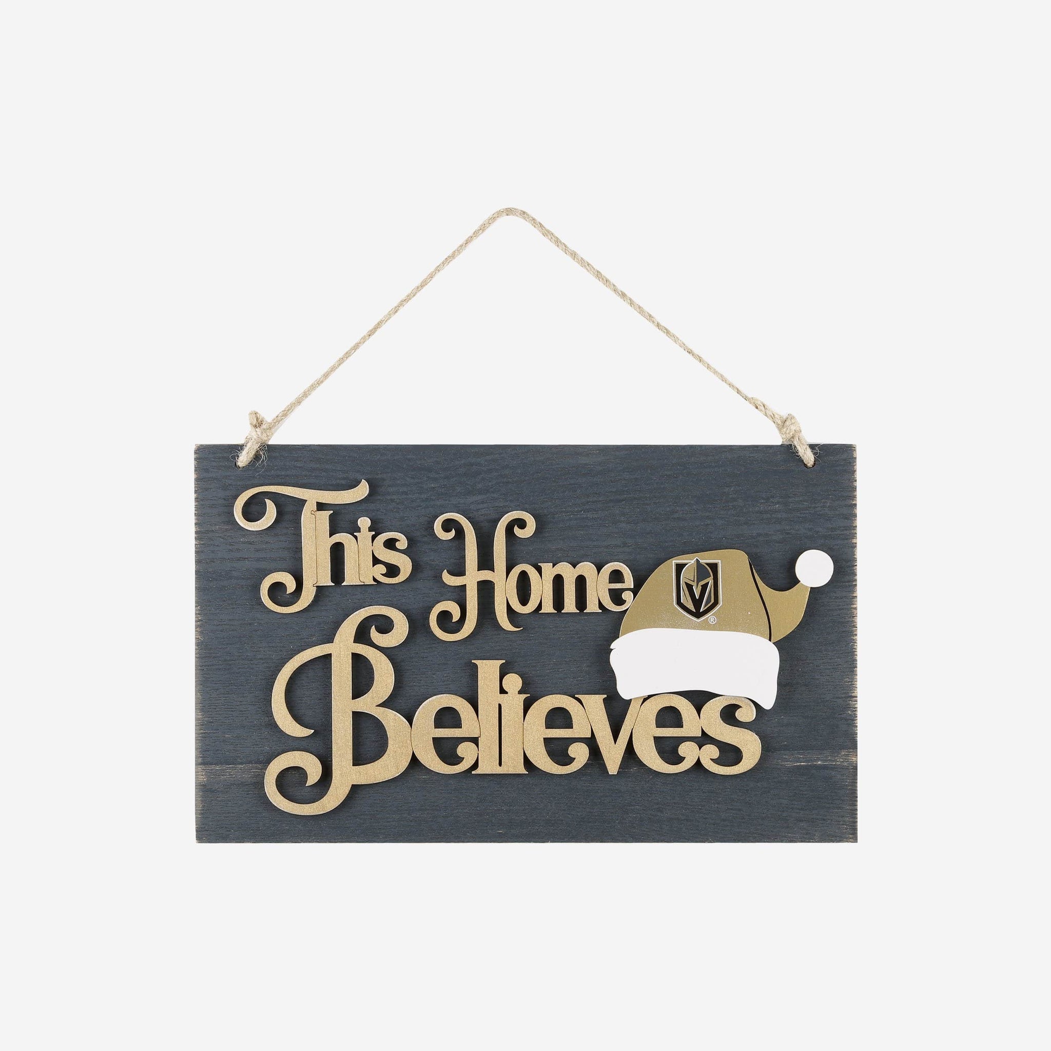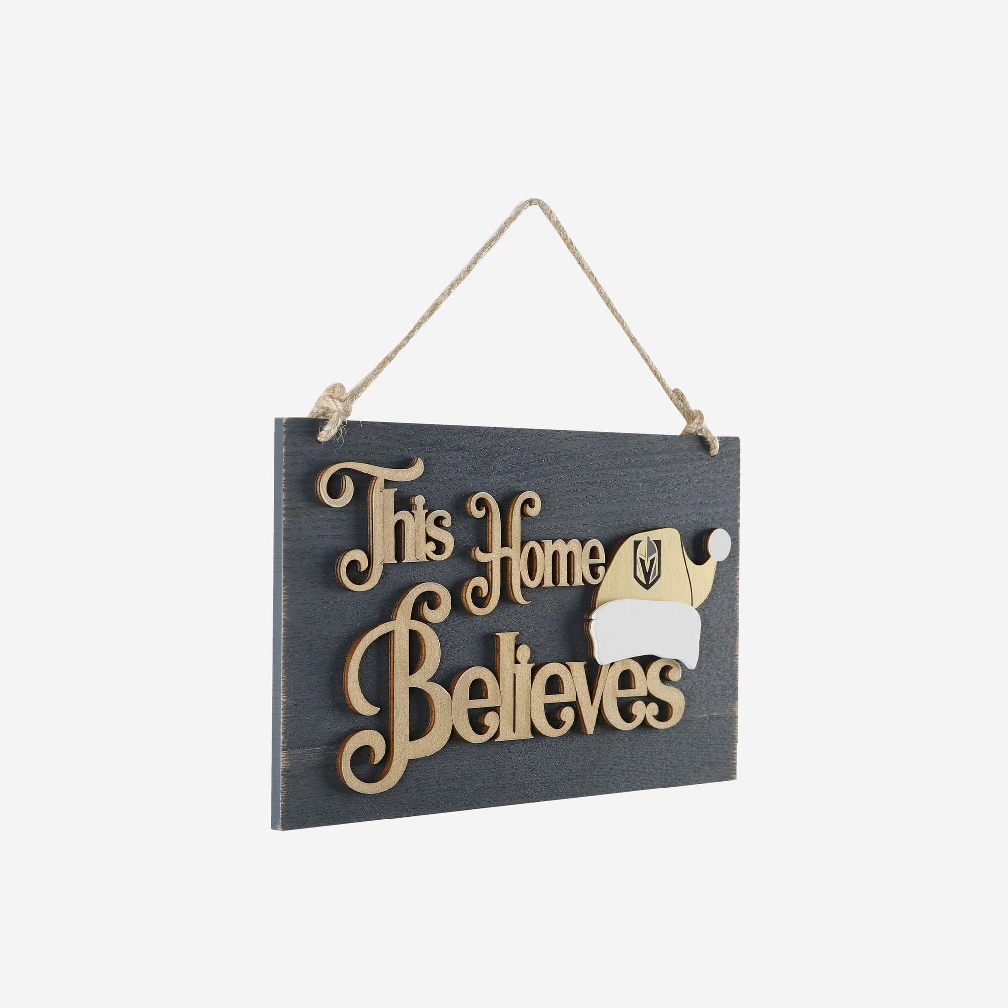 Your fancave is going to feel more like The North Pole with this Vegas Golden Knights This Home Believes Wall Sign on display! Proudly show it off so Fan-ta Claus brings you something nice this year!