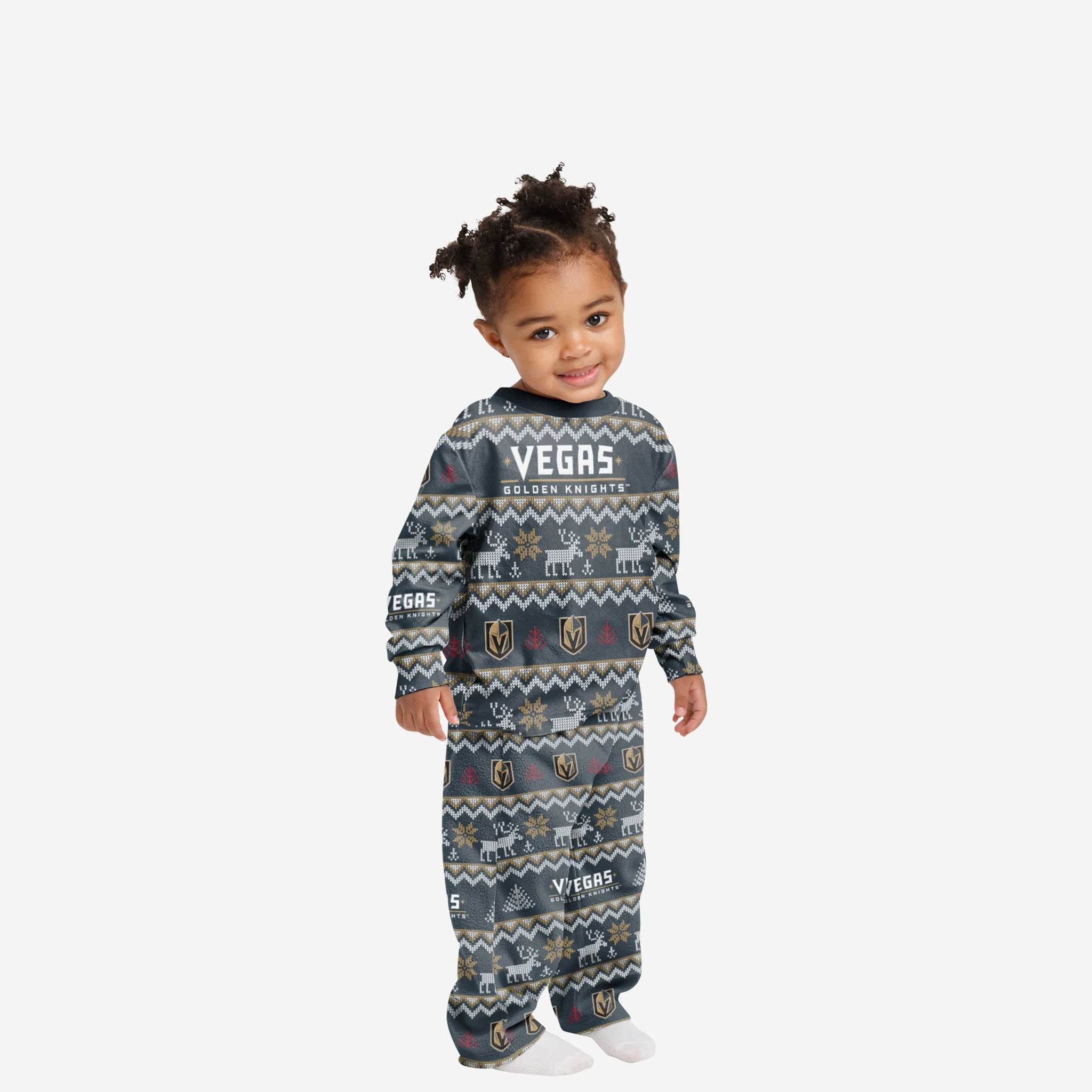 Get some matching family pajamas and dress to impress this holiday season! You won't want to miss these kids' team pajamas! These youth PJ's are comfortable and show off your team spirit in the form of some sweet youth jammies. Introducing the Vegas Golden Knights Toddler Ugly Pattern Family Holiday Pajamas! Don't forget to take your holiday photo with the whole family wearing matching Christmas pajamas!