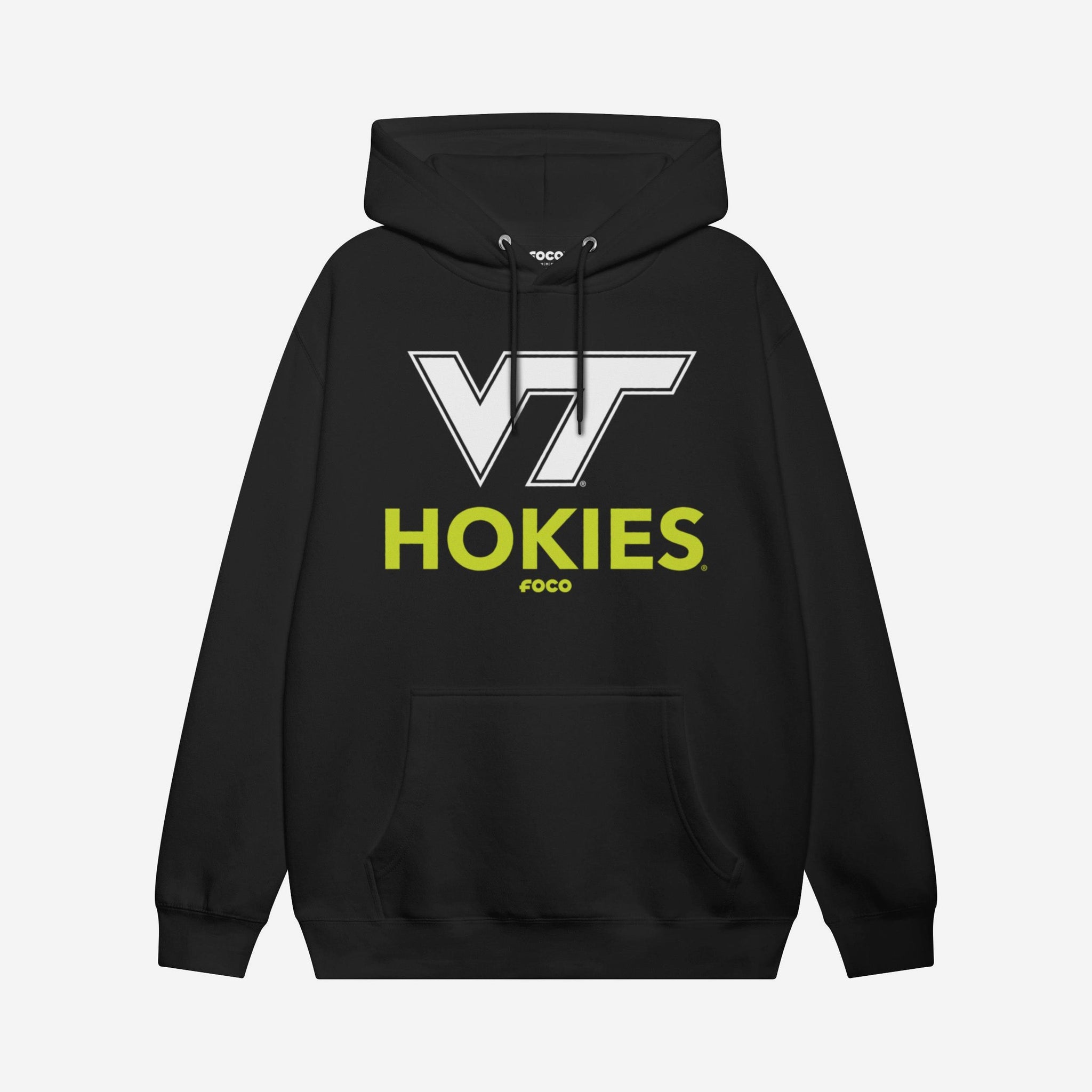 - Team logo display with highlight outline: The front of this apparel features a black Virginia Tech Hokies team logo display outlined in neon, and a neon team name display
