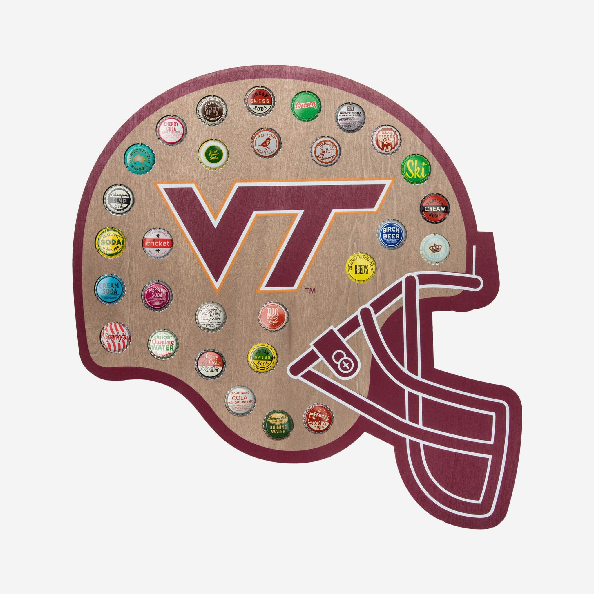 Cap off your fancave decorating and keep track of every cold one you crack while watching the game with this Virginia Tech Hokies Push Bottle Cap Wall Sign.