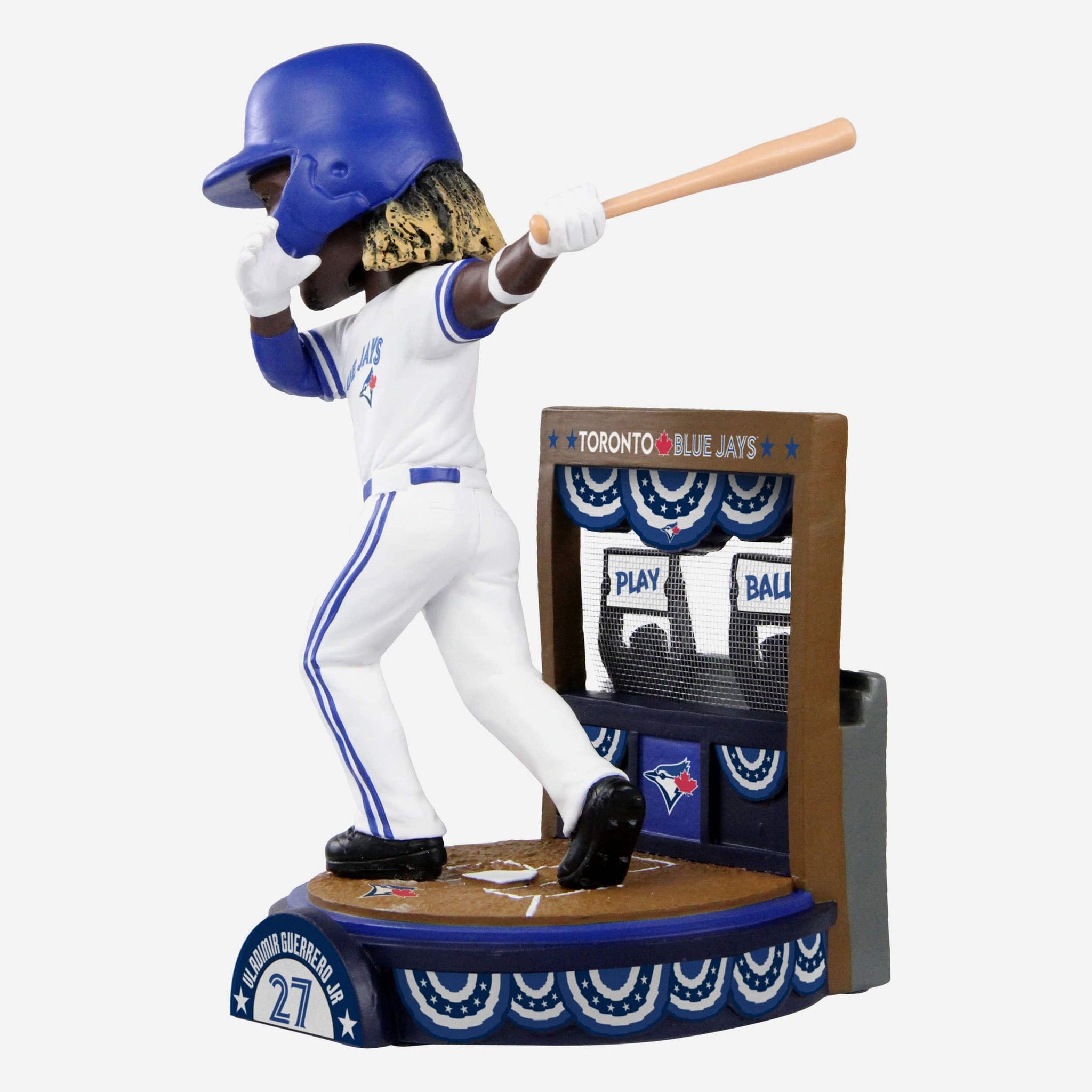 Get your lucky cap on, grab your hot dog and popcorn, and fill out your scorecard. It's time to PLAY BALL! This Vladimir Guerrero Jr. Toronto Blue Jays Play Ball Bobblehead is here to bring some superstar status to your collection for all nine innings and beyond.