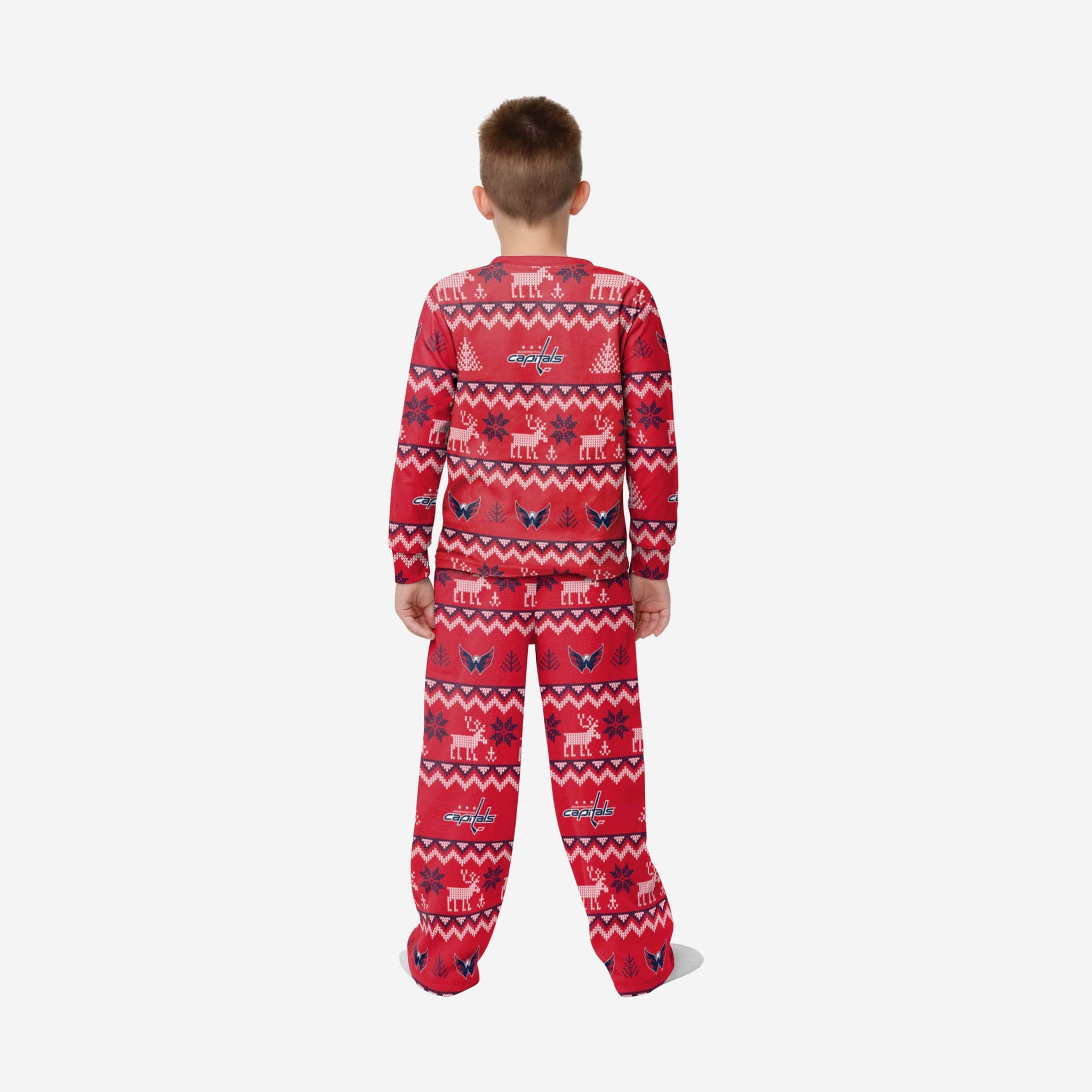 Get some matching family pajamas and dress to impress this holiday season! You won't want to miss these kids' team pajamas! These youth PJ's are comfortable and show off your team spirit in the form of some sweet youth jammies. Introducing the Washington Capitals Youth Ugly Pattern Family Holiday Pajamas! Don't forget to take your holiday photo with the whole family wearing matching Christmas pajamas!