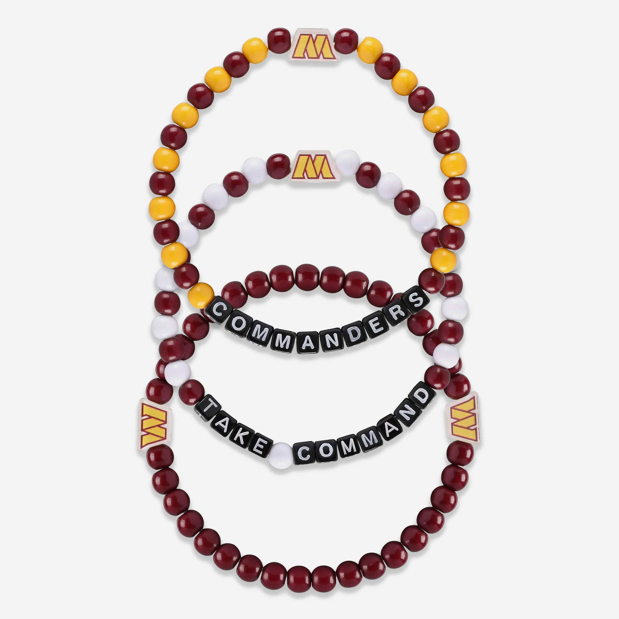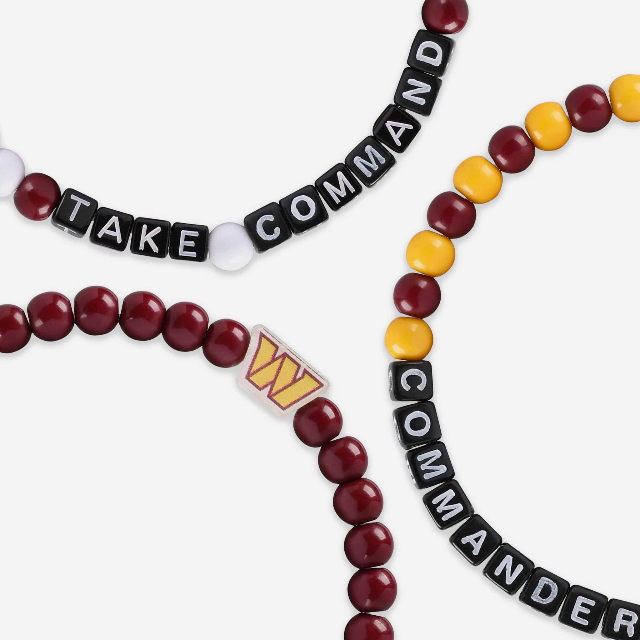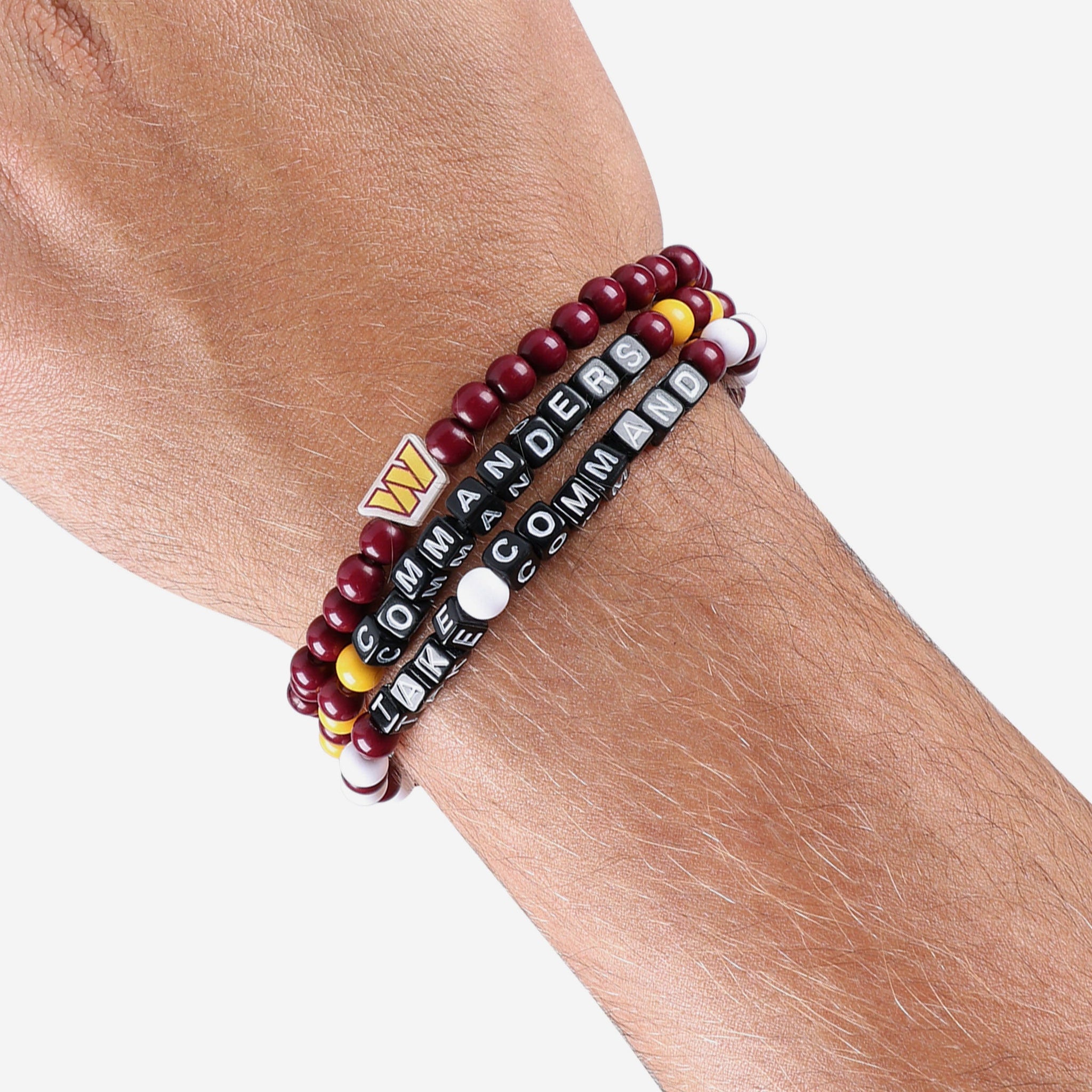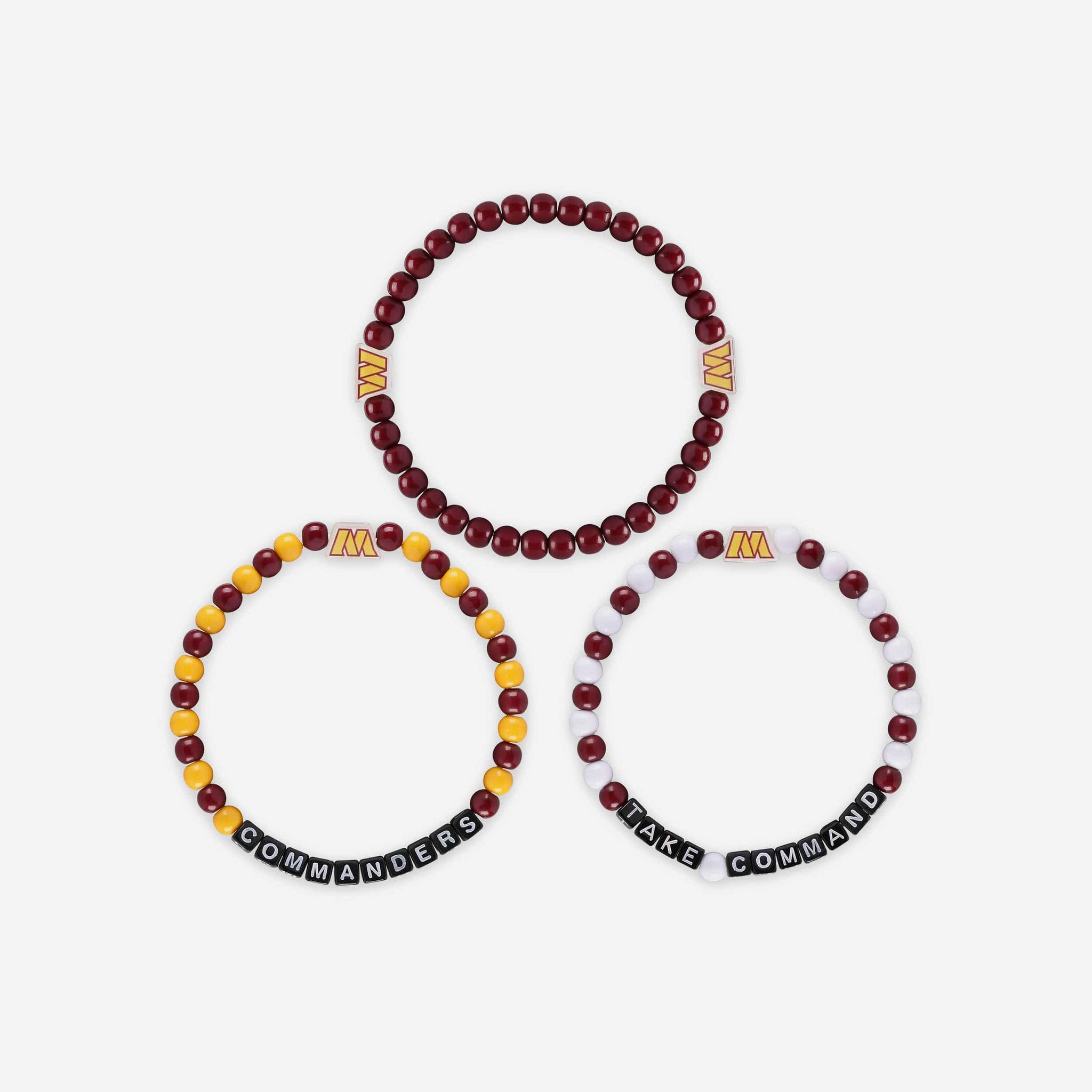 A whole new way to rep the team in style is here. Step up your fan fashion sense with this Washington Commanders 3 Pack Beaded Friendship Bracelet. These matching friendship bracelets have an all-over team-colored design and team logo displays, which makes them the perfect way to show your support for the Washington Commanders on gamedays and every day in between.