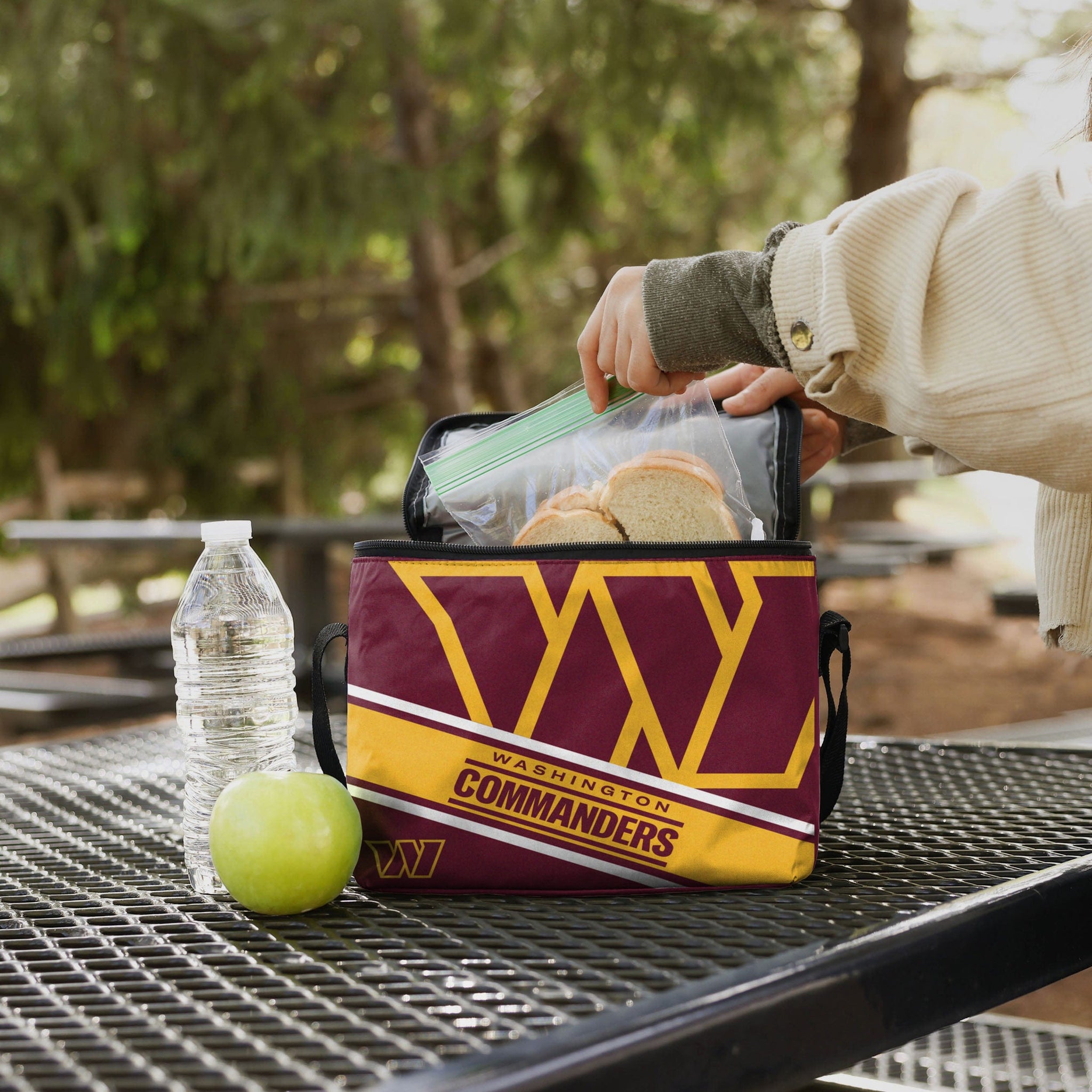 There are two things you never show up to a tailgate without: your team spirit, and the drinks. This Washington Commanders Big Logo Stripe 6 Pack Cooler has you covered for both. Big enough to store a 6-pack of awesomeness.