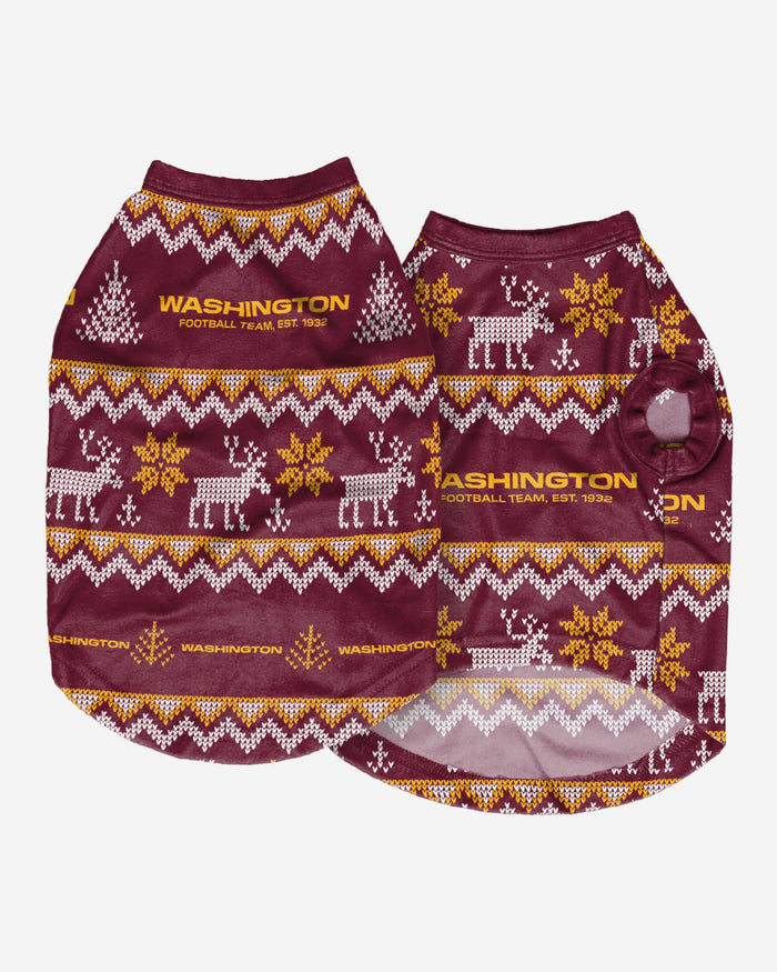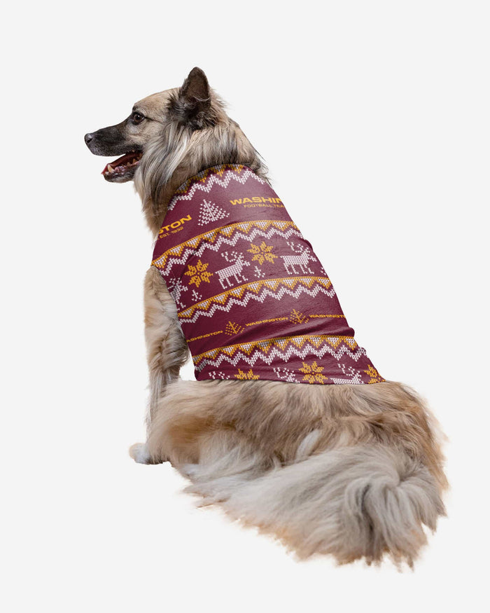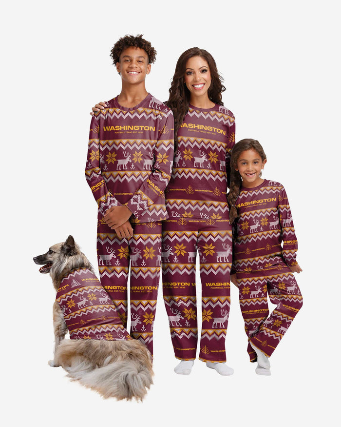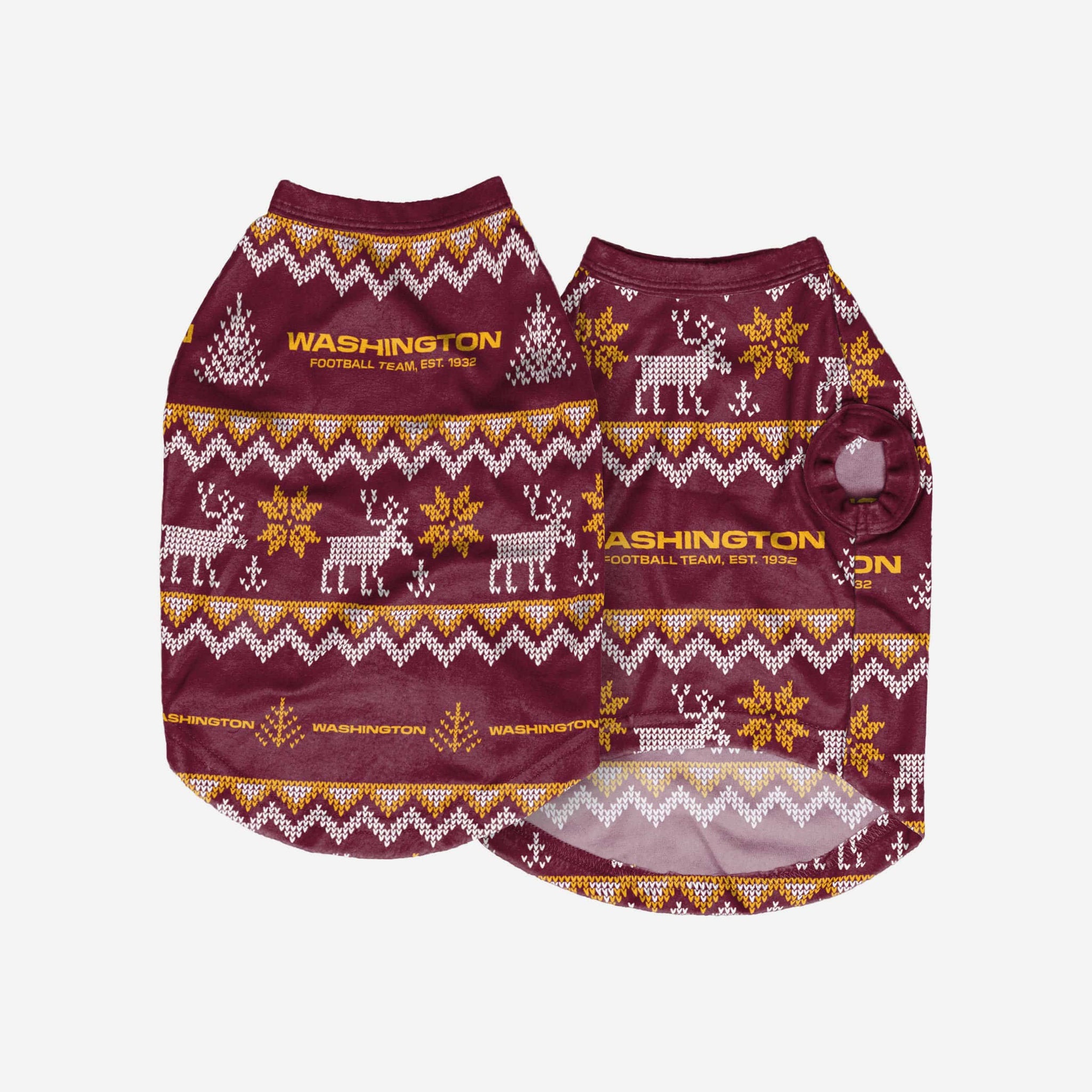 Show off your pet's holiday spirit with this dog sweater! Your good boy (or girl) will love this Washington Commanders Dog Family Holiday Ugly Sweater so much, they'll be saying WOOF BARK AWOOO (that's THANK YOU in pup language). Don't forget to match your canine's sweater with a set of matching holiday pajamas!