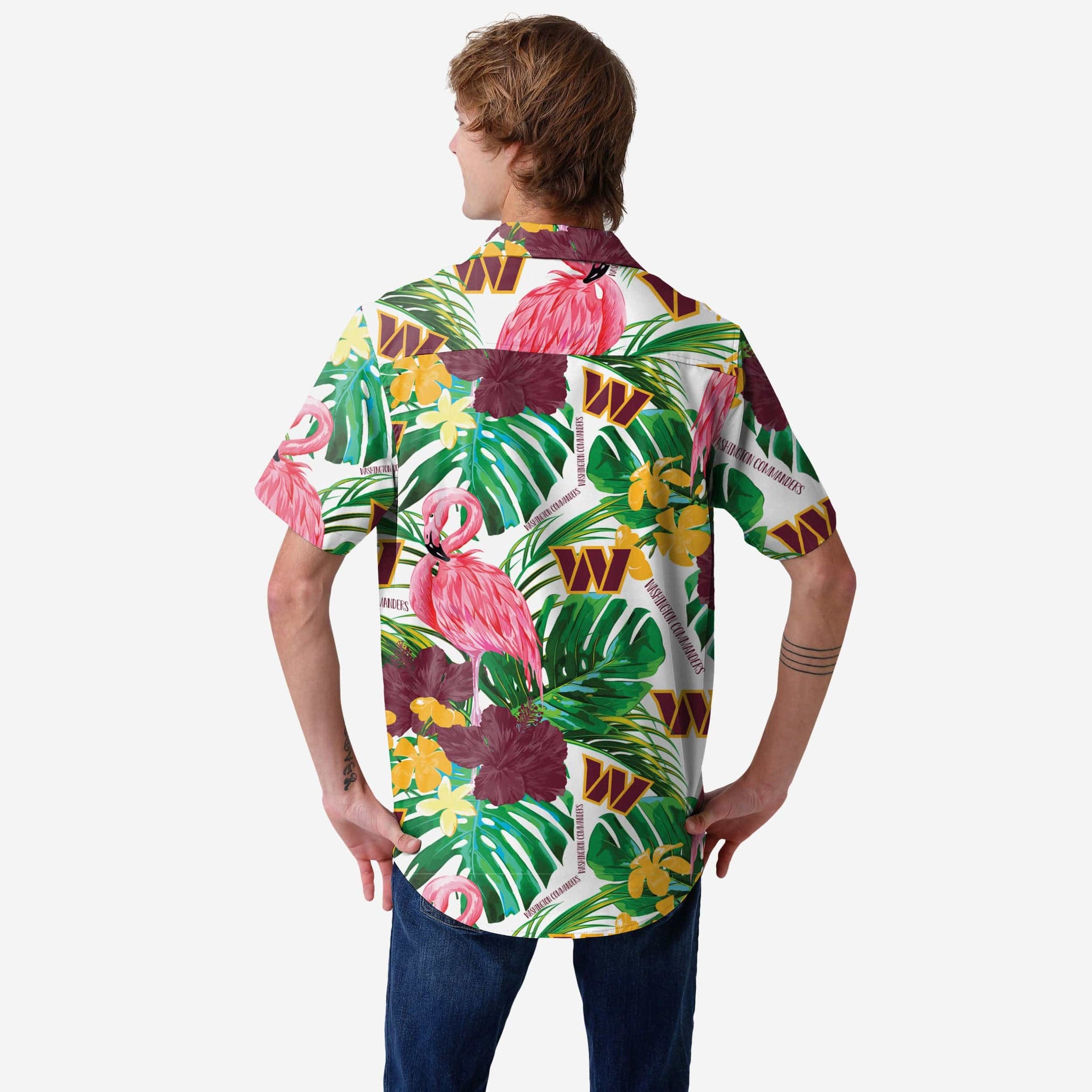 Aloha, party people! No need to set your watch - You're always on island time when you're rocking this Washington Commanders Flamingo Button Up Shirt.